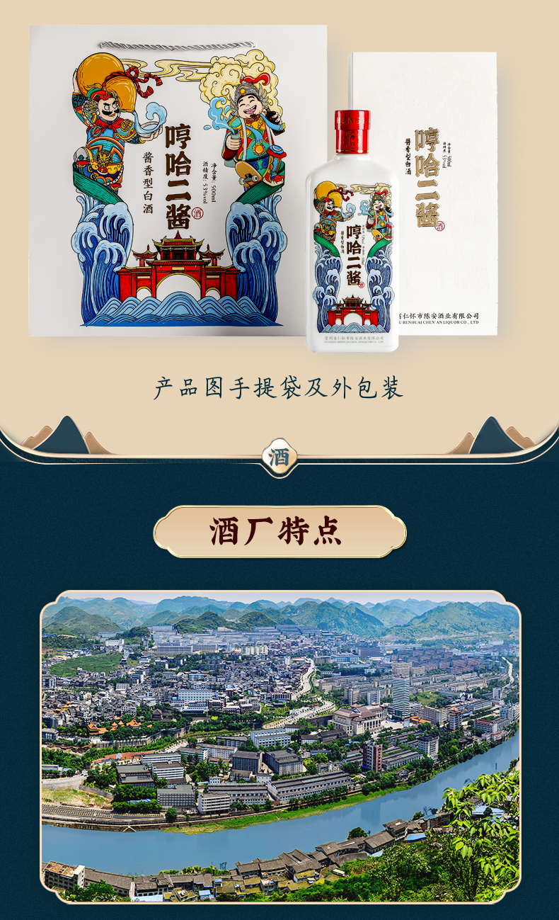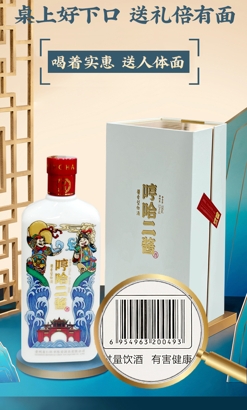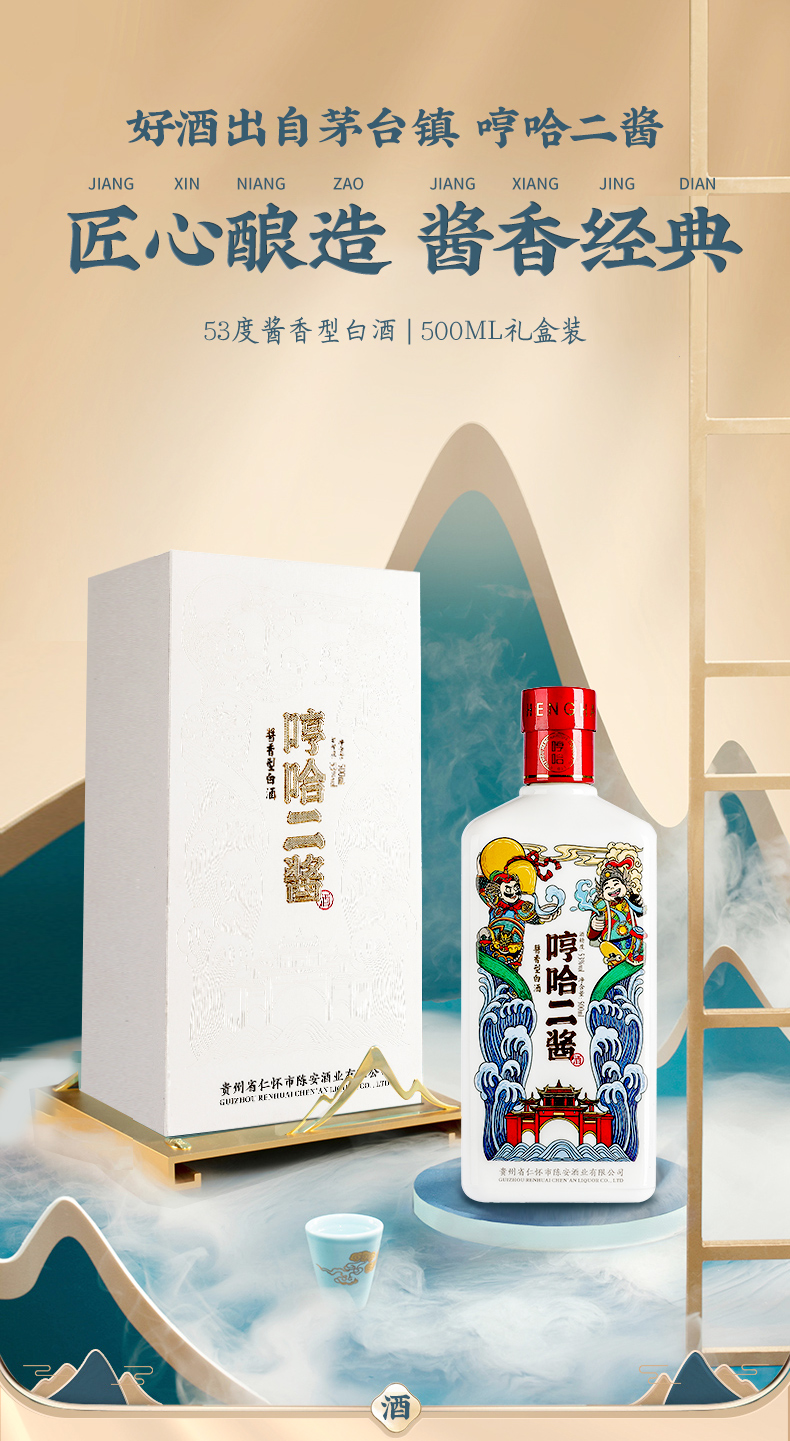 商品:哼哈二酱酱香型白酒53度500ml礼盒装