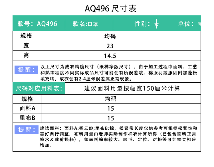 裁缝学苑AQ496香云纱口罩纸样女装新款百搭桑蚕丝面罩样板图纸