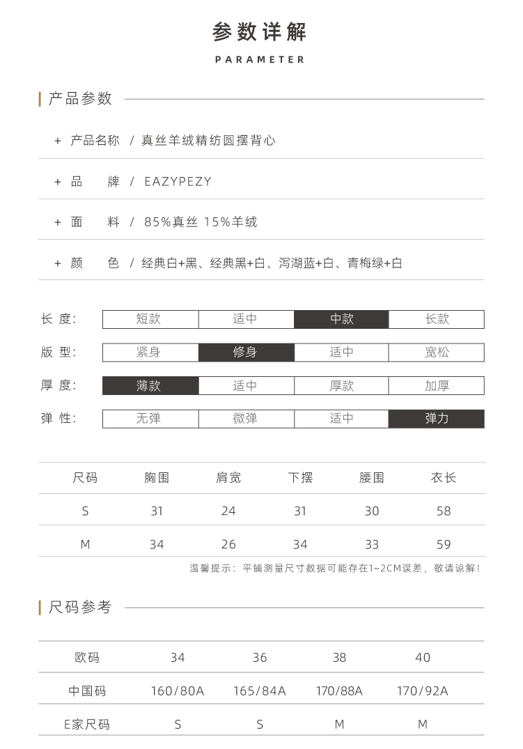 EAZYPEZY 真丝羊绒精纺圆摆背心