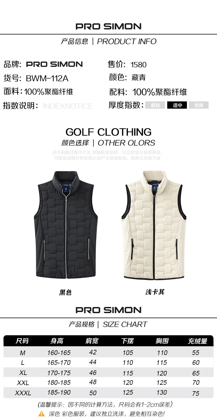 BMW-112A 【保暖】 PROSIMON高尔夫秋冬男款无袖运动休闲羽绒马甲