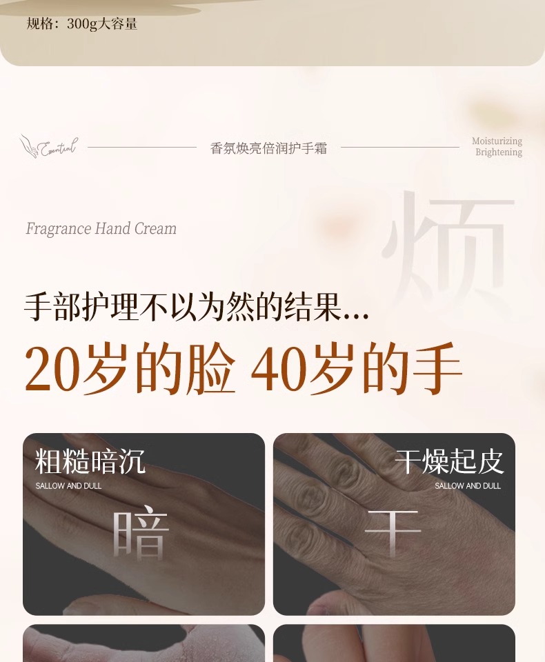 【双手水润嫩白】香氛焕亮倍润护手霜300g#护手霜长效滋润保湿补水防干裂嫩白秋冬便携式女男正品官方旗舰店