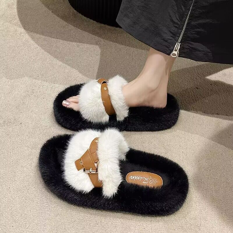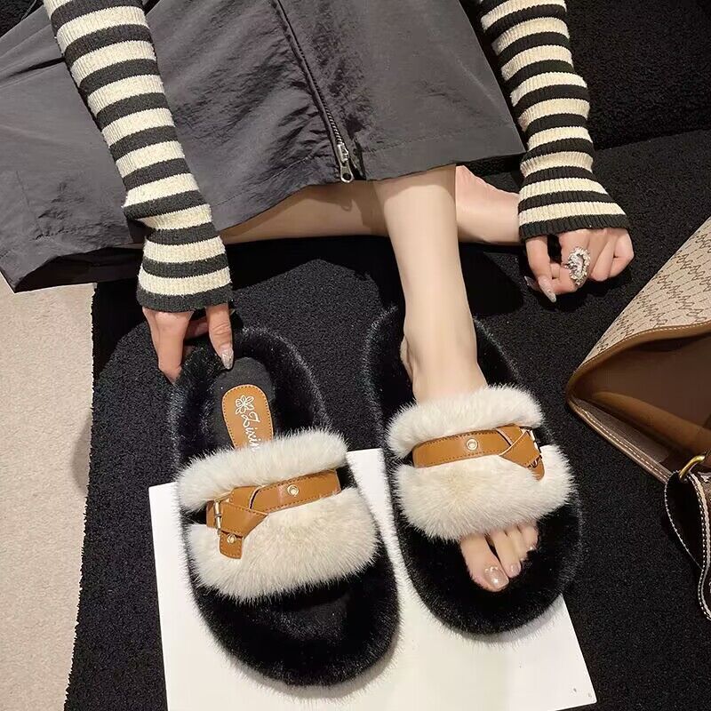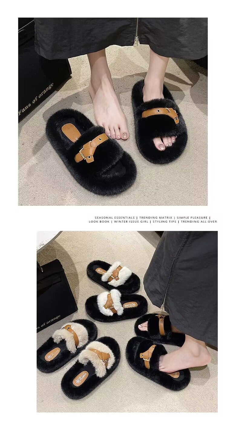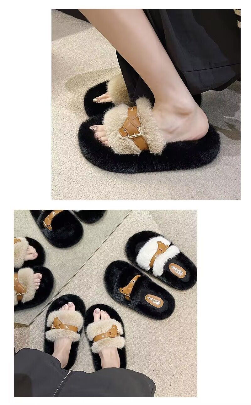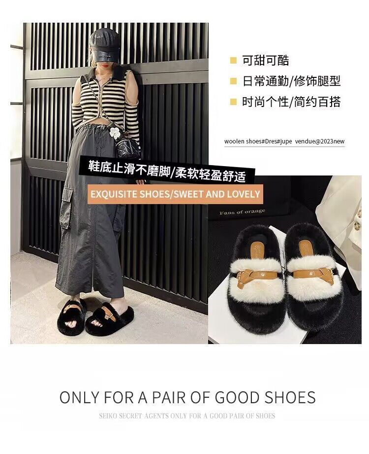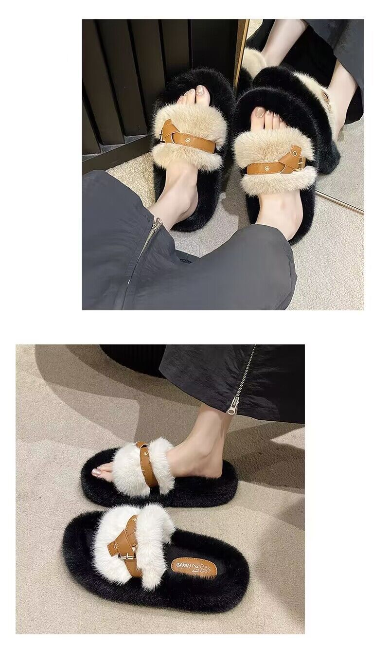 【ins超火❗️仙女风时尚保暖拖鞋】新款网红气质毛毛绒厚底拖鞋女,材质更柔软内里更舒适,2025居家用时尚学生秋冬棉拖鞋外穿L