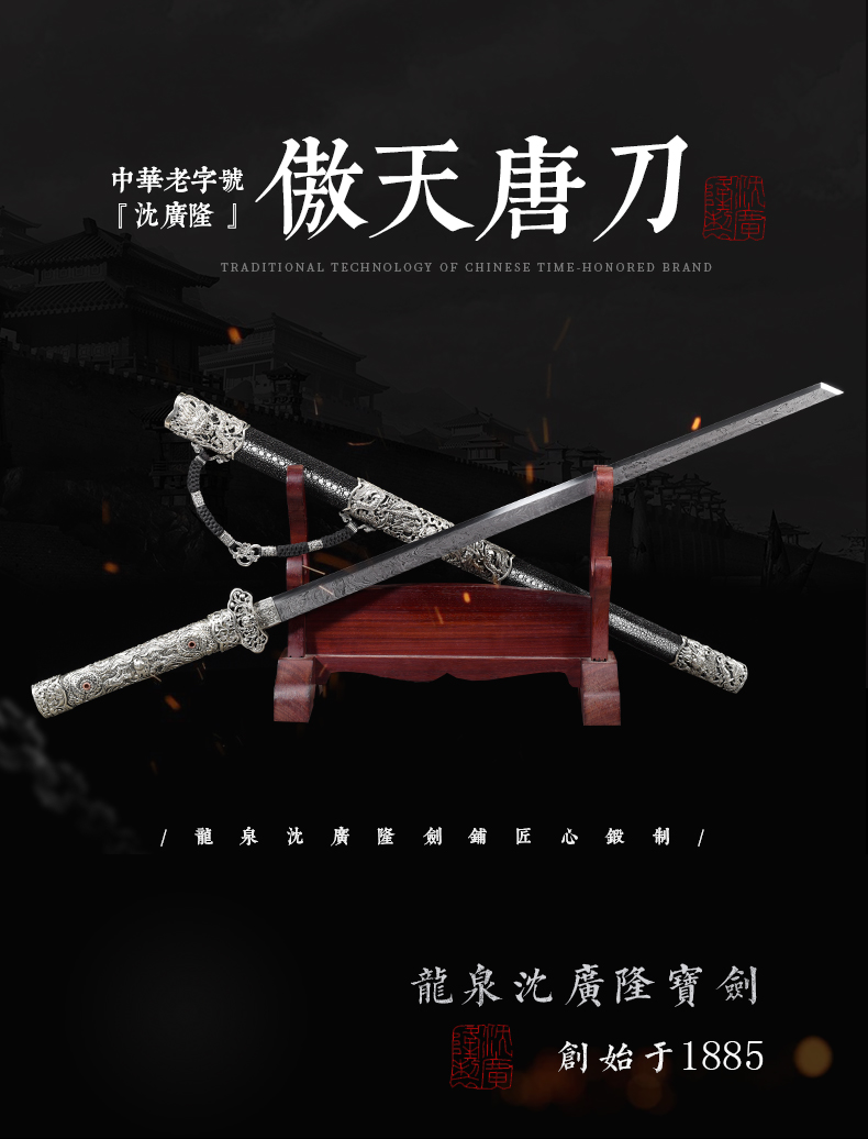 - 龙泉沈广隆剑舖创始于1885年(清光绪)位于浙江省龙泉市,是当地唯一一家“子承父业”一脉相承的中华老字号宝剑生产企业,是国家级非物质文化遗产龙泉宝剑项目保护单位,并以“天下第一剑”闻名于海内外....