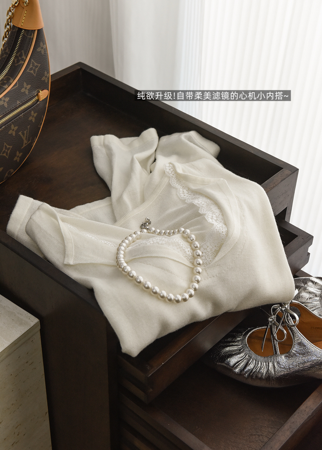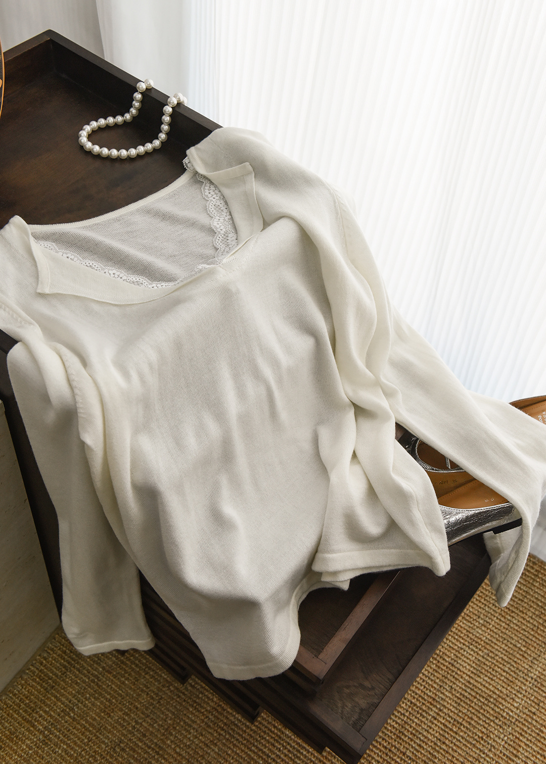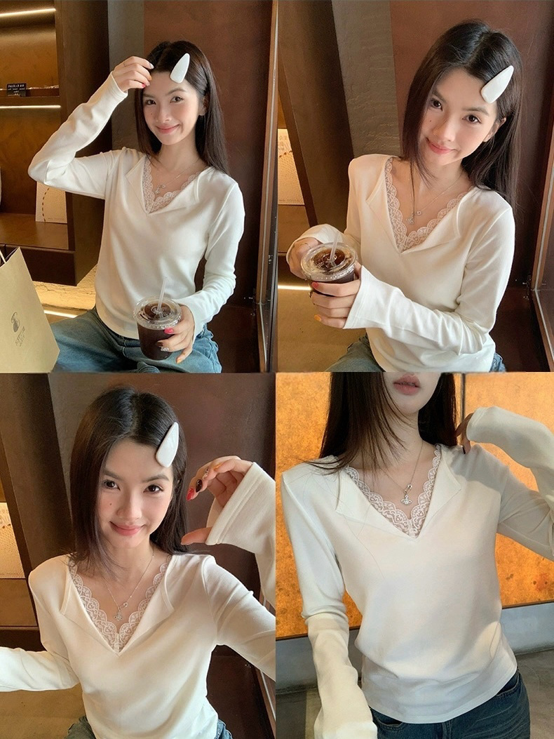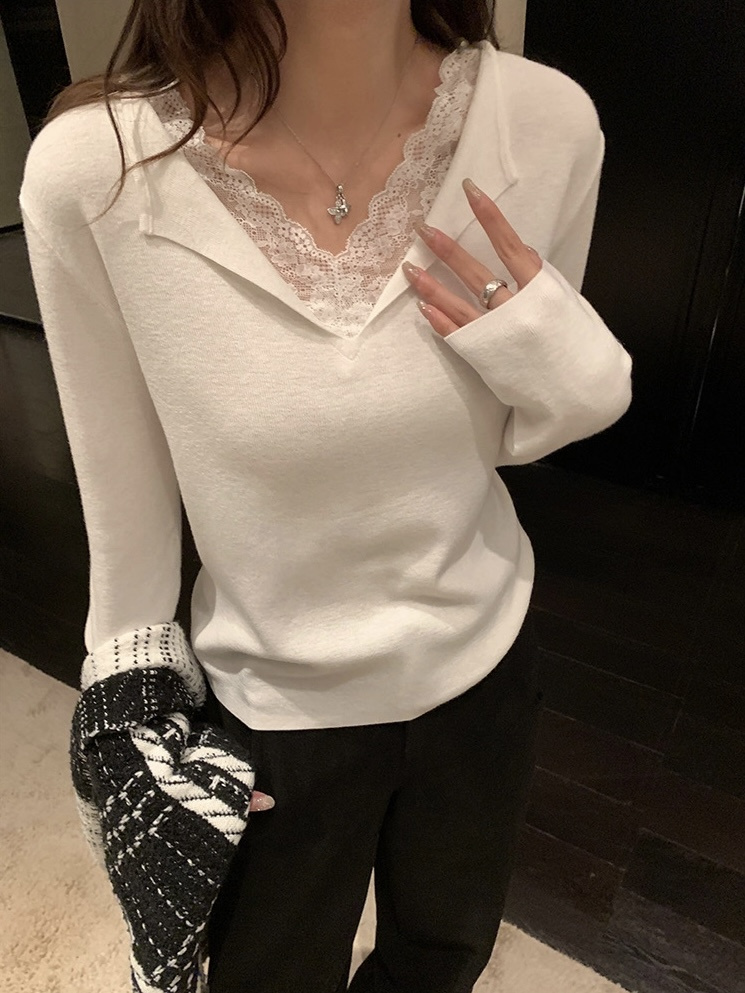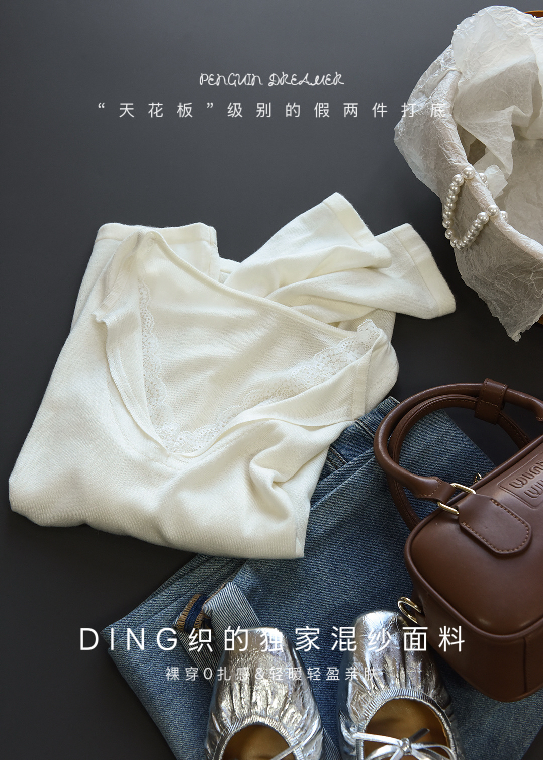 假两件小翻领加上领口露出的蕾丝拿捏纯欲比例,多一分柔美浪漫~超细羊毛混纱线,织面更紧实舒适柔软到不可思议~