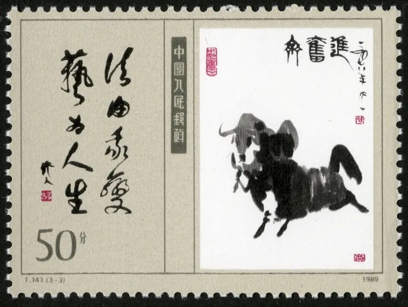[D](1)叶浅予、(2)李可染、(3)吴作人。北京邮票厂。