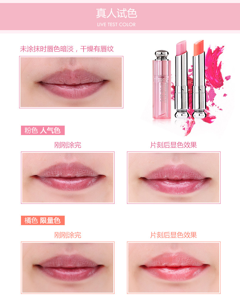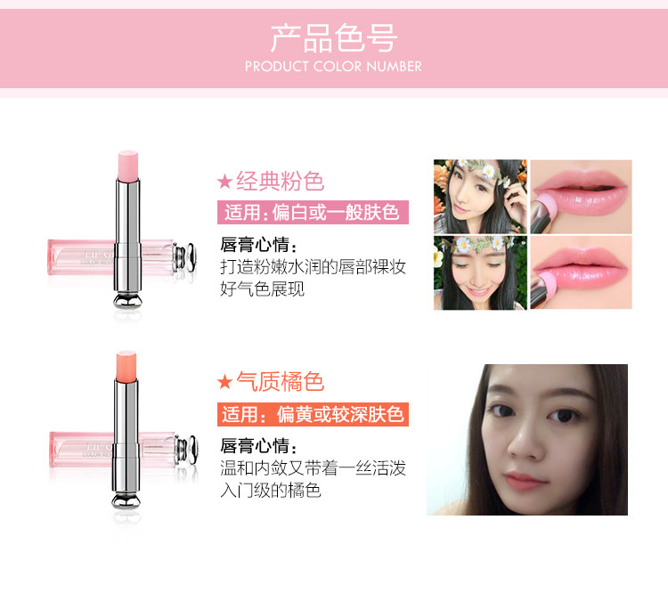 这款被人们叫做“迪奥变色唇膏 ”的产品,其实并不是平时使用的彩妆唇膏,而是迪奥家第一款护唇膏:一款粉色的润唇膏——Dior魅惑润唇膏。这款润唇膏有适度修饰功能,涂上双唇后,会因使用者唇部的温度和水分等变化而发生色泽调整,因而被称作迪奥变色唇膏。