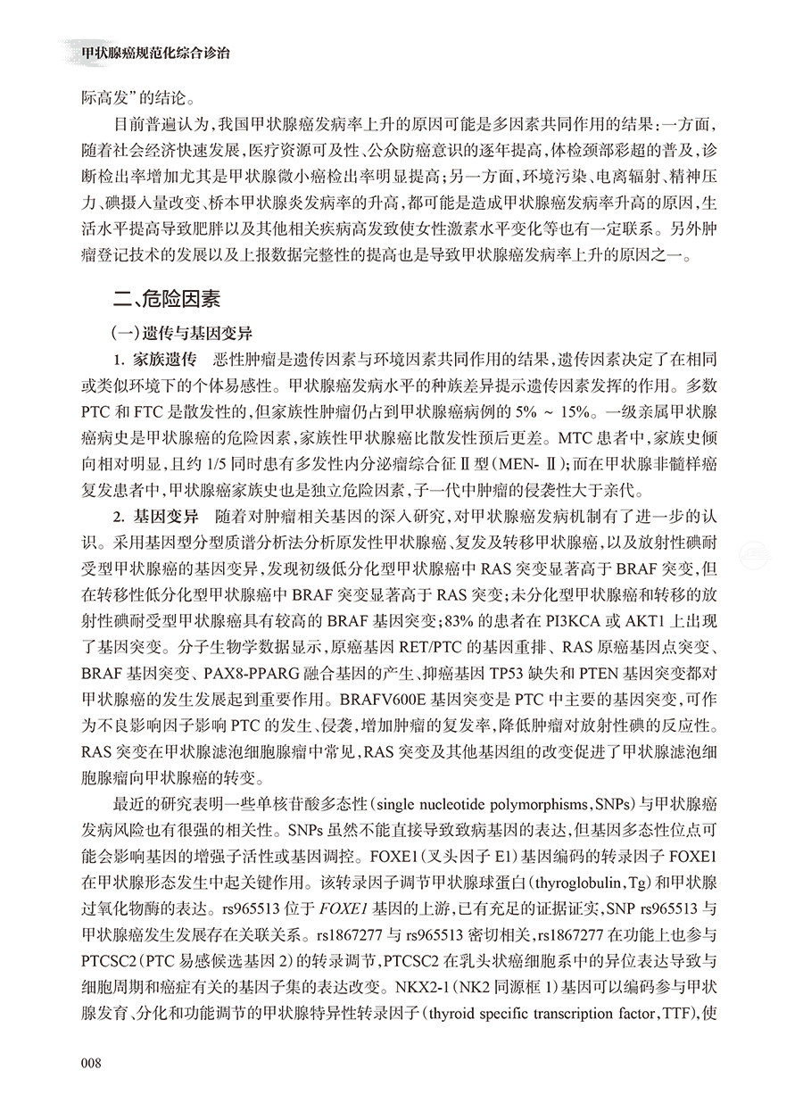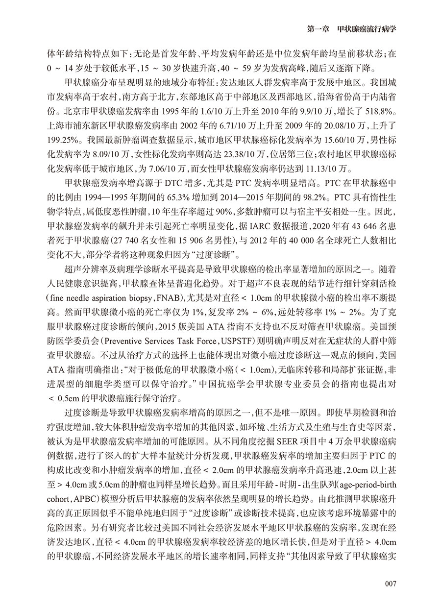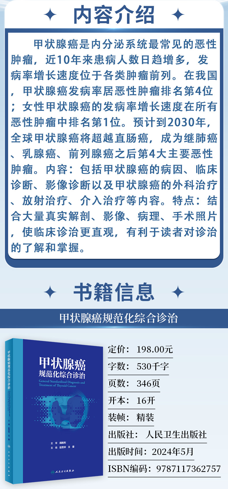 甲状腺癌是内分泌系统最常见的恶性肿瘤,近10年来患病人数日趋增多,发病率增长速度位于各类肿瘤前列。在我国,甲状腺癌发病率居恶性肿瘤排名第4位;女性甲状腺癌的发病率增长速度在所有恶性肿瘤中排名第1位。预计到2030年,全球甲状腺癌将超越直肠癌,成为继肺癌、乳腺癌、前列腺癌之后第4大主要恶性肿瘤。内容:包括甲状腺癌的病因、临床诊断、影像诊断以及甲状腺癌的外科治疗、放射治疗、介入治疗等内容。特点:结合大量真实解剖、影像、病理、手术照片,使临床诊治更直观,有利于读者对诊治的了解和掌握。