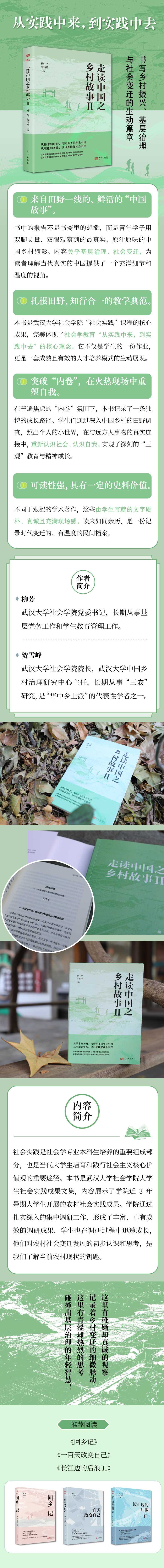 1.扎根田野,知行合一的教学典范。 本书是武汉大学社会学院;社会实践课程的核心成果,完美体现了社会学教育;从实践中来,到实践中去的核心理念。它不仅是学生的一份作业,更是一套成熟且有效的人才培养模式的生动展现。 2.突破;内卷,在火热现场中重塑自我。 在普遍焦虑的;内卷氛围下,本书记录了一条独特的成长路径。学生们通过深入中国乡村的田野调查,跳出个人的小世界,在与远方人事物的真实连接中,重新认识社会、认识自我,实现了深刻的;三观教育与精神成长。 3.;手把手指导下的学术启蒙。 书中的每一篇报告都凝聚着师生共同的心血。学院独特的;师生双向互选与;手把手指导模式,确保了调研的深度与专业性。教师的身体力行,带领学生将课本理论转化为观察社会的真实能力,实现了学术传承的;授人以渔。 4.记录时代变迁的鲜活地方志。 |