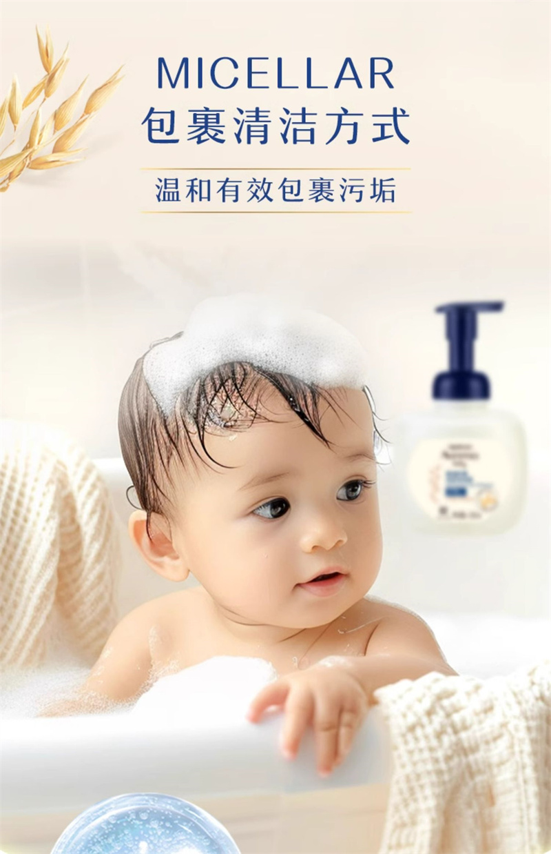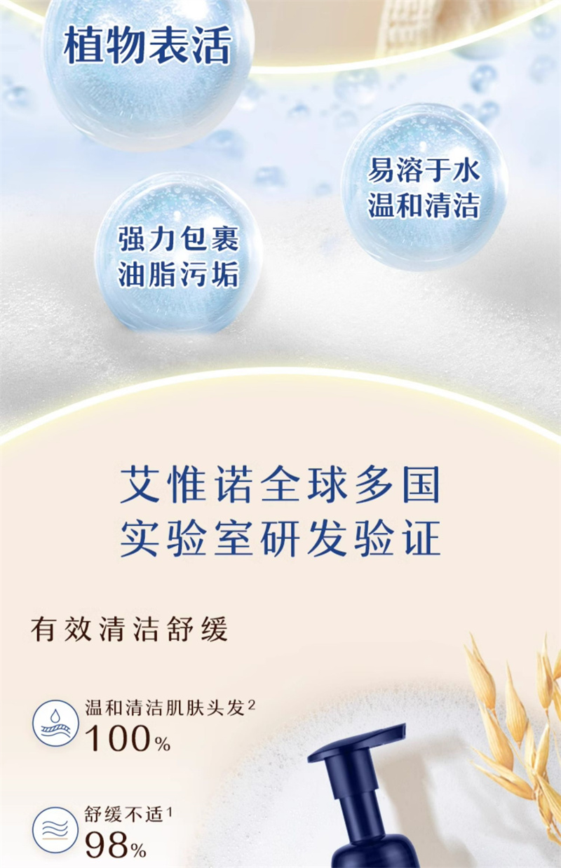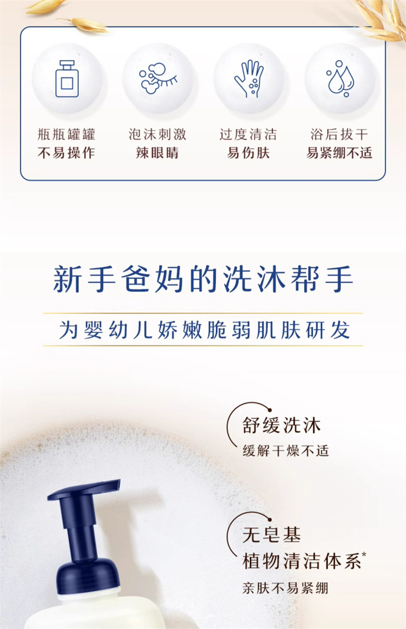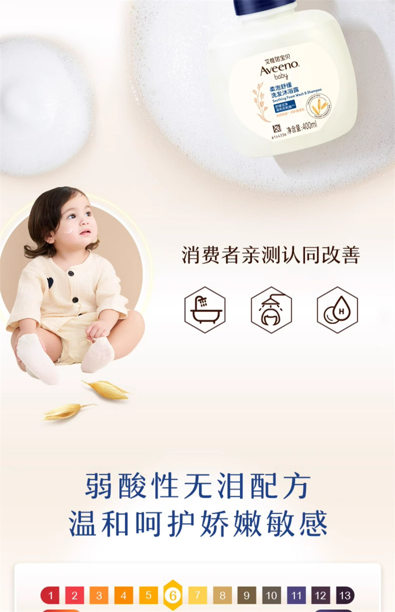 【1:1送水凝保湿霜10g】Aveeno艾惟诺宝贝柔泡舒缓洗发沐浴露二合一400ml