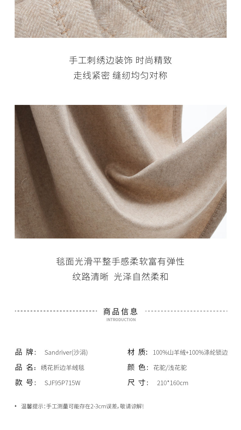 绣花折边羊绒毯 SJF95P715W