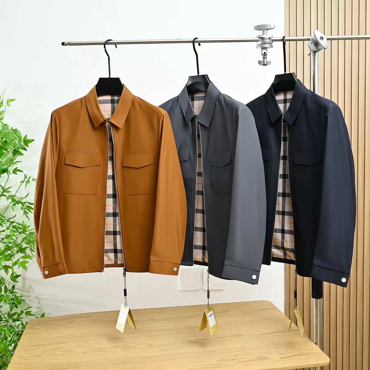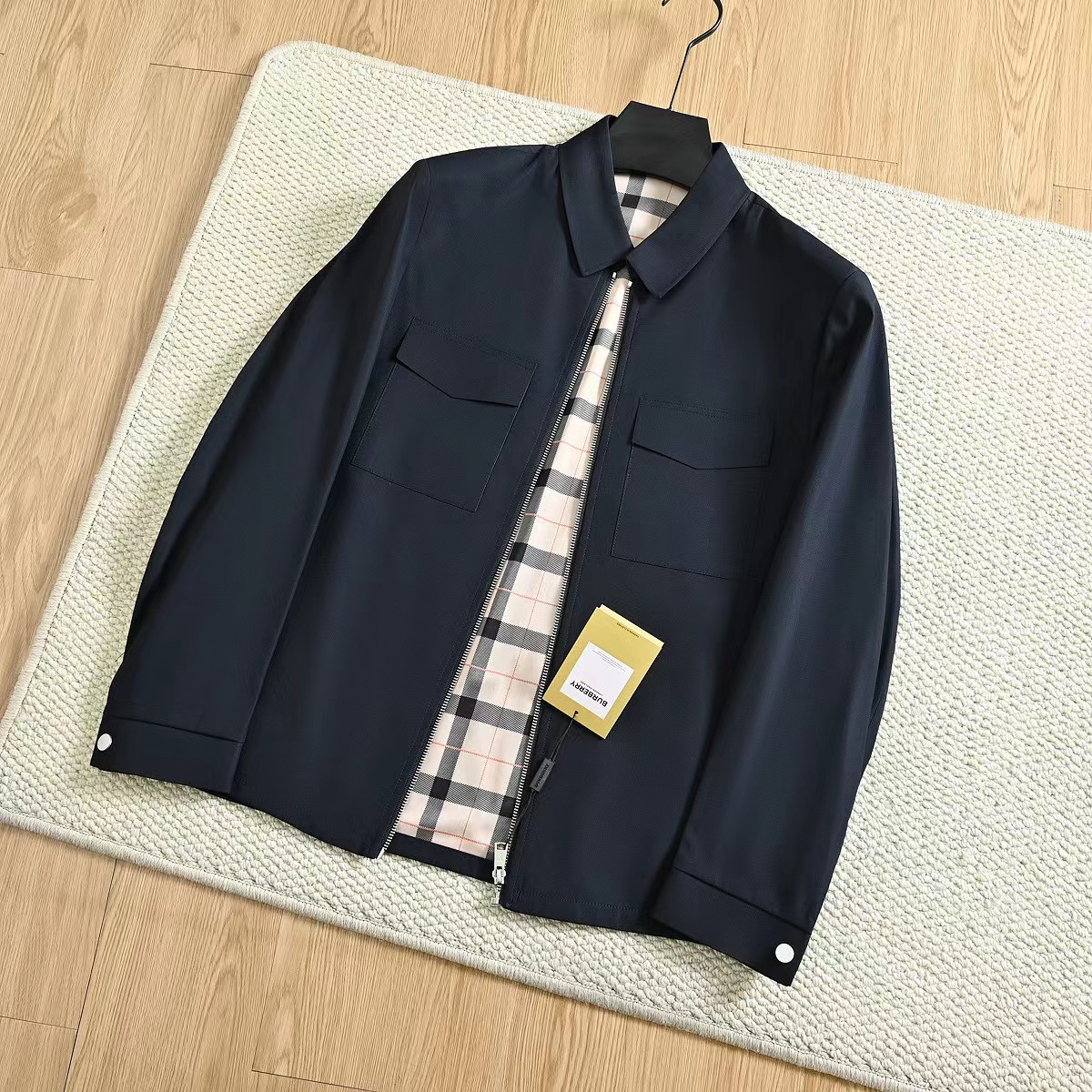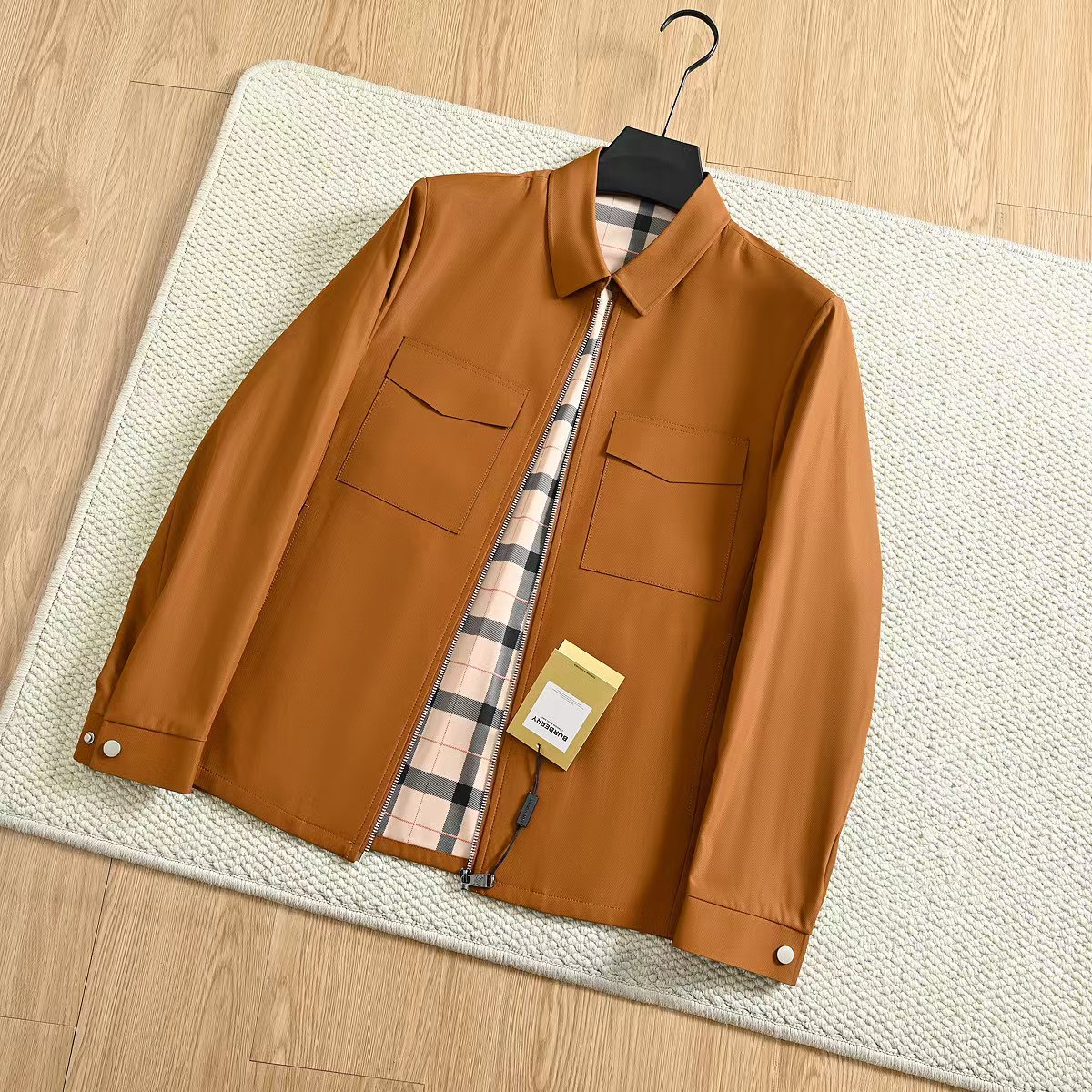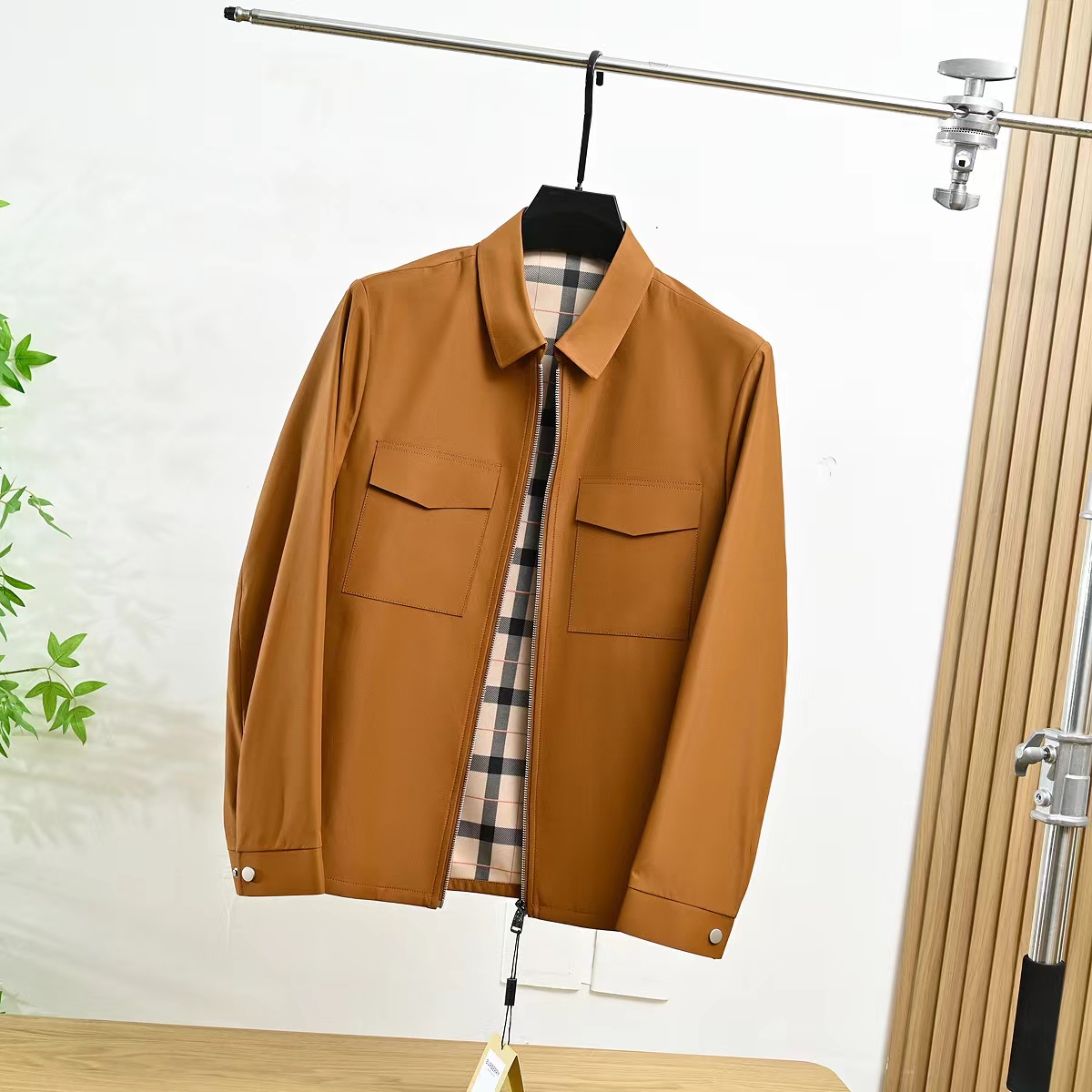 春季内里格子翻领夹克外套!复古气质又时髦,大方优雅的风格,带着复古感的潮流风味!面料是进口聚酯纤维超密织记忆面料!这种新的记忆面料,看起来很有质感!不是很厚,但手感非常舒适!档次感很高!生产过程极其复杂!成本只能说,很贵!!没有一定的档次价位水平,根本用不起这个面料!完整的保留了记忆面料的特殊属性!品质超棒,领子处的设计舒适性和美观性都具备了!版型上身特别帅!一款百搭的街头休闲潮范夹克!讲究的就是做工方面,成衣是相当复杂!内里复古巴宝莉格子,360度无死角!质量版型好到爆!整个衣服的手感非常柔暖舒滑!相当的有逼格!新潮!看似简单的款式,真的是重工之作,出入春季的bi备款,强烈种草!三标齐全,送人自留都很合适!