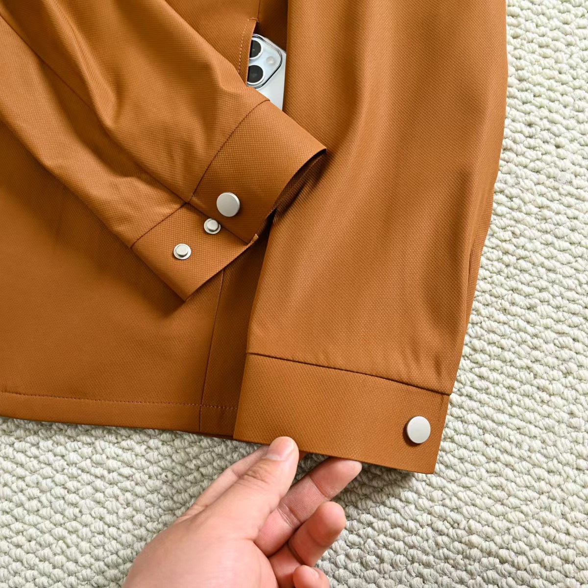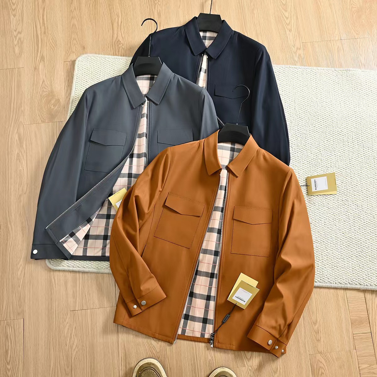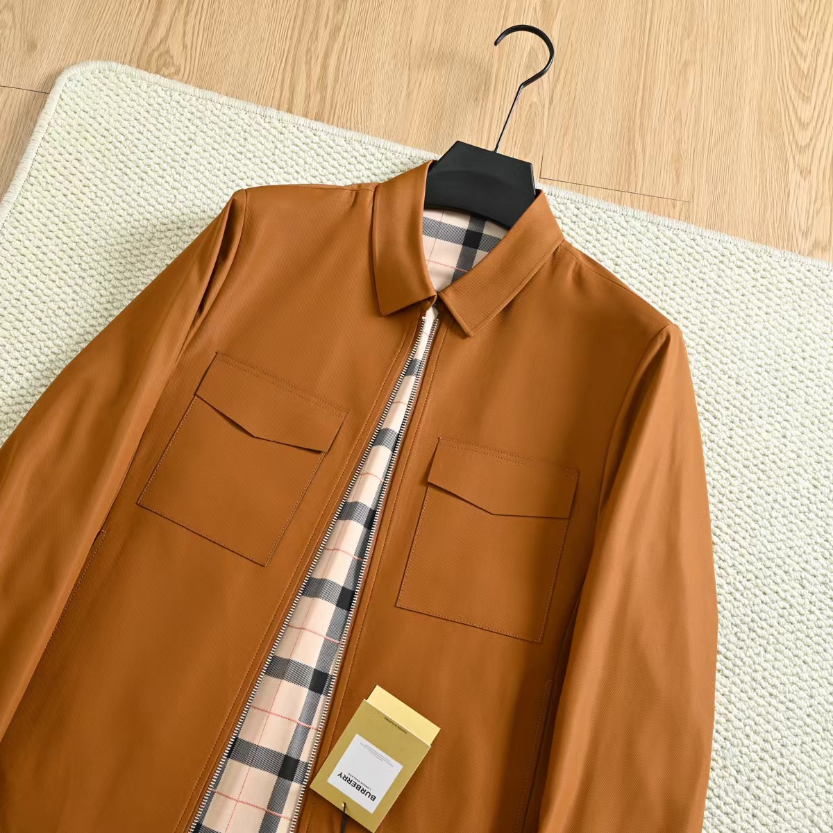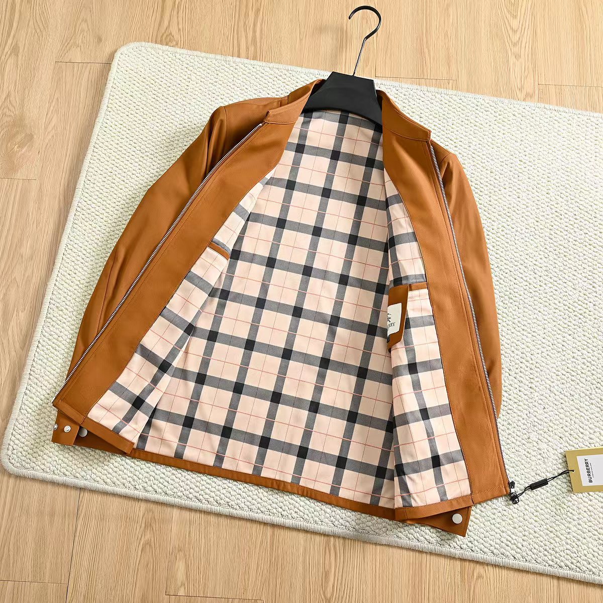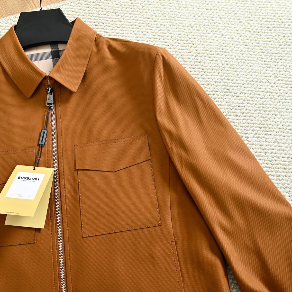 春季内里格子翻领夹克外套!复古气质又时髦,大方优雅的风格,带着复古感的潮流风味!面料是进口聚酯纤维超密织记忆面料!这种新的记忆面料,看起来很有质感!不是很厚,但手感非常舒适!档次感很高!生产过程极其复杂!成本只能说,很贵!!没有一定的档次价位水平,根本用不起这个面料!完整的保留了记忆面料的特殊属性!品质超棒,领子处的设计舒适性和美观性都具备了!版型上身特别帅!一款百搭的街头休闲潮范夹克!讲究的就是做工方面,成衣是相当复杂!内里复古巴宝莉格子,360度无死角!质量版型好到爆!整个衣服的手感非常柔暖舒滑!相当的有逼格!新潮!看似简单的款式,真的是重工之作,出入春季的bi备款,强烈种草!三标齐全,送人自留都很合适!
