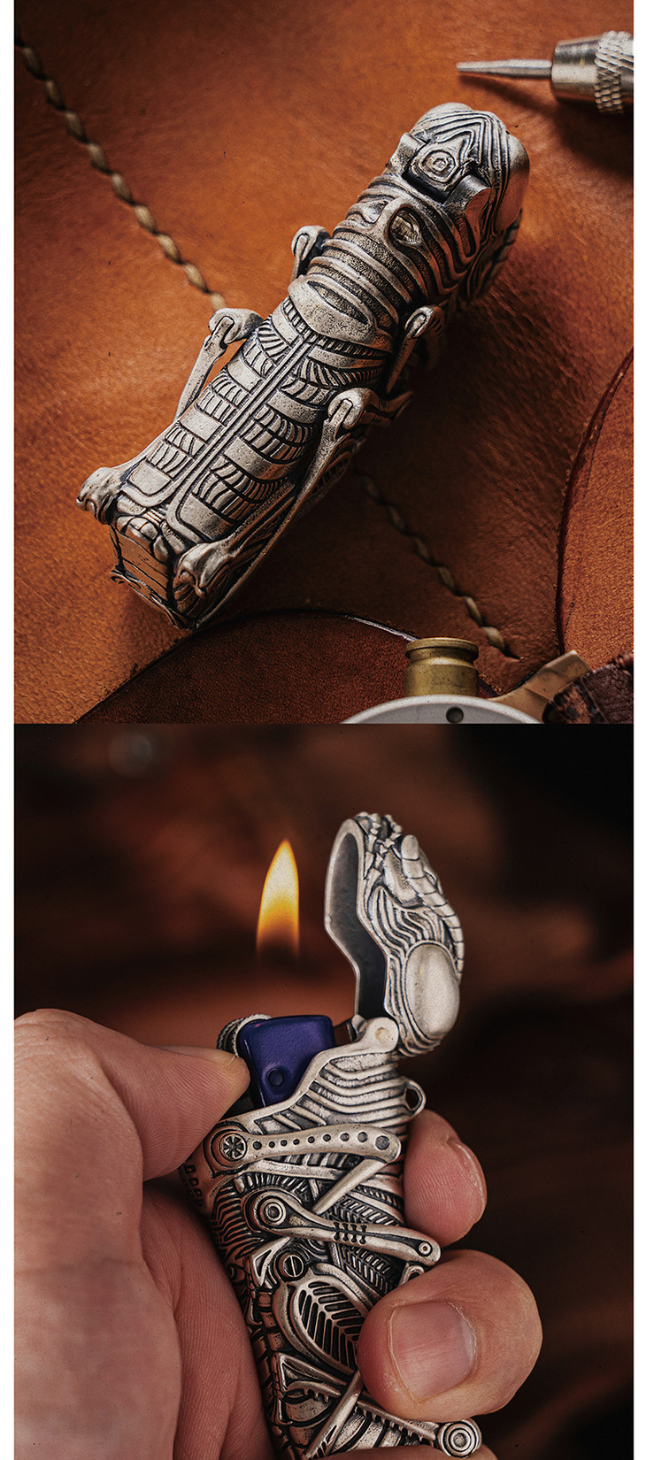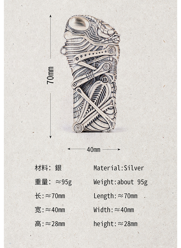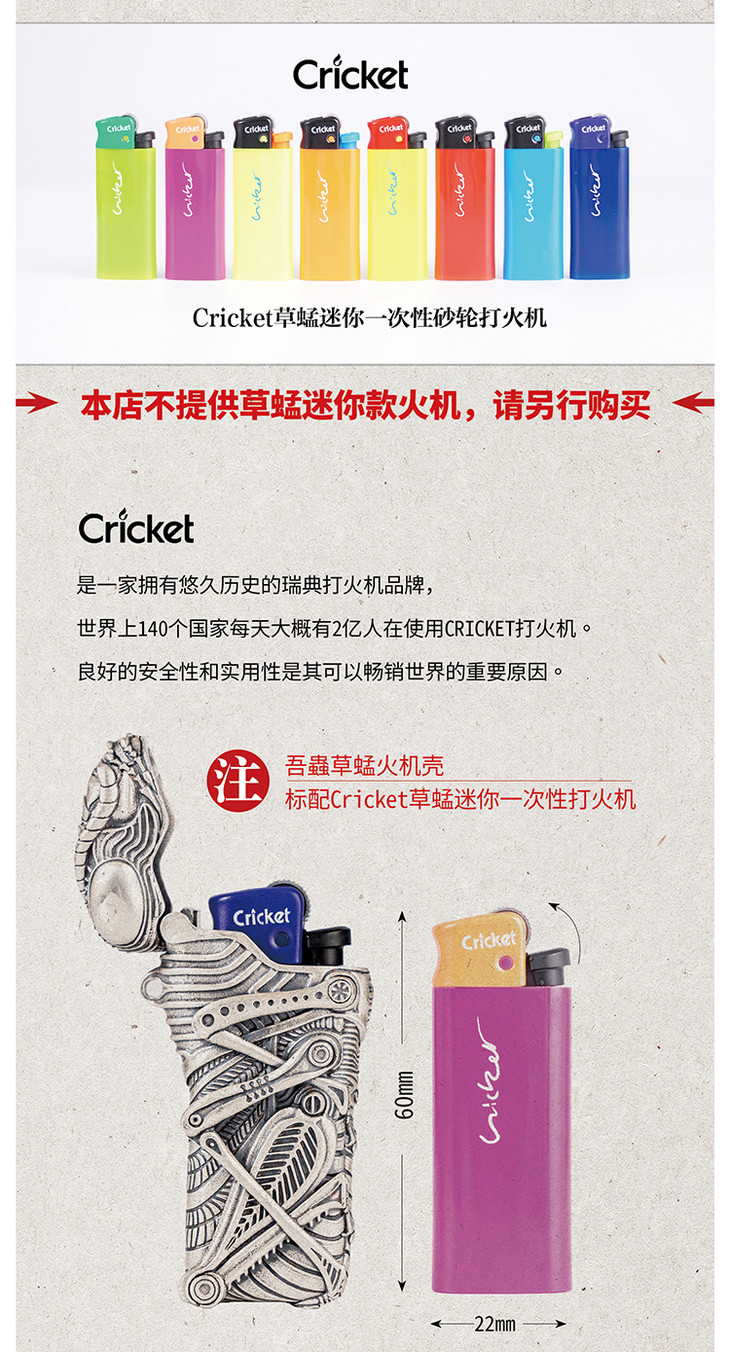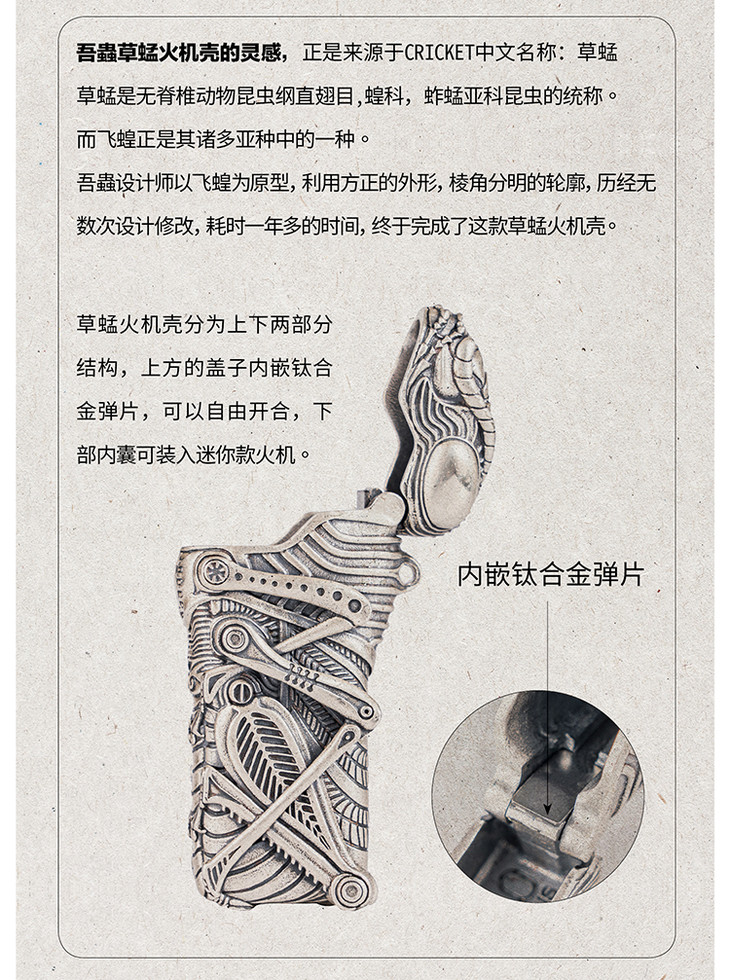 吾蟲-925银版 Cricket草蜢防爆金属打火机壳 砂轮式一次性打火机套 925银开盖【官方授权 48小时发货】