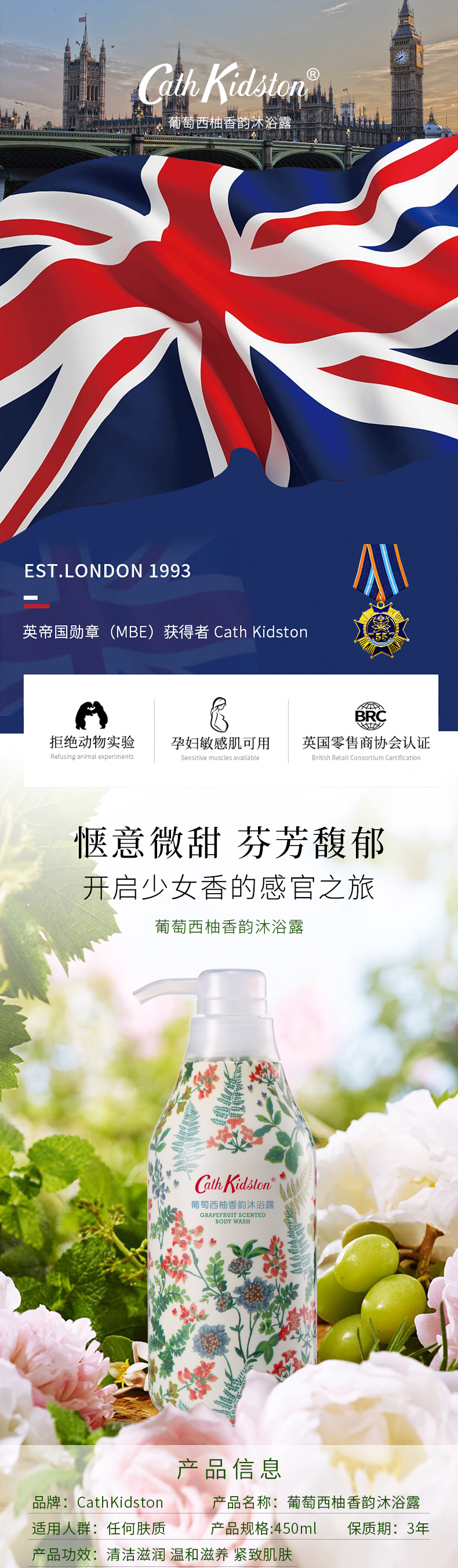 TT CathKidston依兰花滋润保湿沐浴露/葡萄西柚沐浴露 450ml