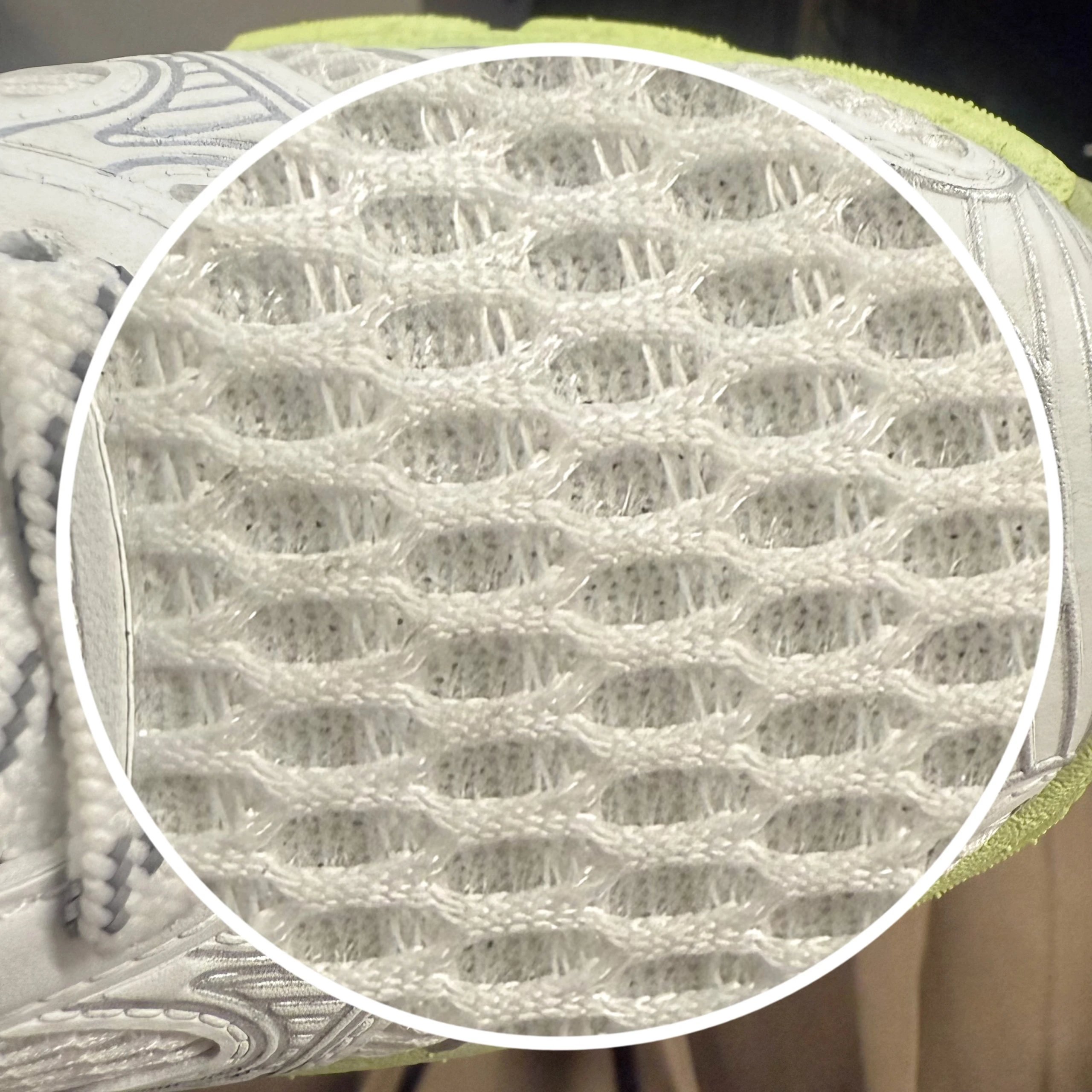 鞋面由密集的微孔网布拼接而成