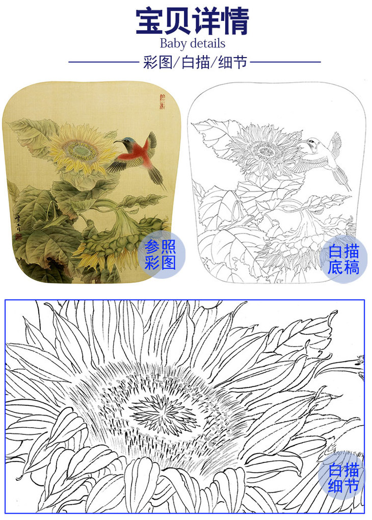龚雪青花鸟白描底稿-太阳鸟小品-多种白描尺寸可选-XQ32
