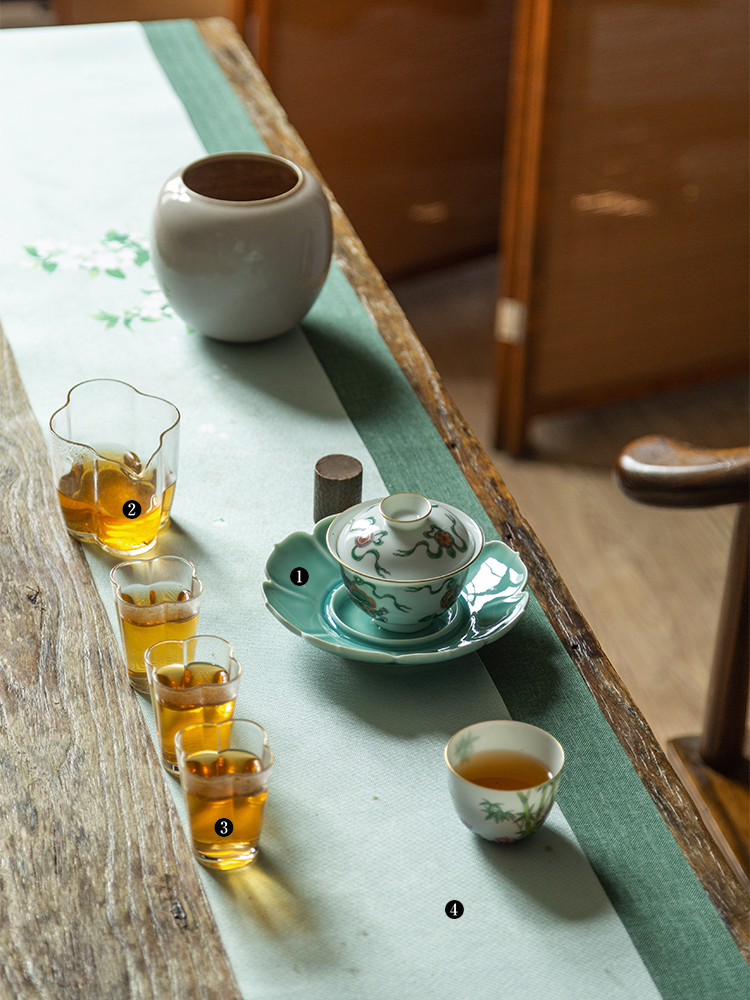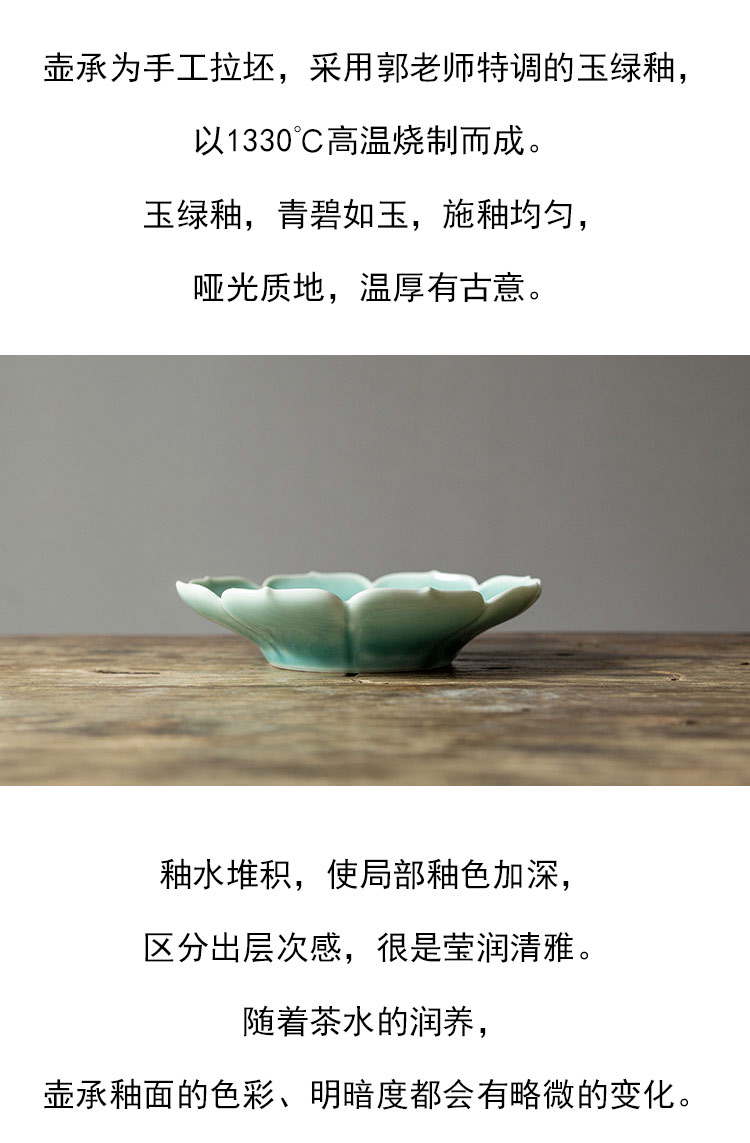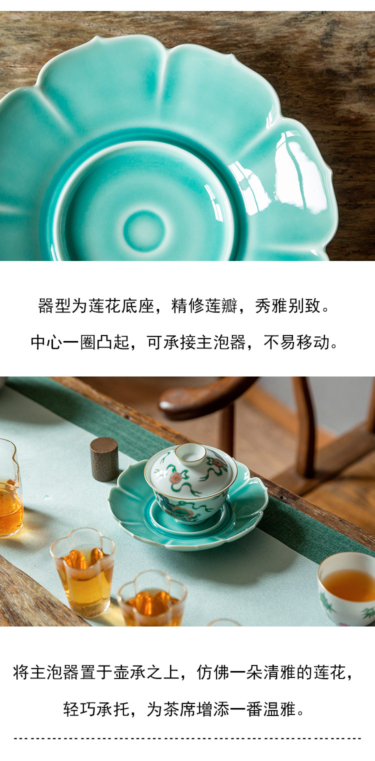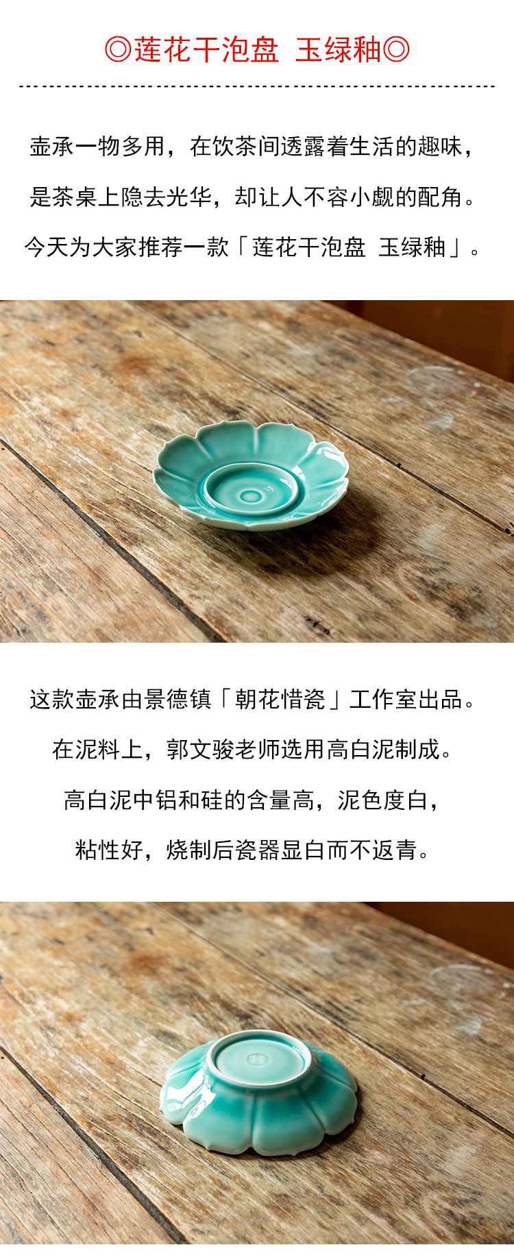 茶香记 景德镇莲花干泡盘玉绿釉壶承朝花惜瓷茶盘茶道零配秀雅