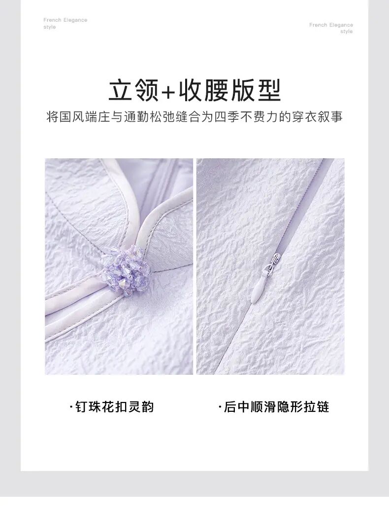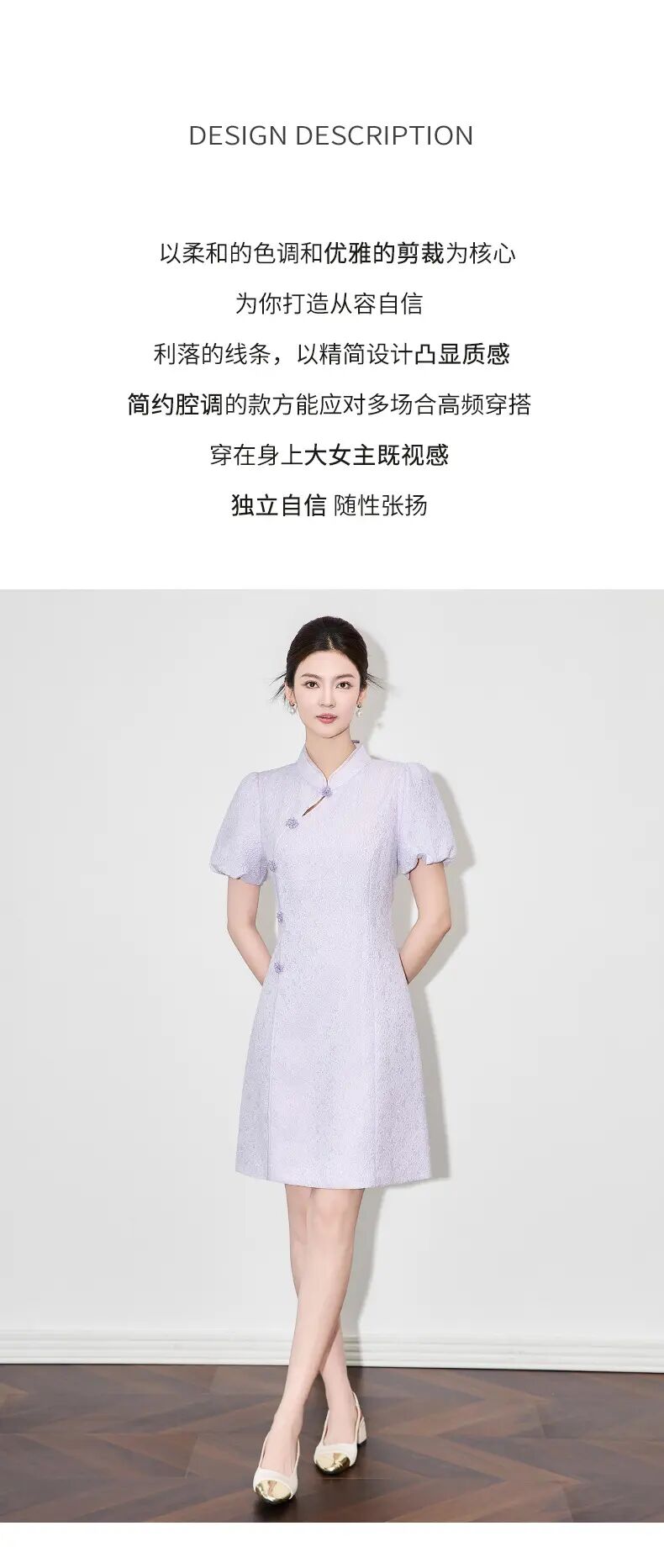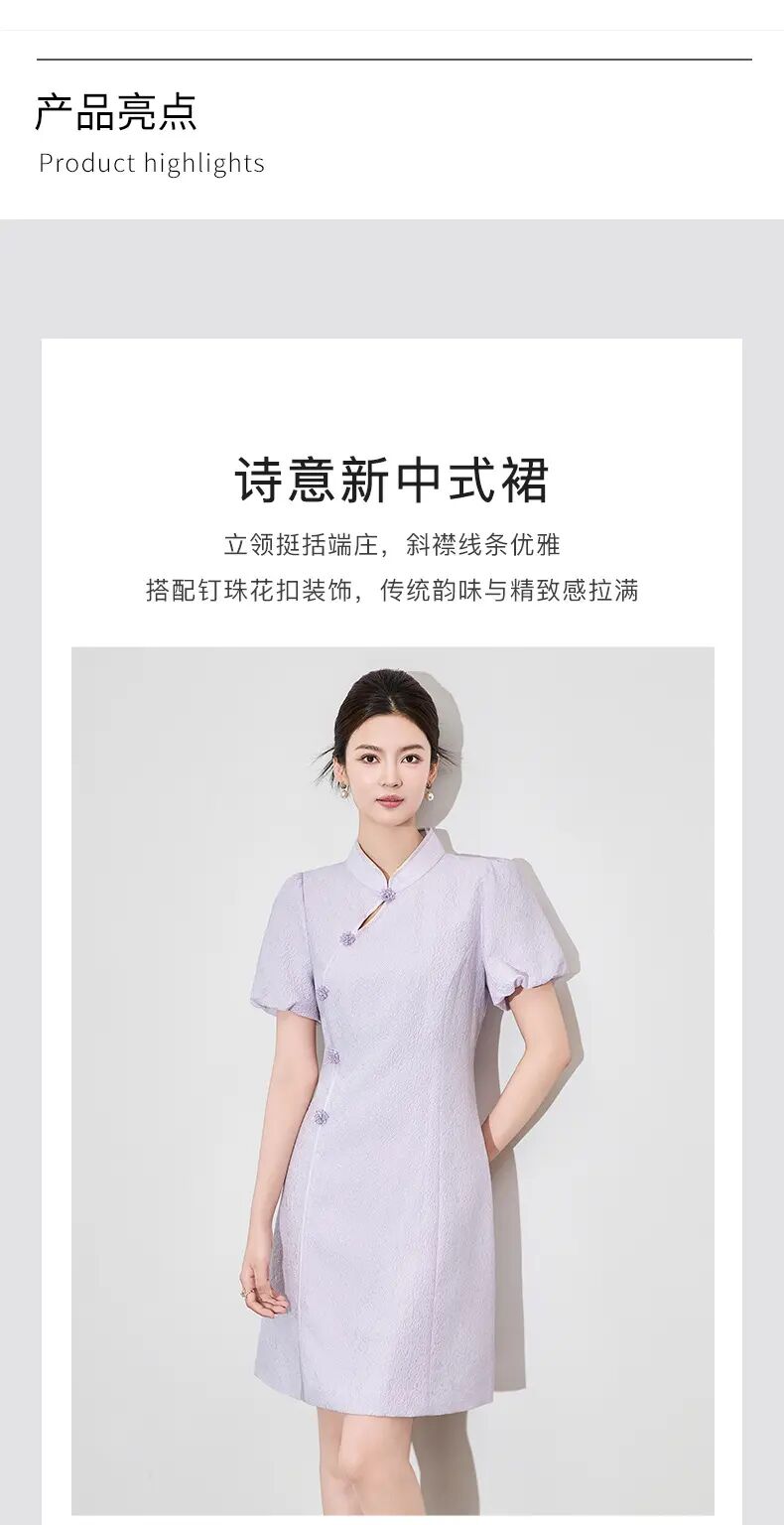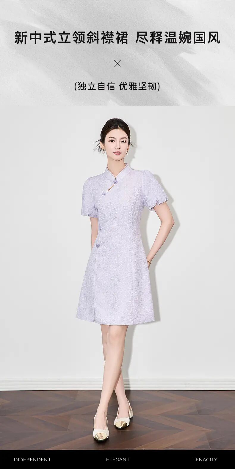 【高货wl】全新升级【铂金会员312/天猫419/差价107】(95558) 洛诗琳新中式端庄温婉国风立领斜襟肌理提花天丝连衣裙