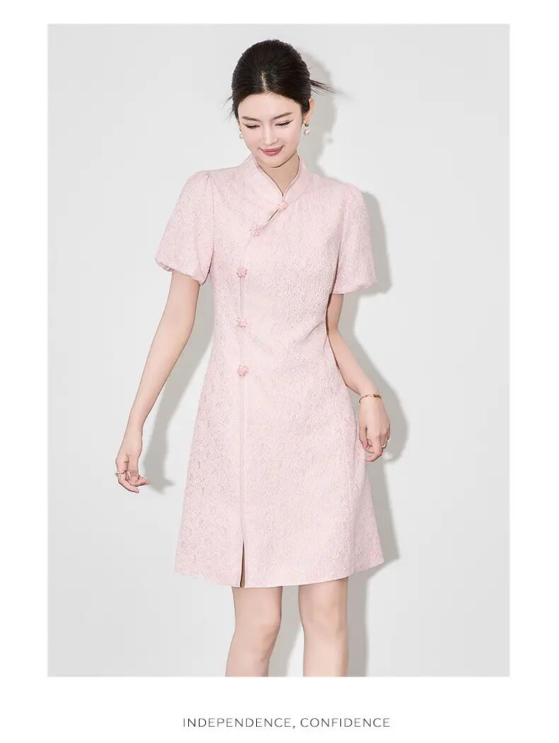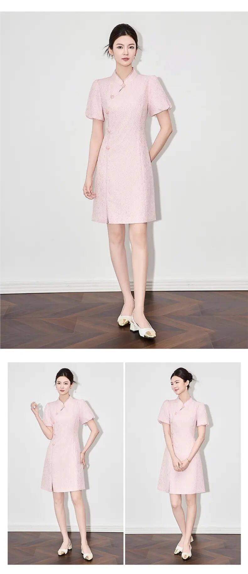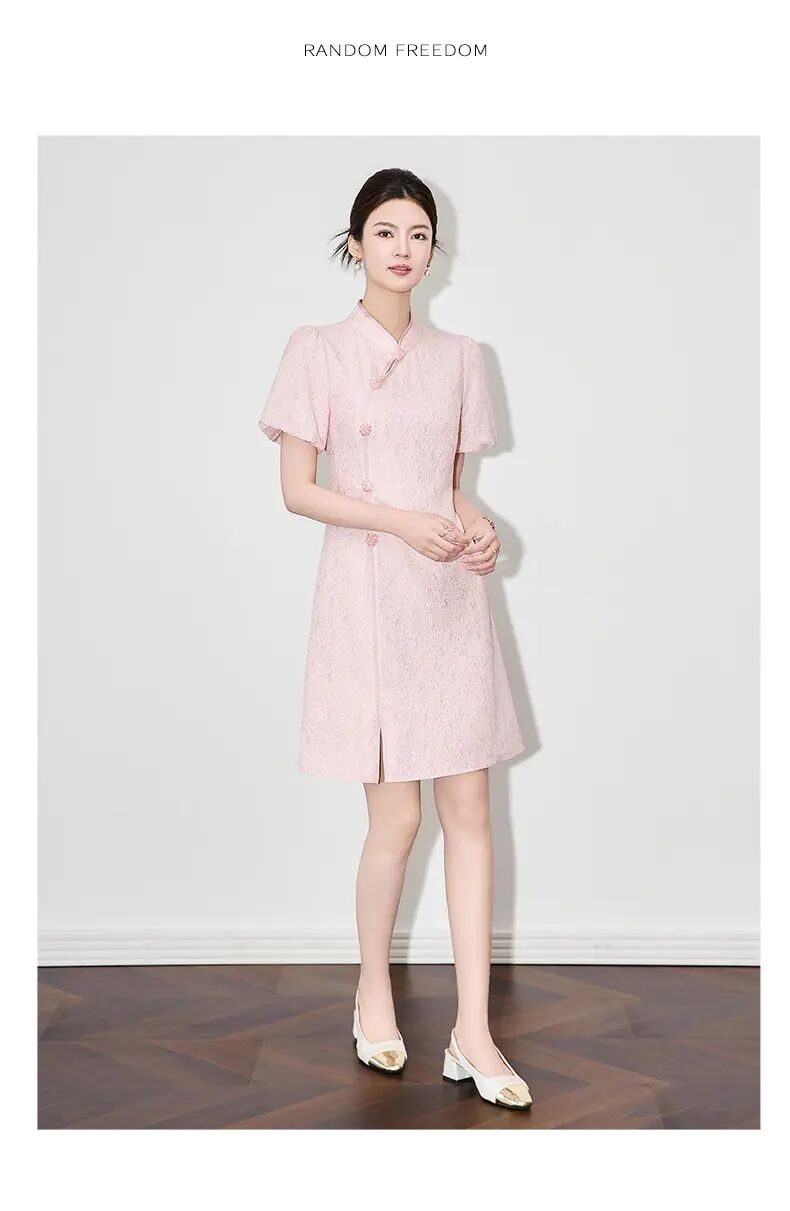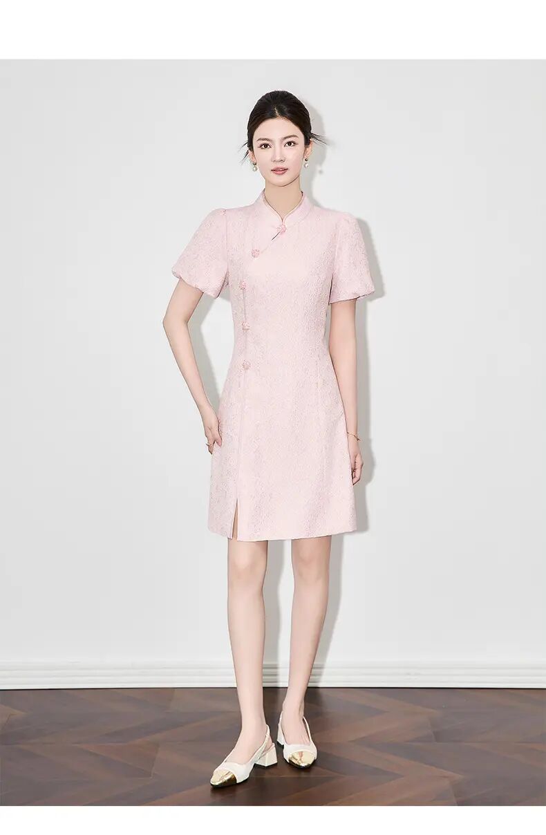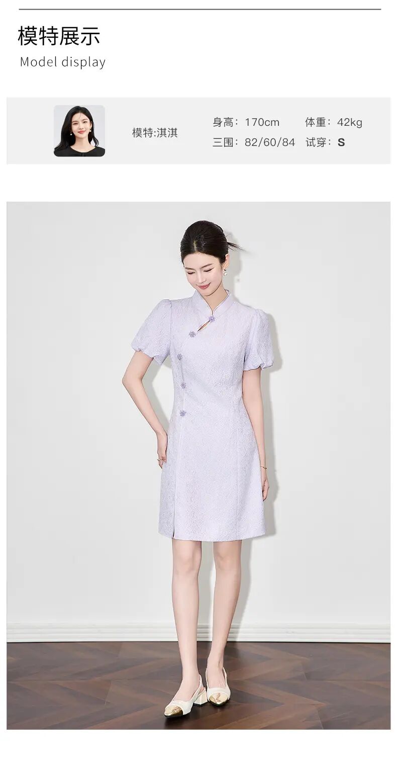 【高货wl】全新升级【铂金会员312/天猫419/差价107】(95558) 洛诗琳新中式端庄温婉国风立领斜襟肌理提花天丝连衣裙