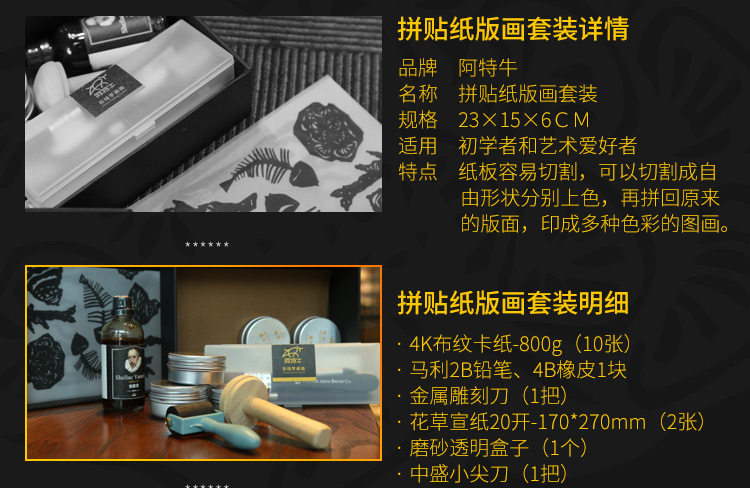 中盛画材 纸版画套装初学版画工具套装油墨版画蘑菇迷你滚筒美术