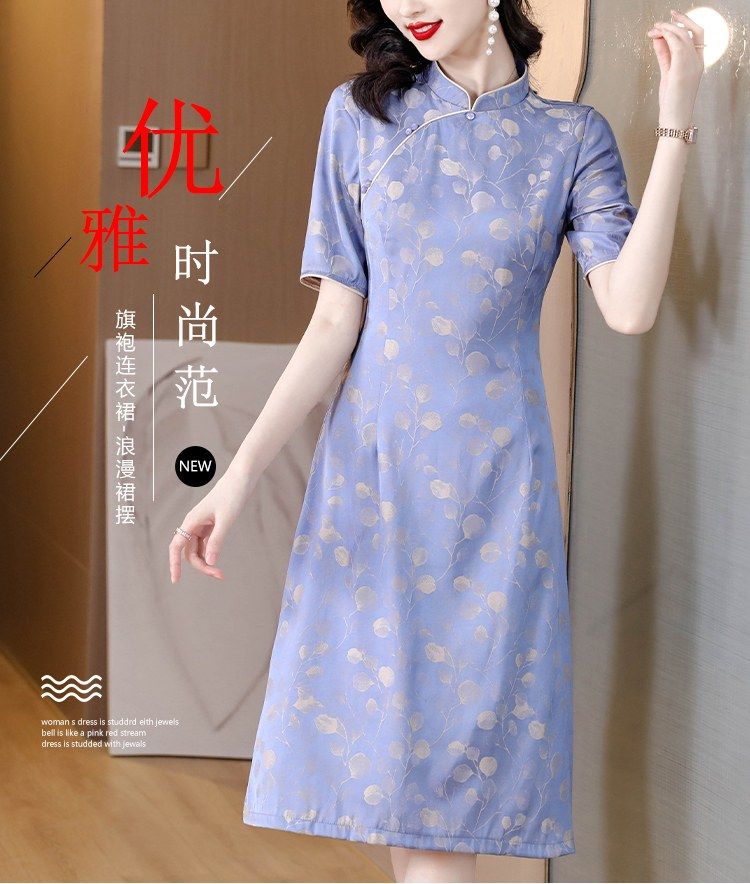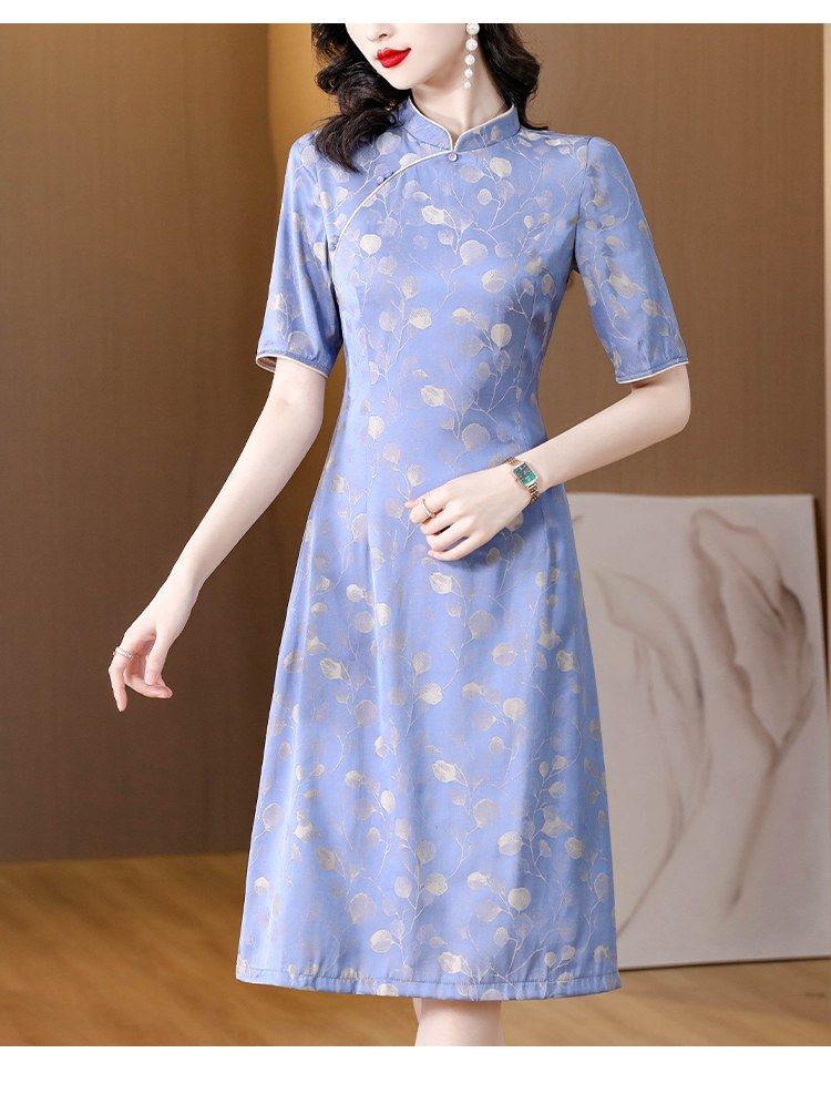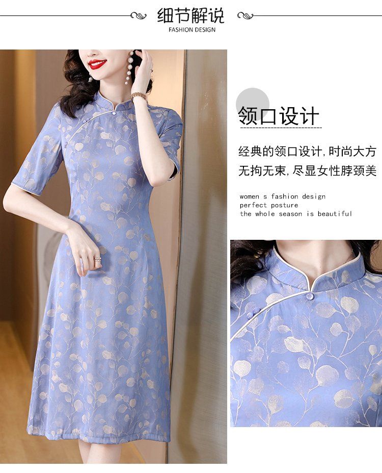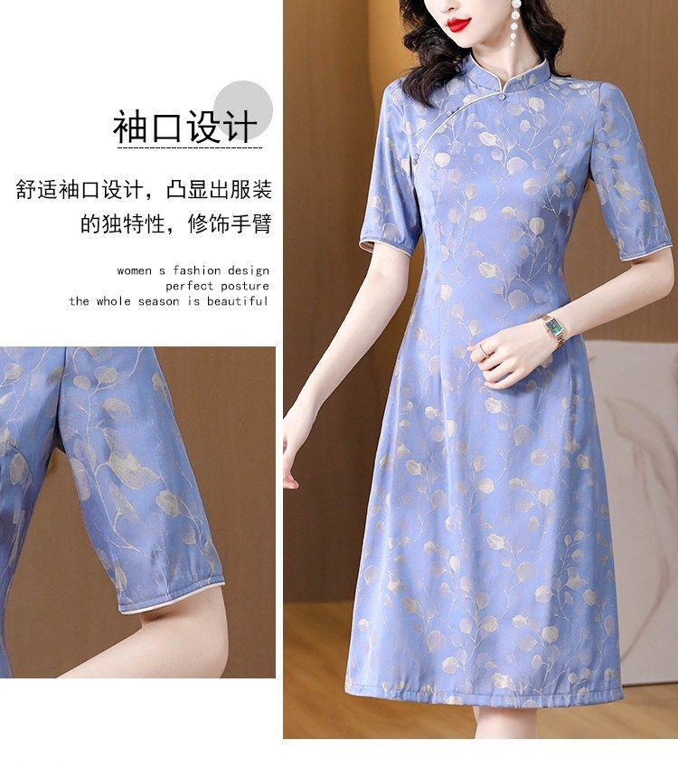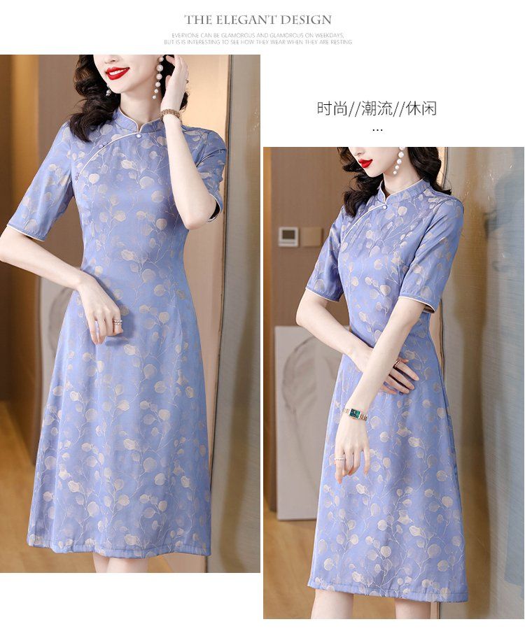 A2152 2023夏季新品时尚立领显瘦旗袍a型裙优雅气质时尚百搭提花连衣裙