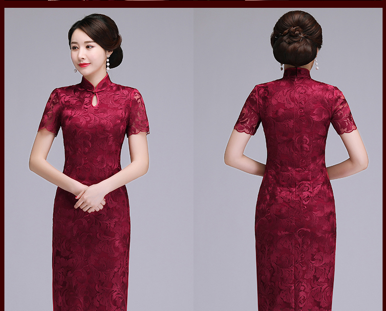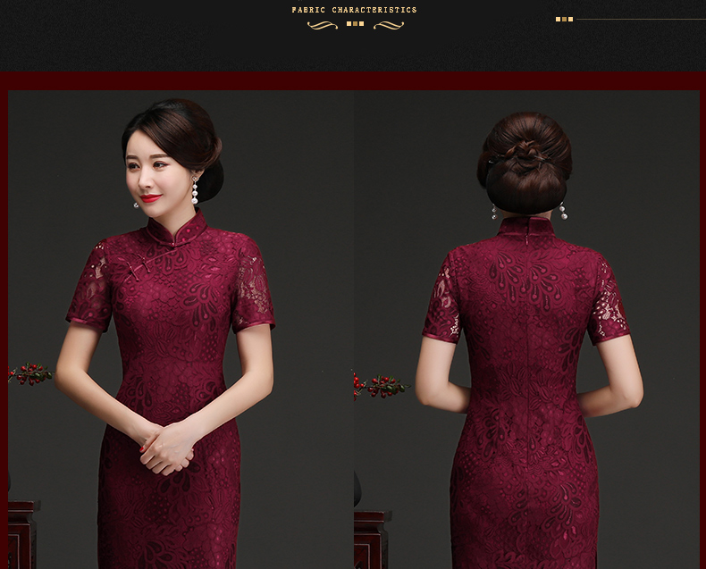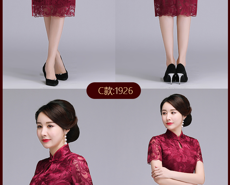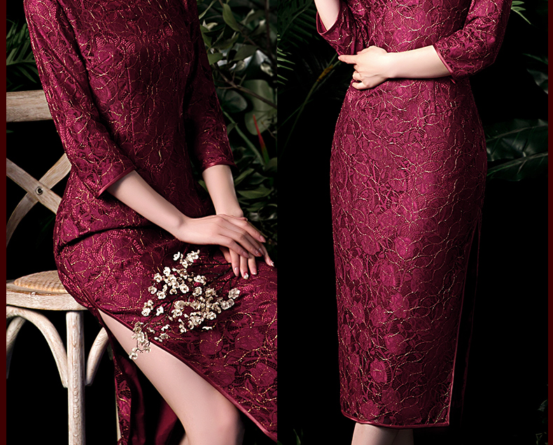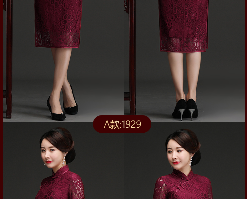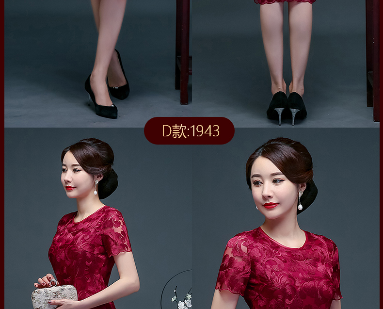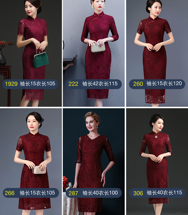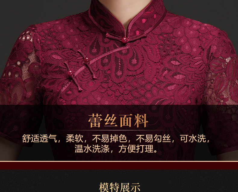 上海旗袍厂NBL-N1929 蕾丝旗袍2021年新款春夏中年妈妈装喜婆婆改良版婚礼服洋气大码女