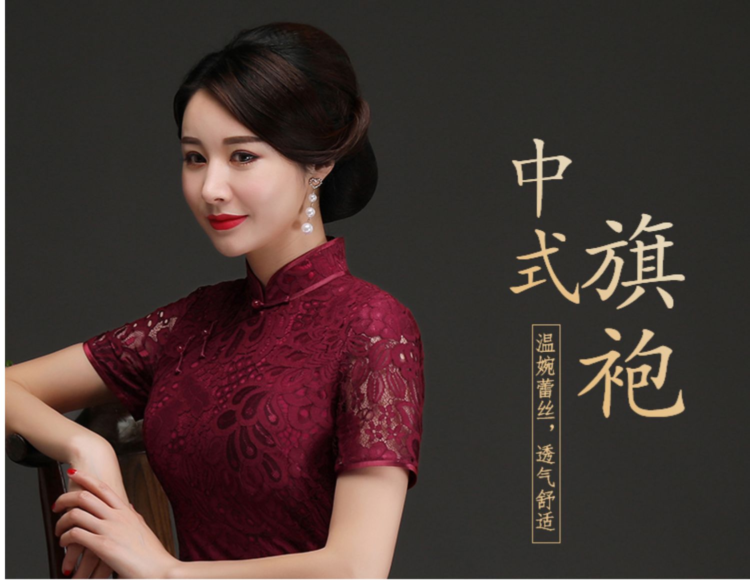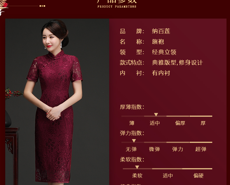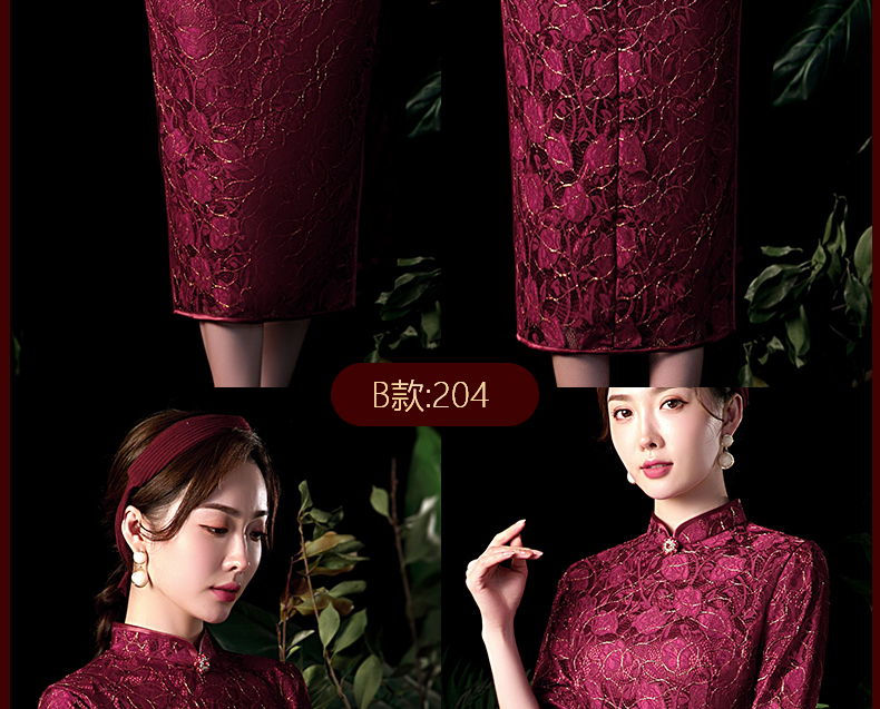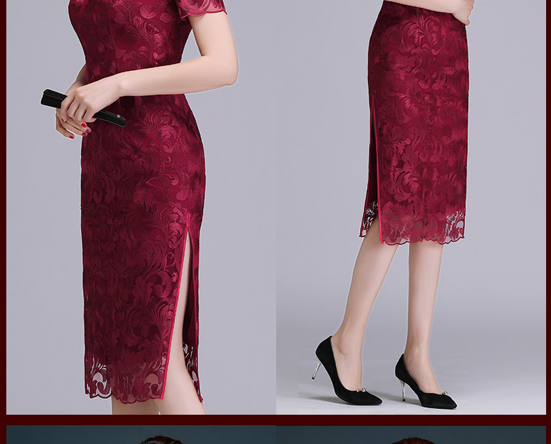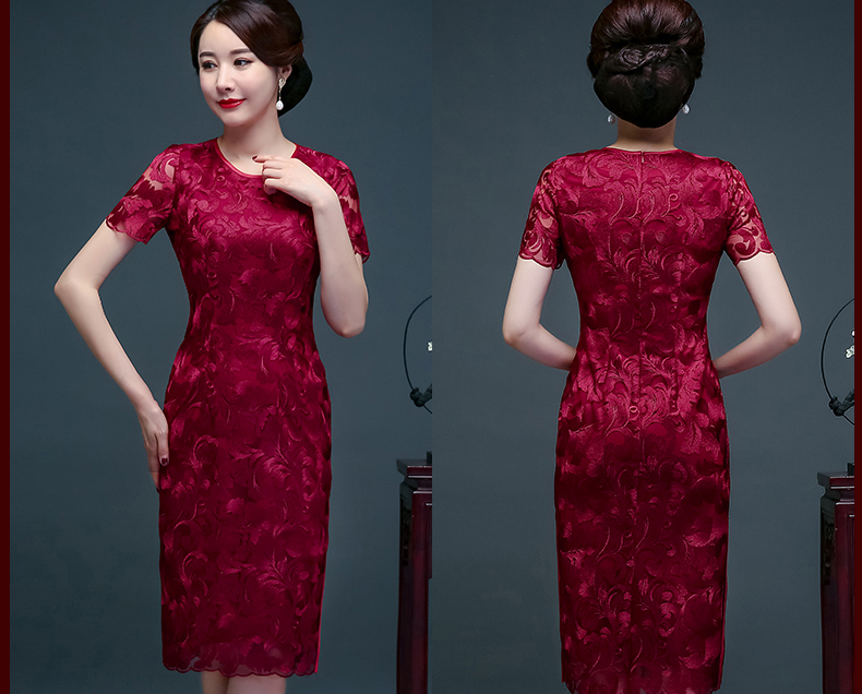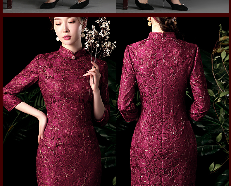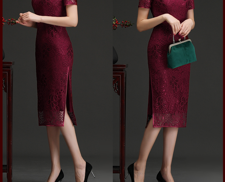 上海旗袍厂NBL-N1929 蕾丝旗袍2021年新款春夏中年妈妈装喜婆婆改良版婚礼服洋气大码女