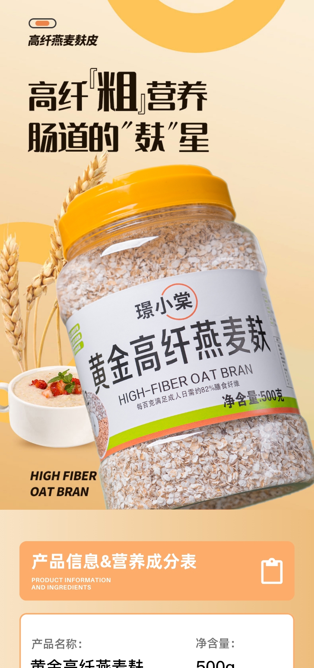 【买1送1 ,买2送2 俄罗斯进口 】璟小棠·黄金高纤燕麦麸 500g/罐
