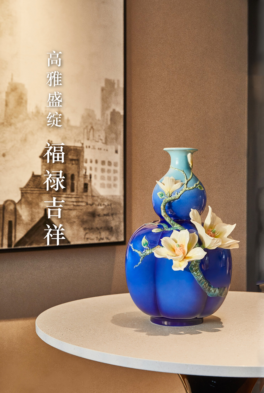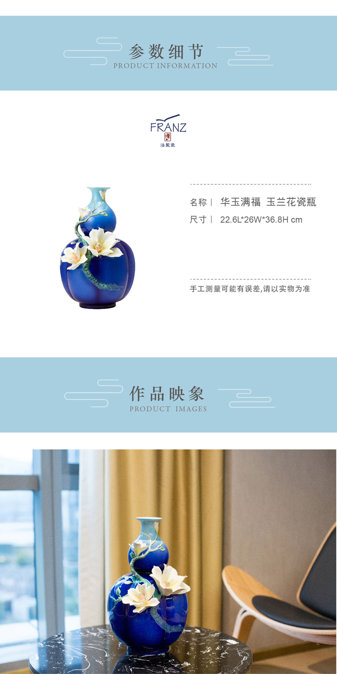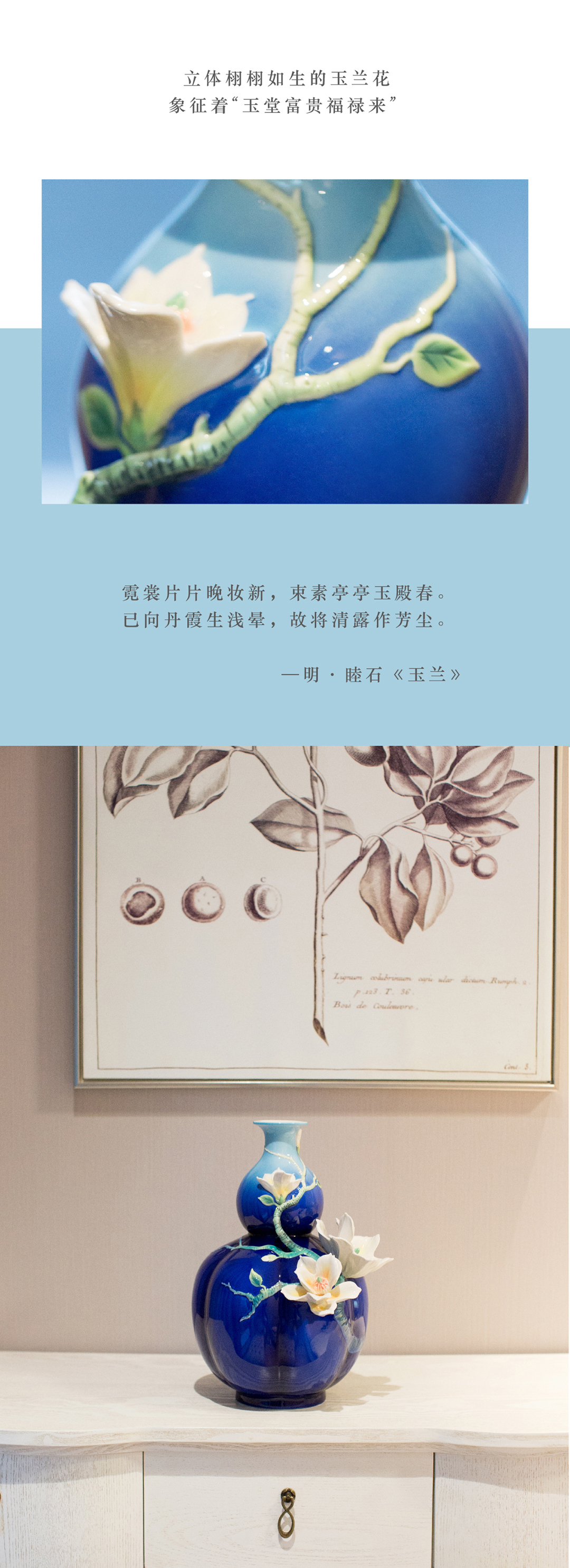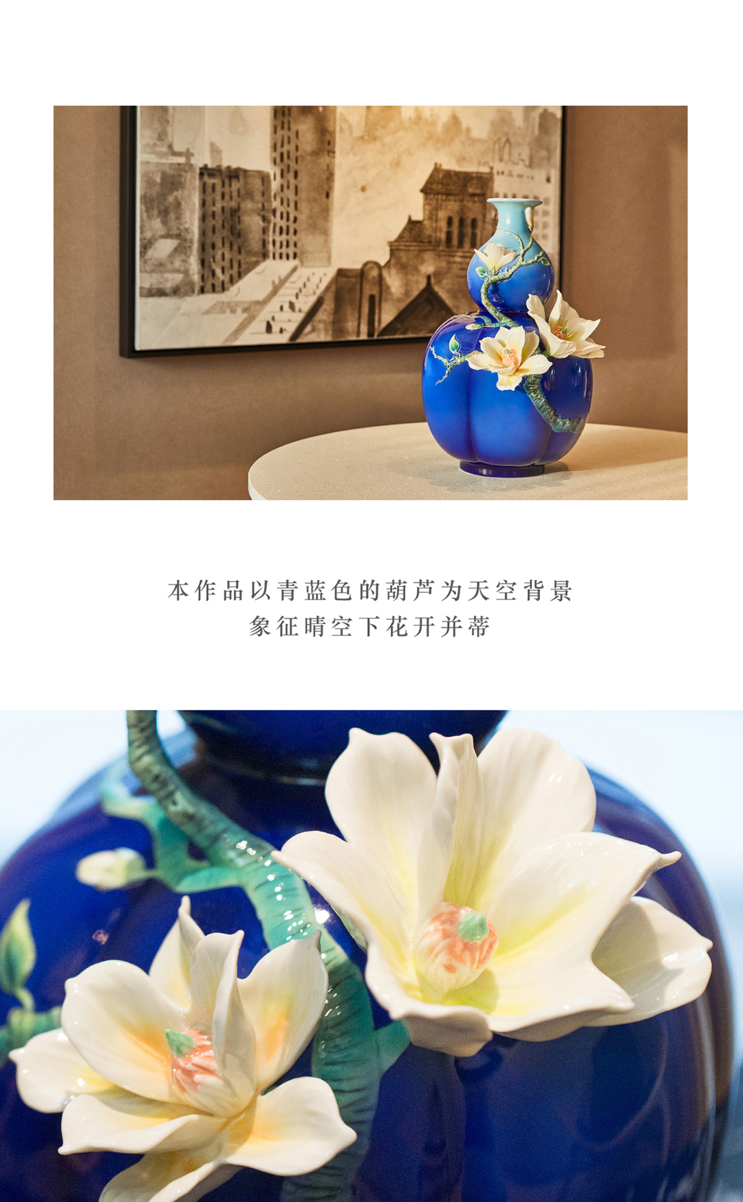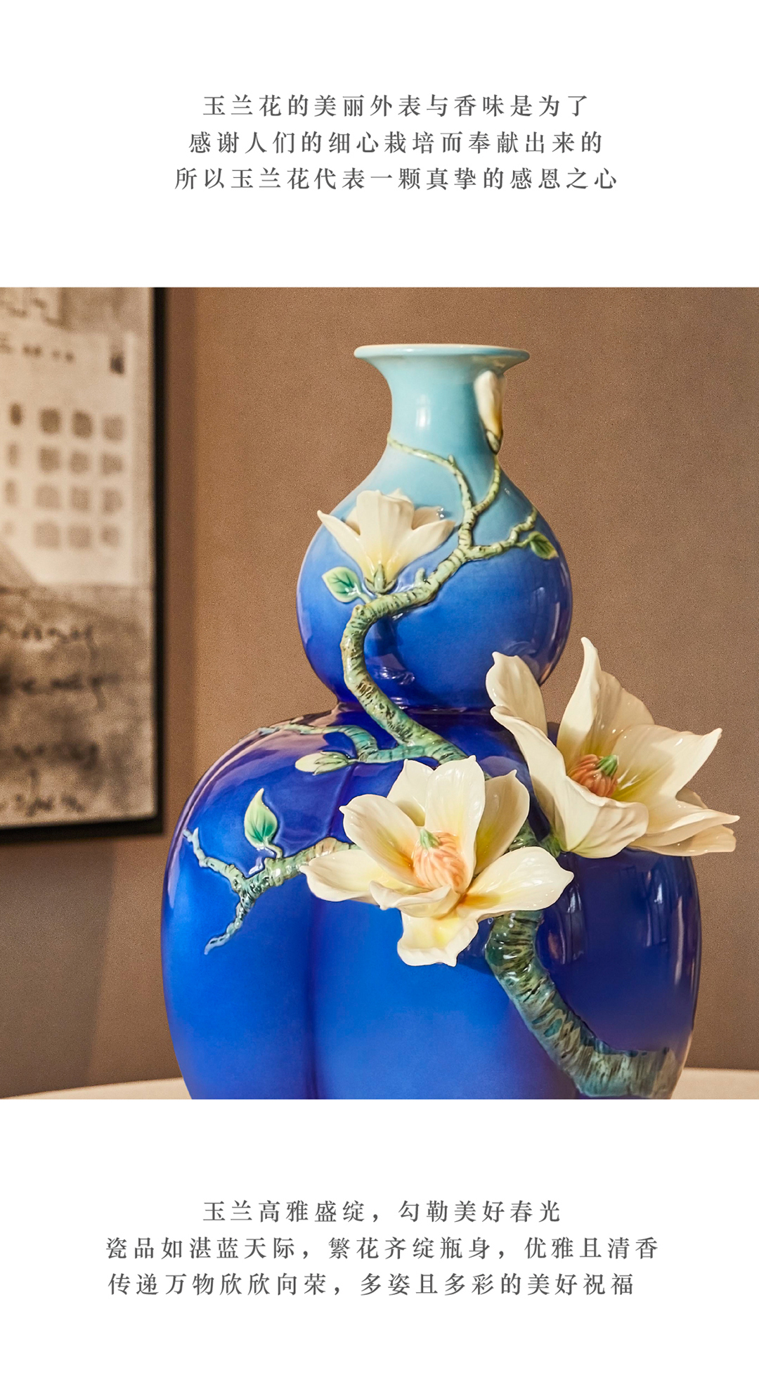 【彼达思】法蓝瓷 FZ03807华玉满福玉兰花瓷瓶
