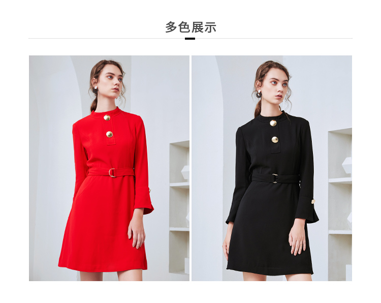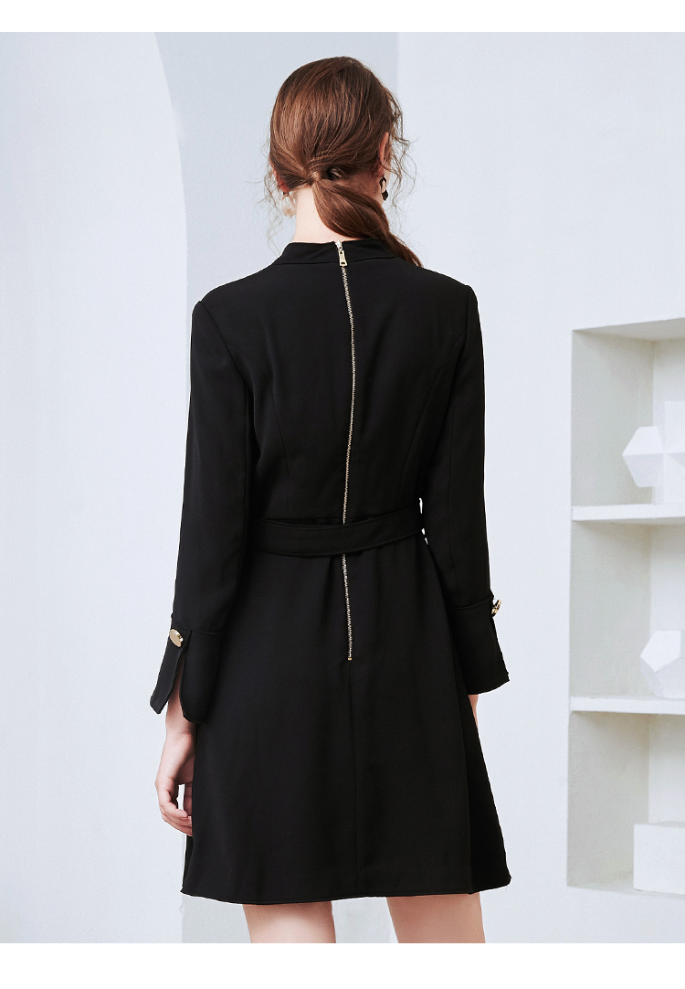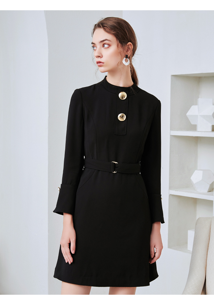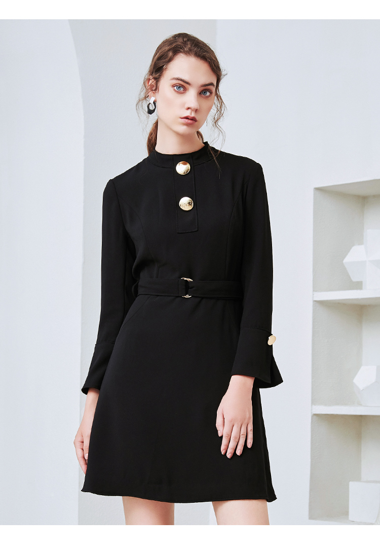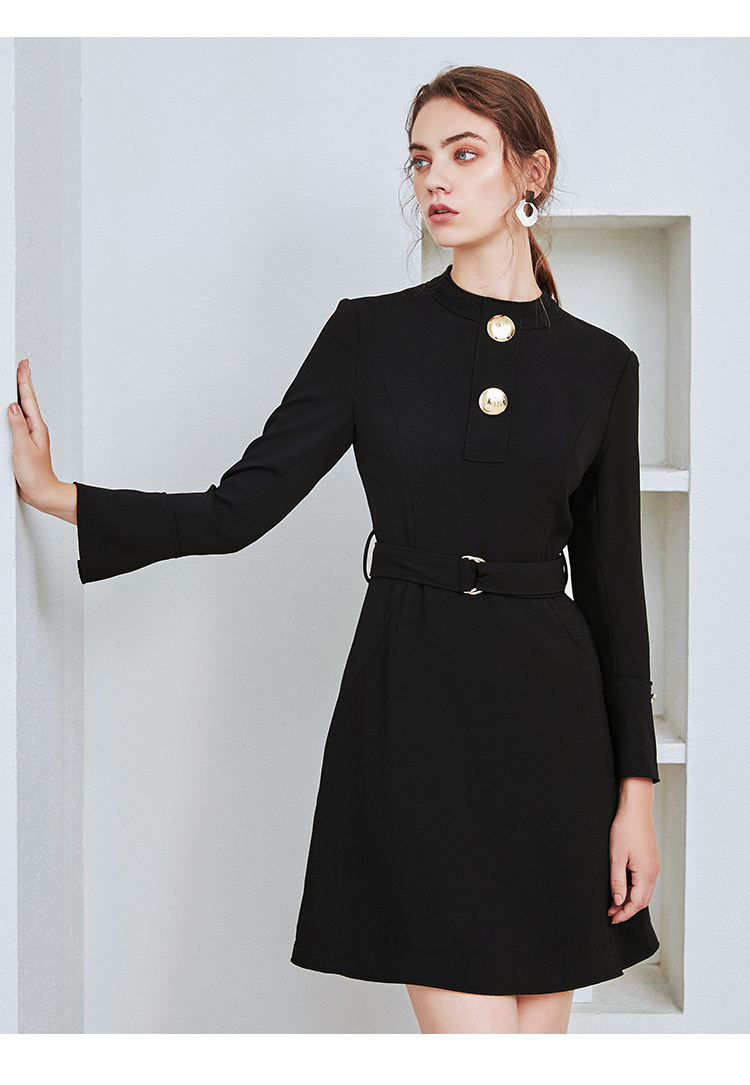 EITIE爱特爱秋季新款时尚通勤显瘦百搭小黑裙喇叭袖连衣裙女C2007532