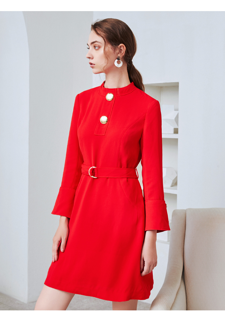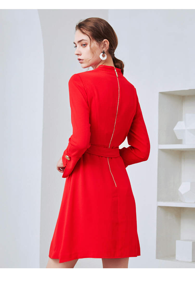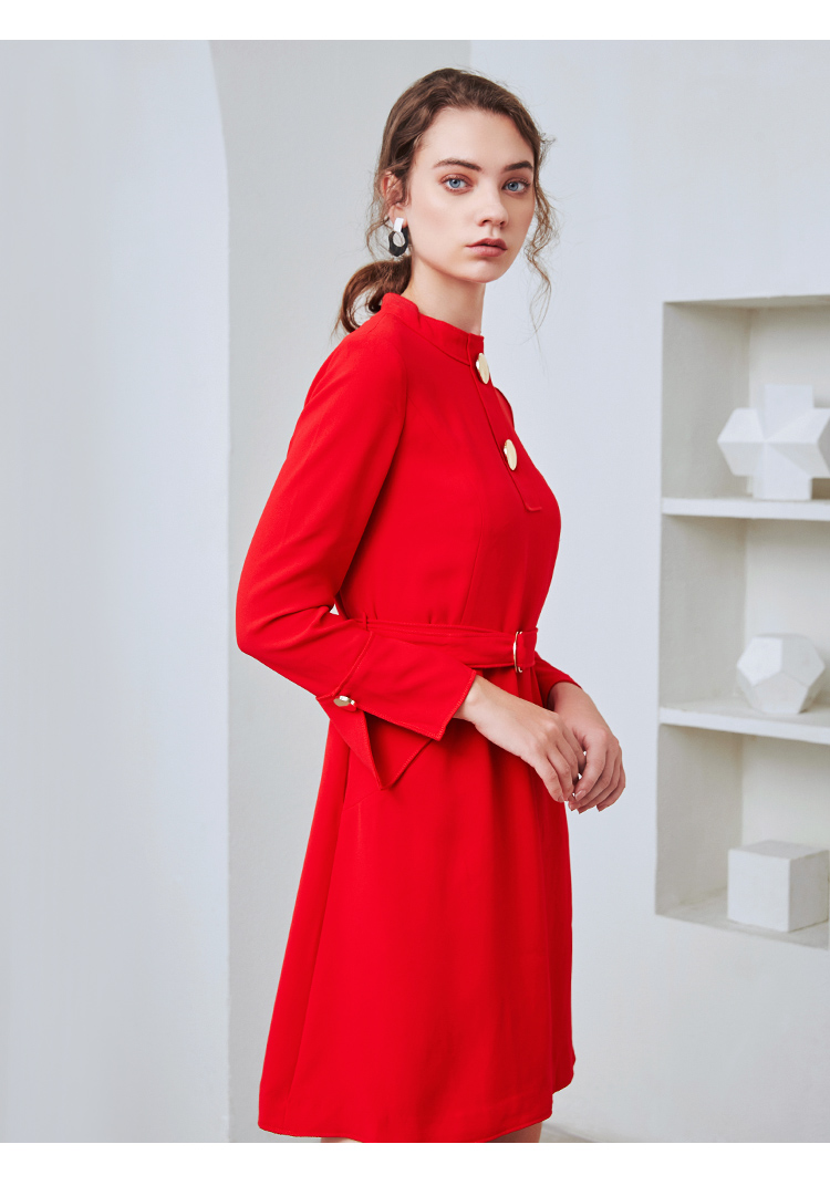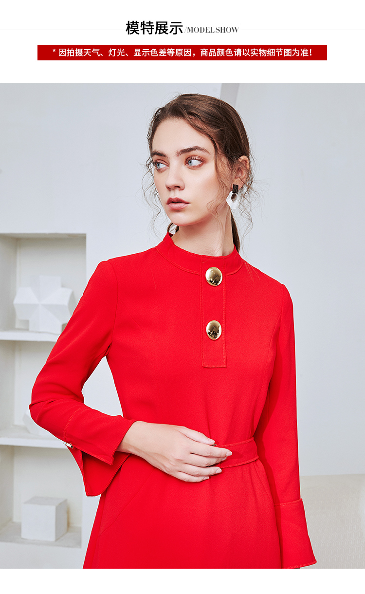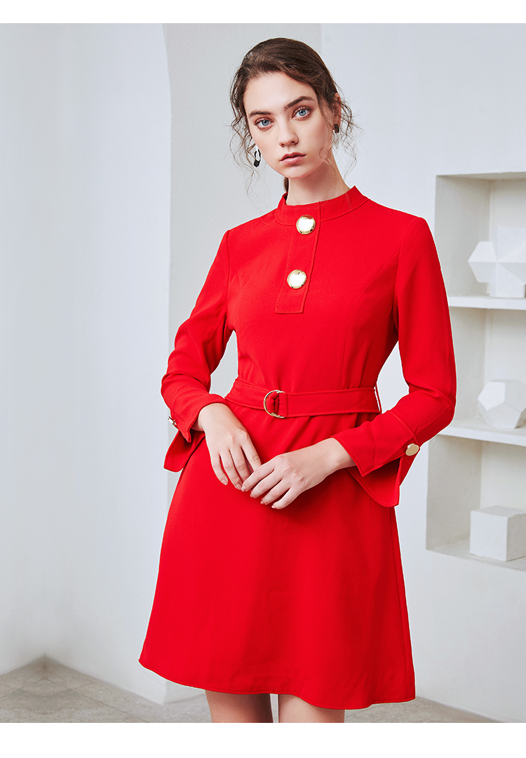 EITIE爱特爱秋季新款时尚通勤显瘦百搭小黑裙喇叭袖连衣裙女C2007532