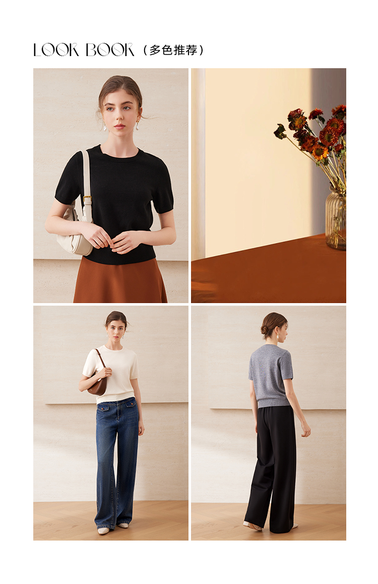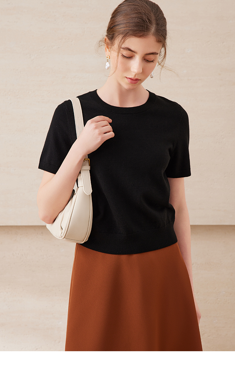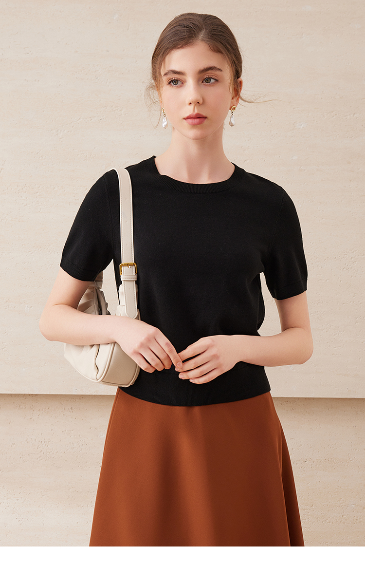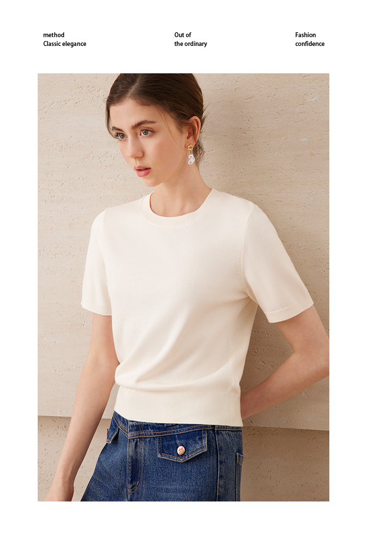 EITIE爱特爱舒适柔软百搭基础款短袖多色圆领针织衫2025春夏新款A2501507