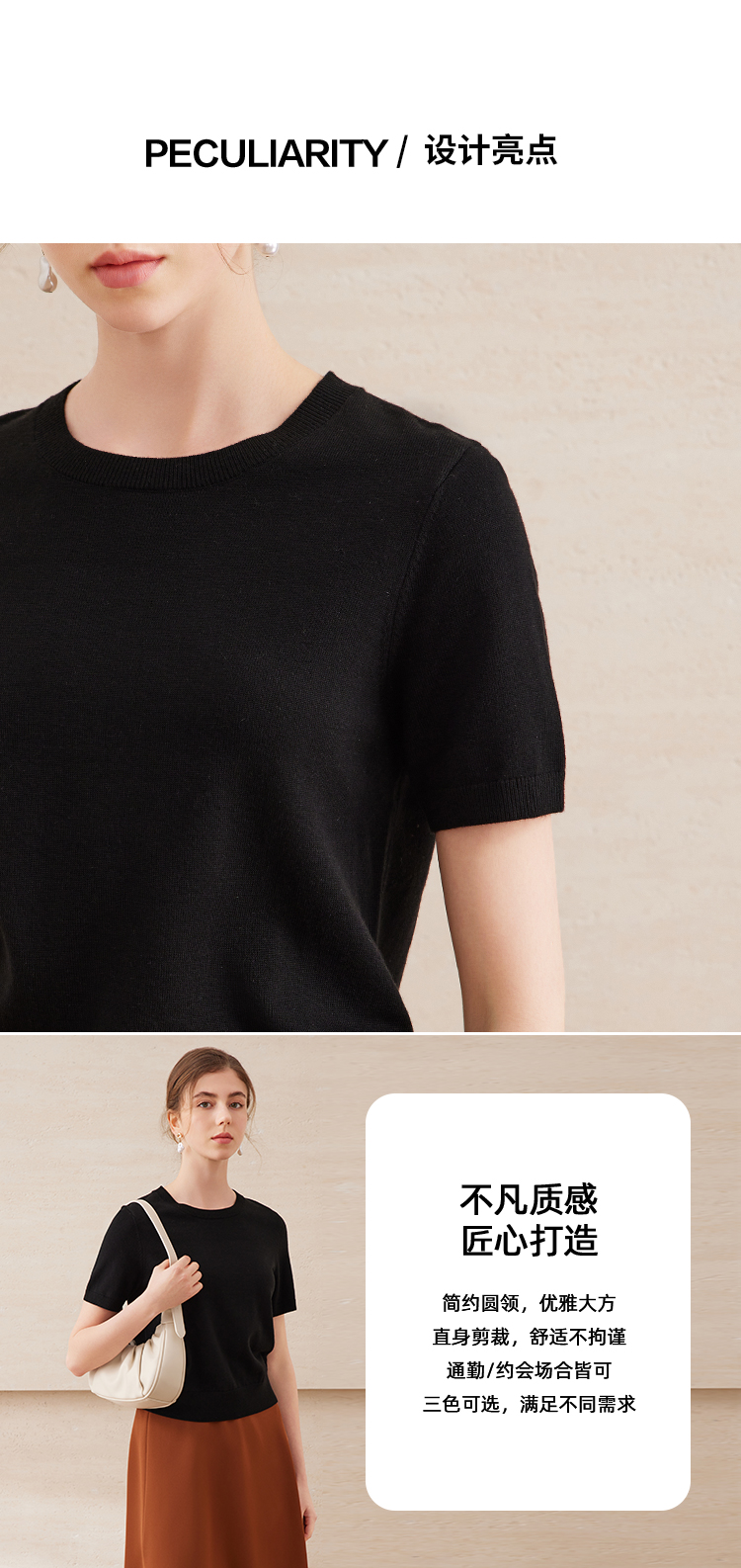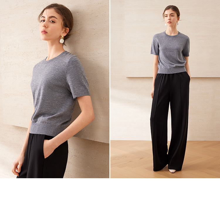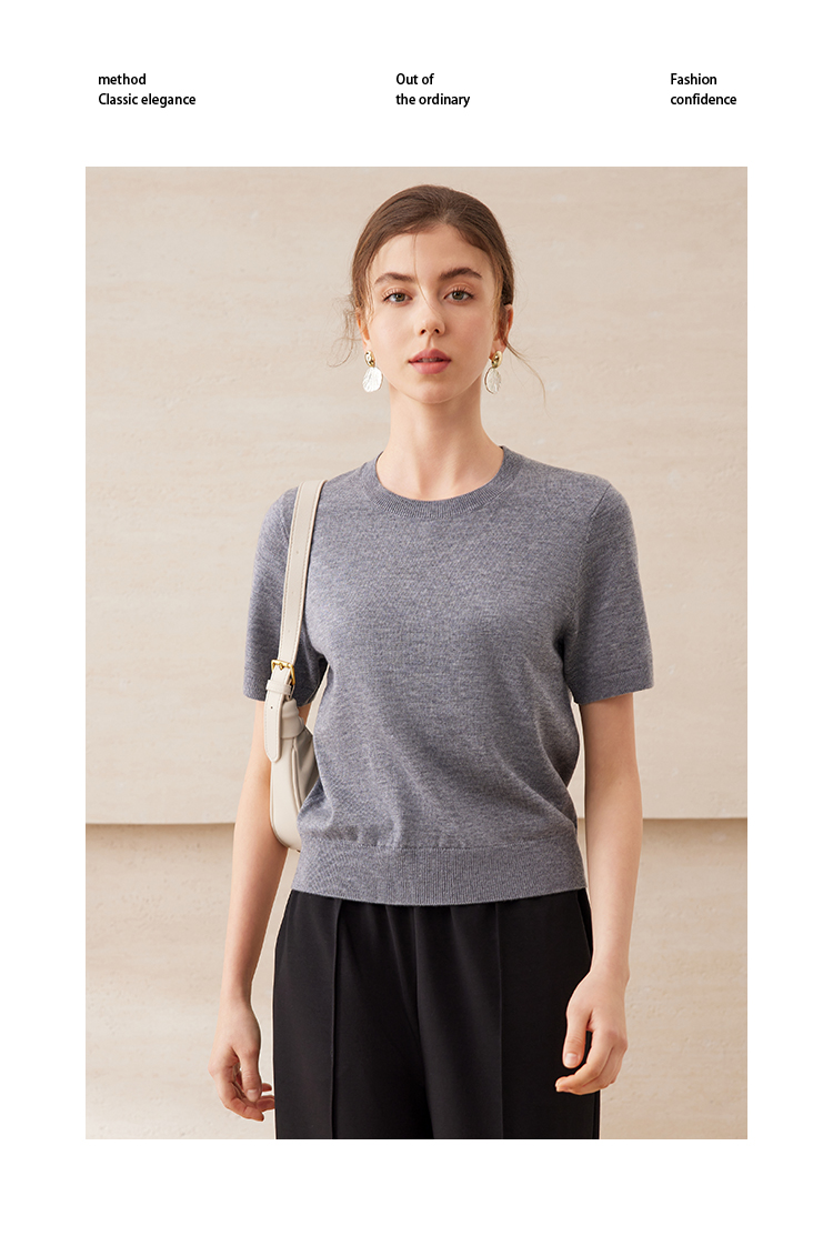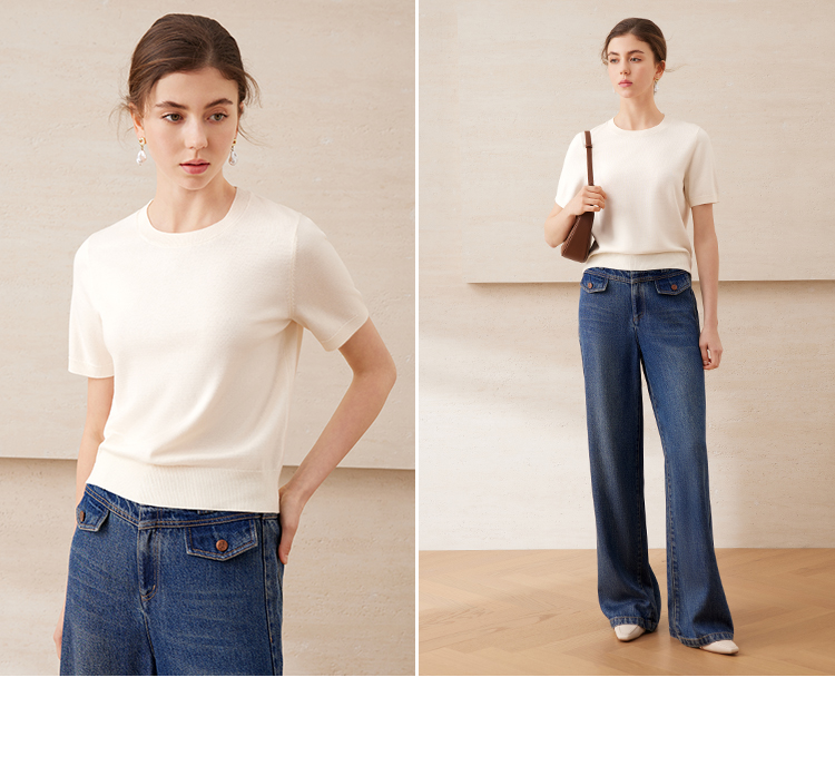 EITIE爱特爱舒适柔软百搭基础款短袖多色圆领针织衫2025春夏新款A2501507