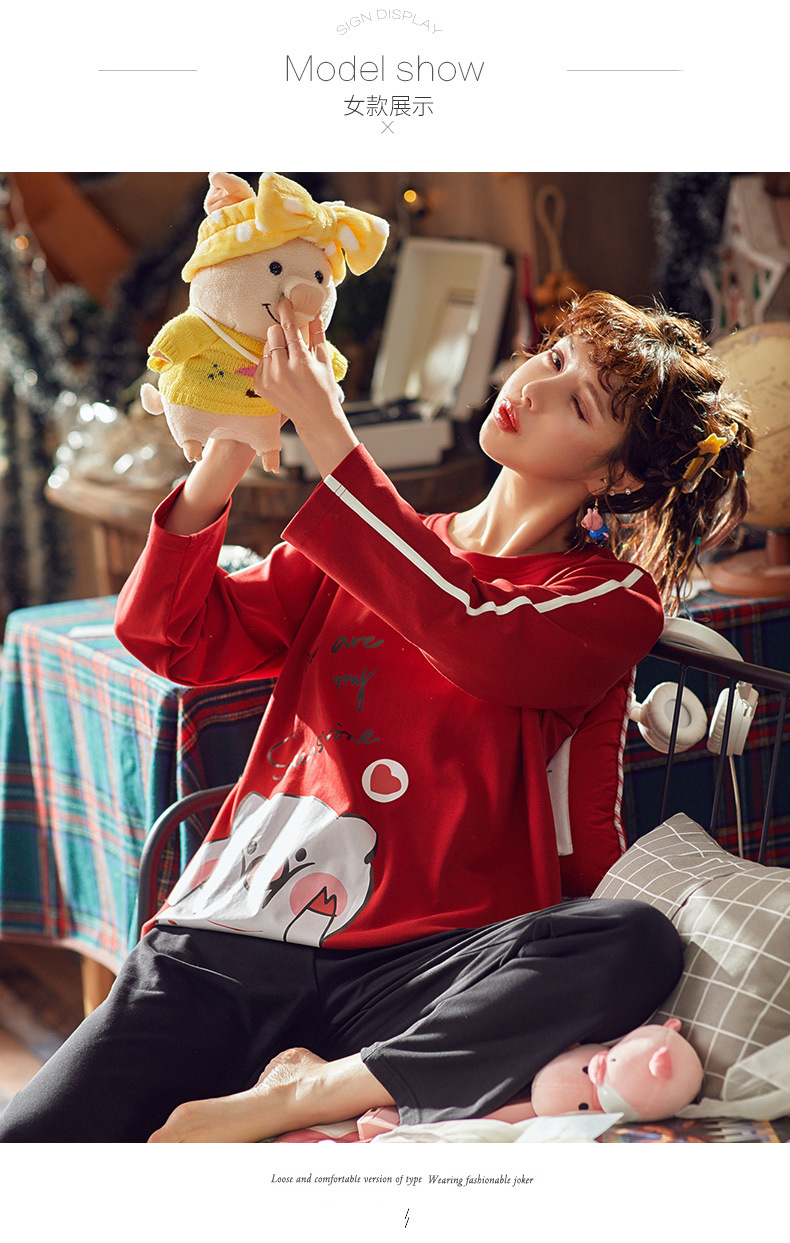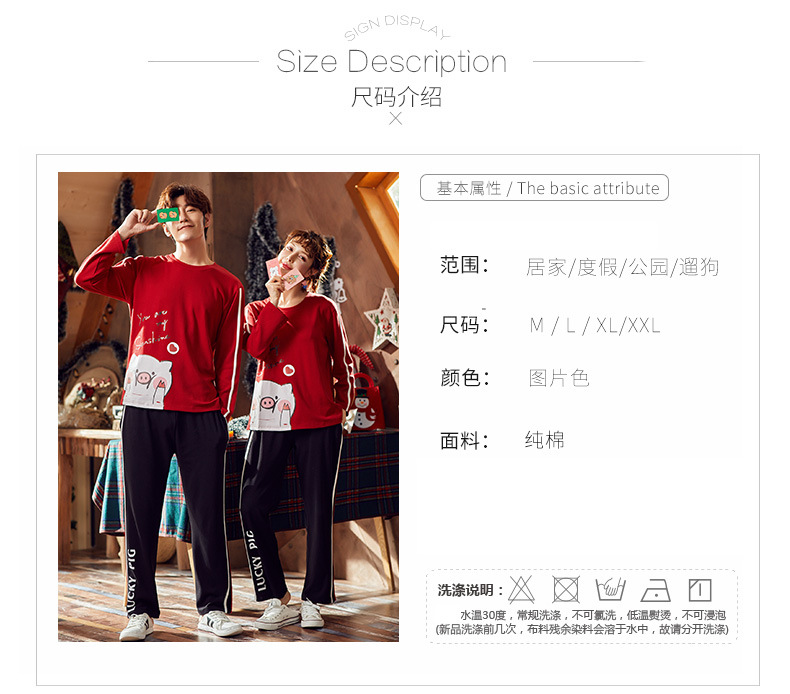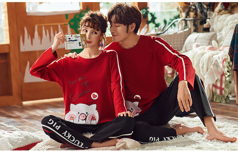 ZF-201919韩版情侣睡衣长袖纯棉春秋季全棉睡衣