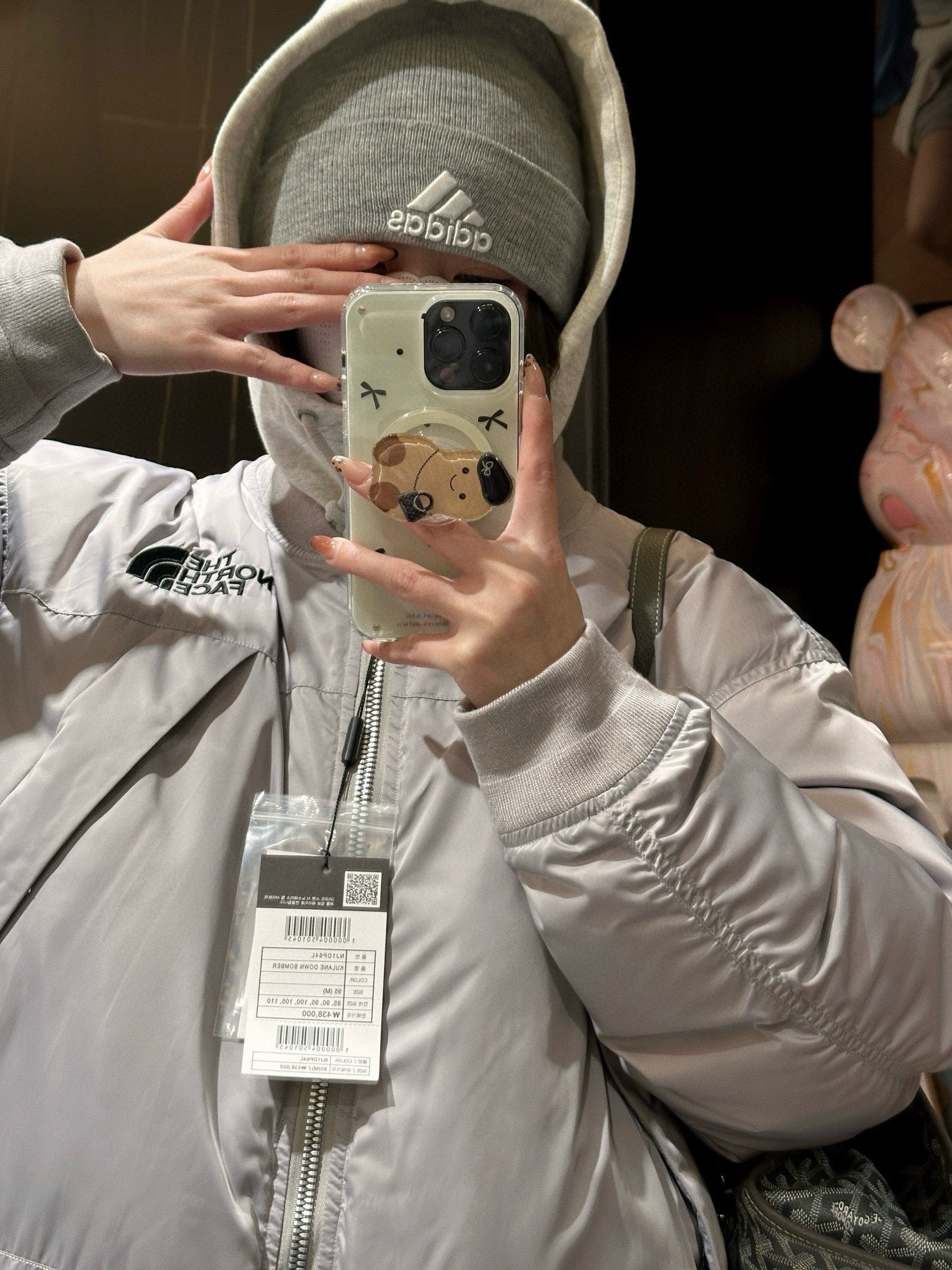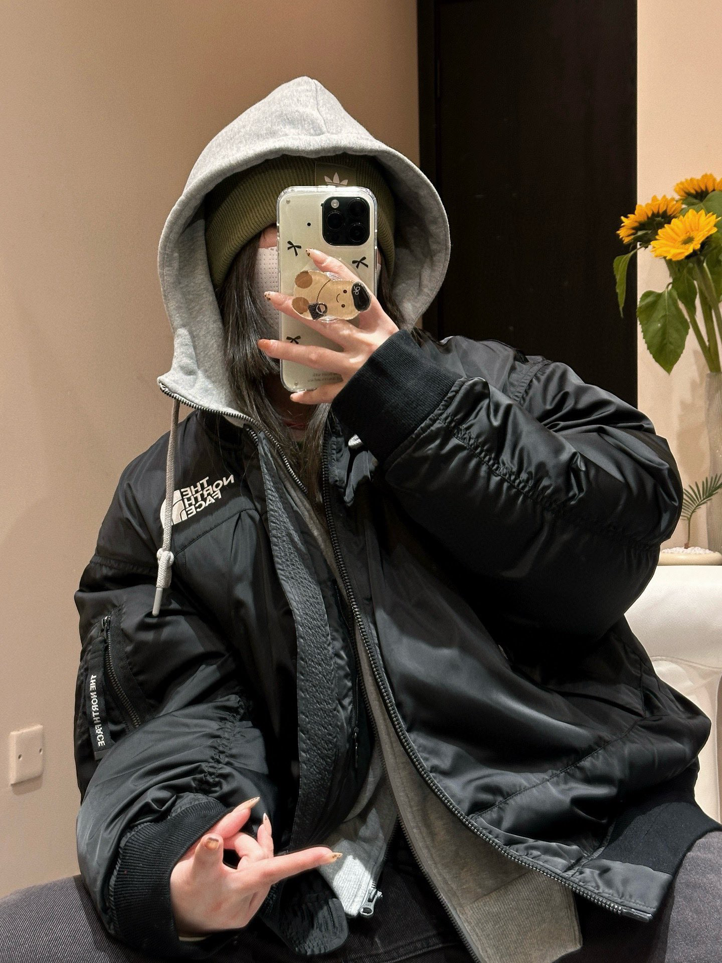 韩柜目前在售的假两件二合一可拆卸连帽工装羽绒夹克 太帅了 !