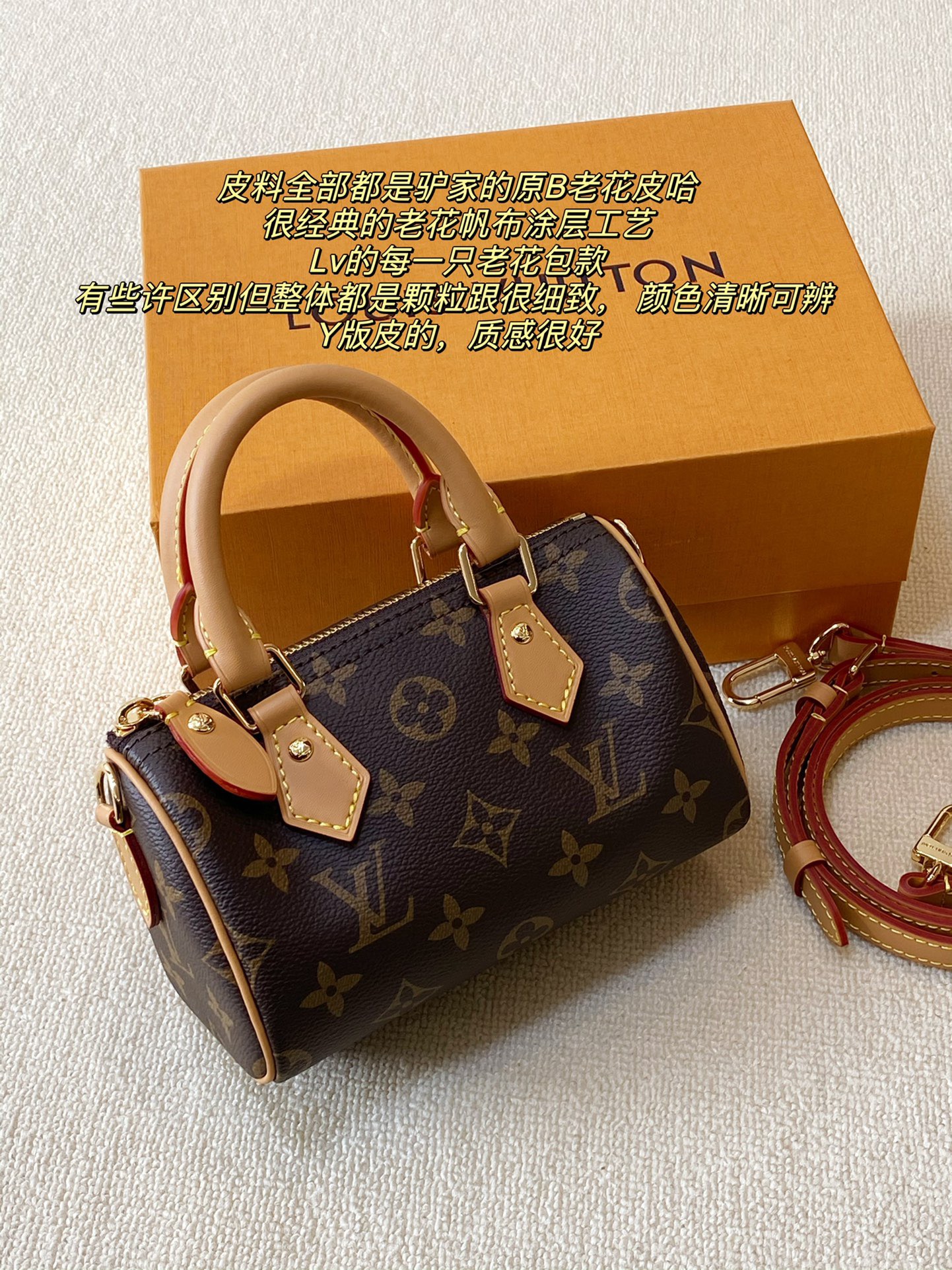 全部都是Y版皮,驴家经典的老花帆布涂层,耐磨,耐造,防水柔韧。