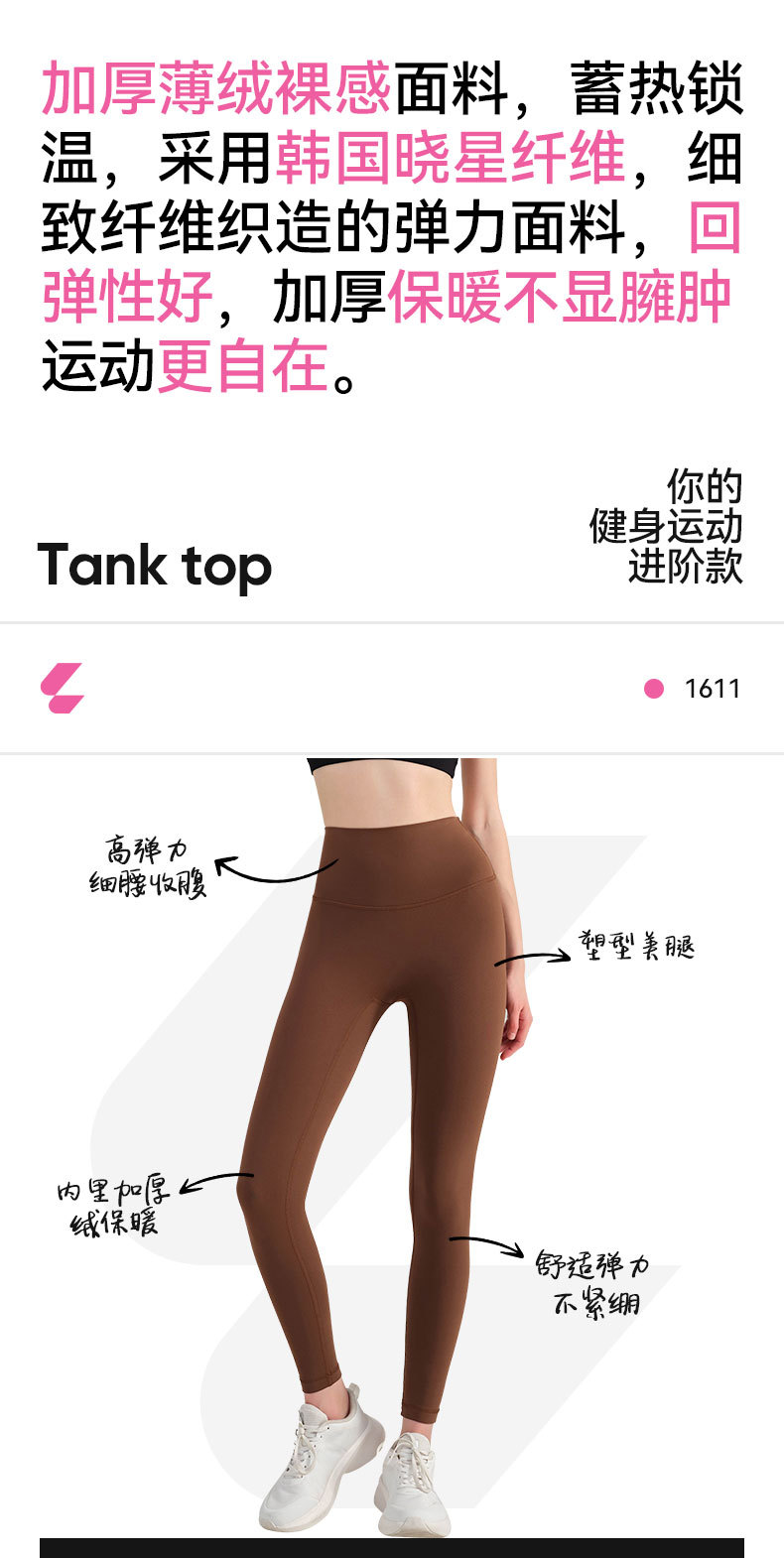 跃牌【轻匀系列】裸感秋冬高腰加厚薄绒户外运动紧身裤CK1611