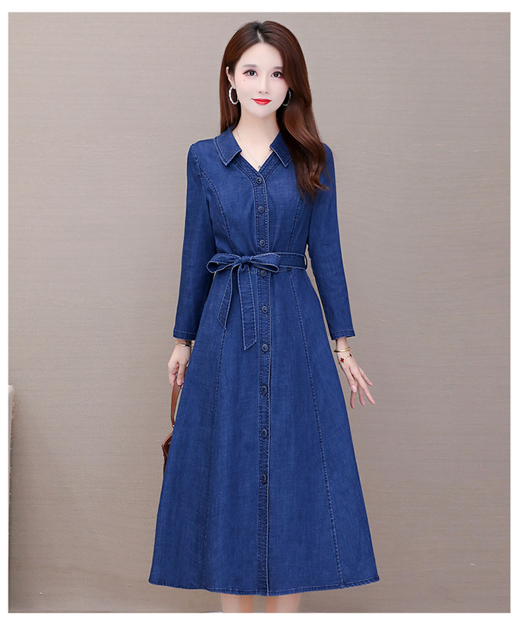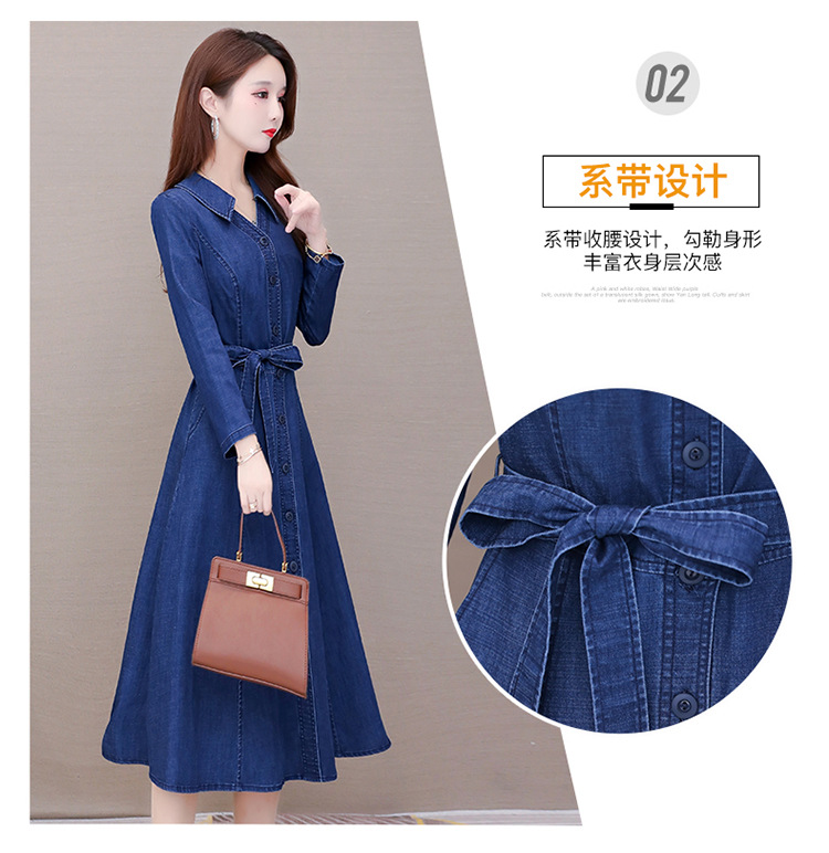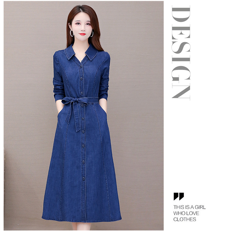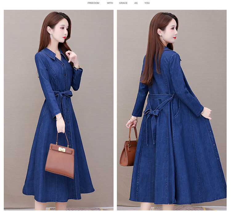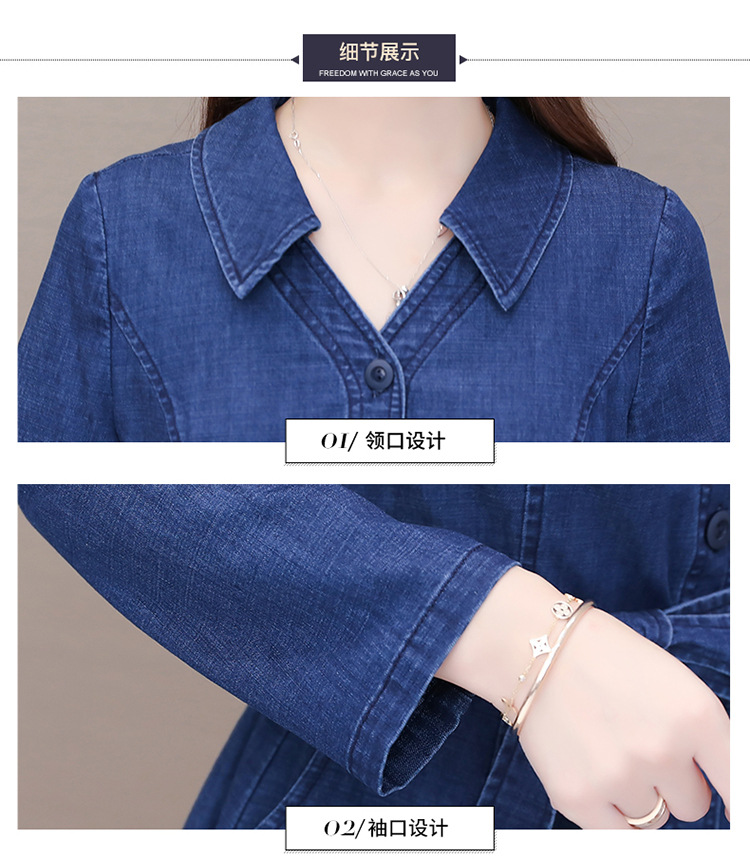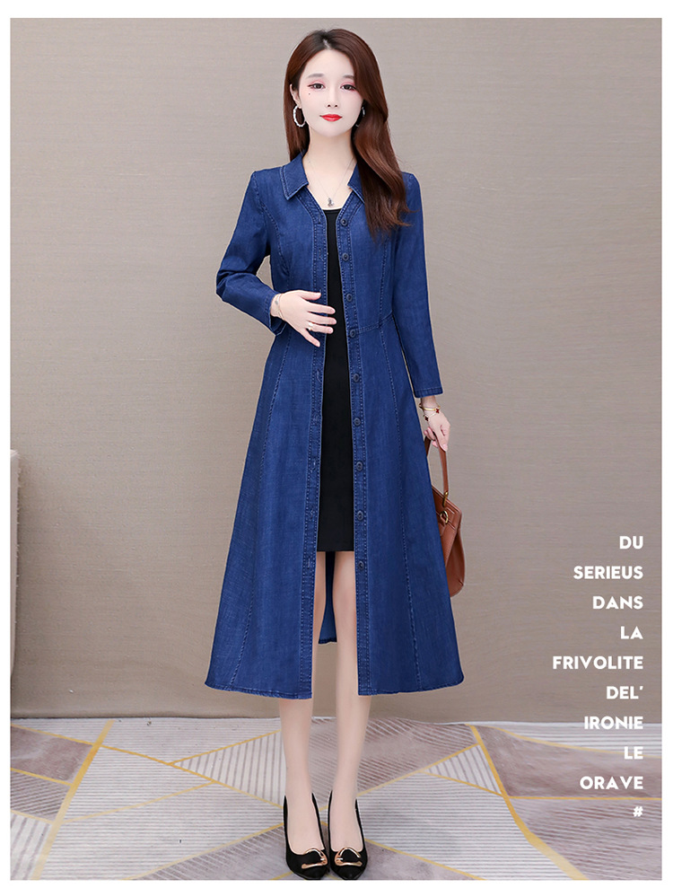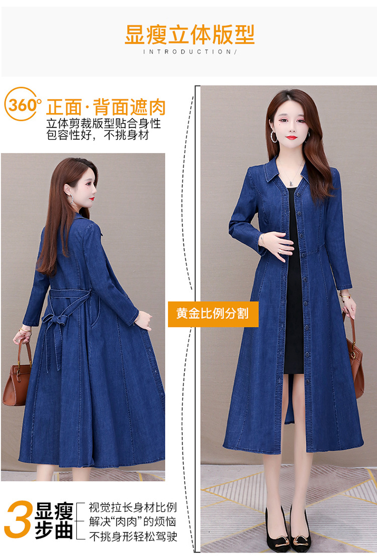 YWE-KED91332新款时尚气质修身翻领长袖中长款牛仔开衫式风衣裙