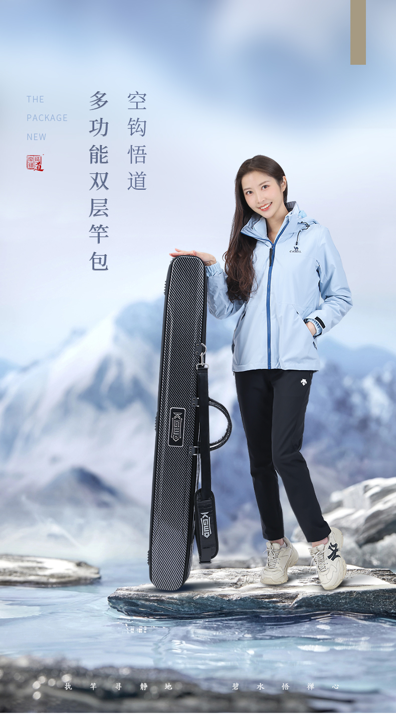 空钩悟道多功能双层竿包 大容量防水手提杆包轻便收纳硬壳渔具包