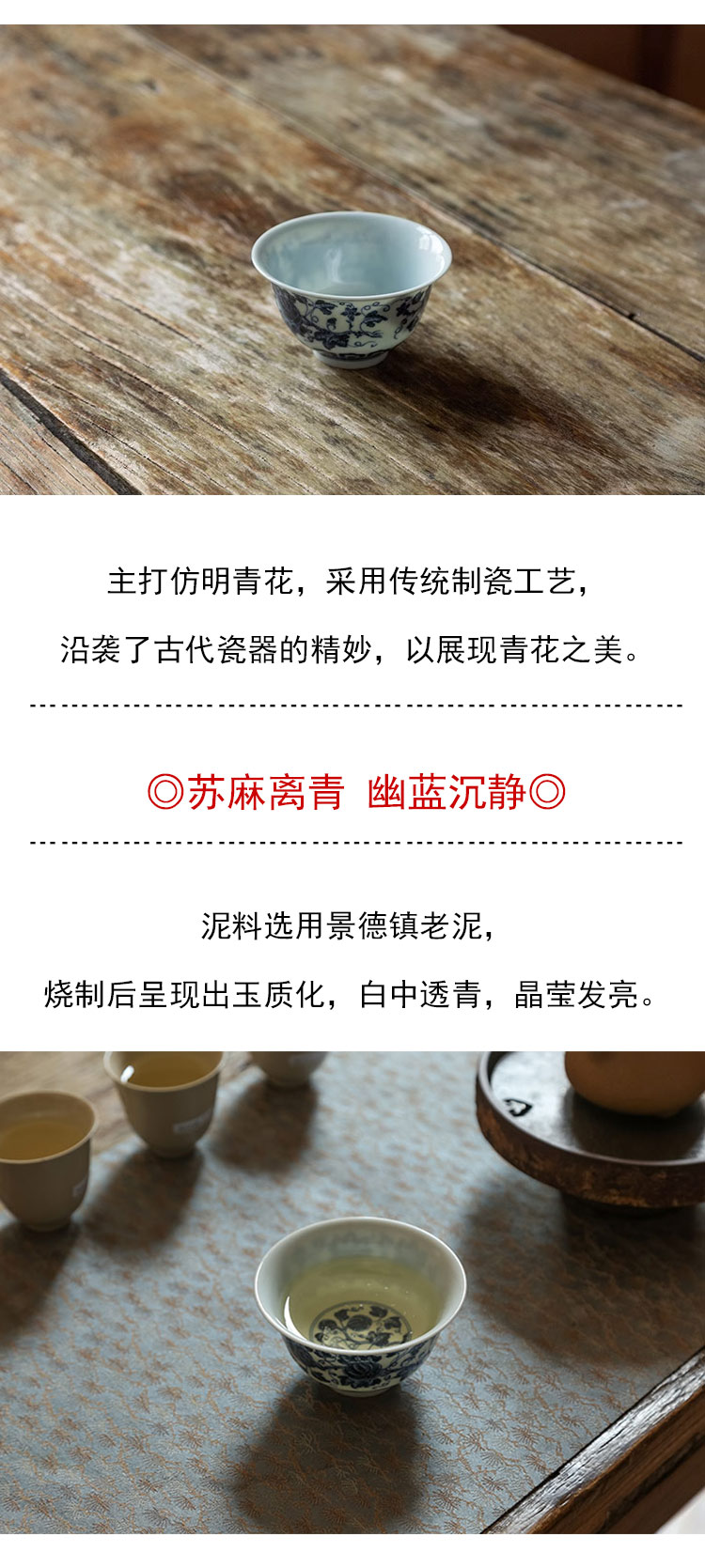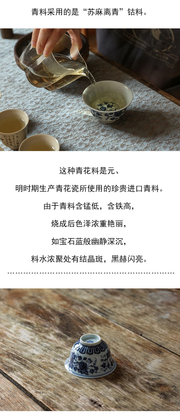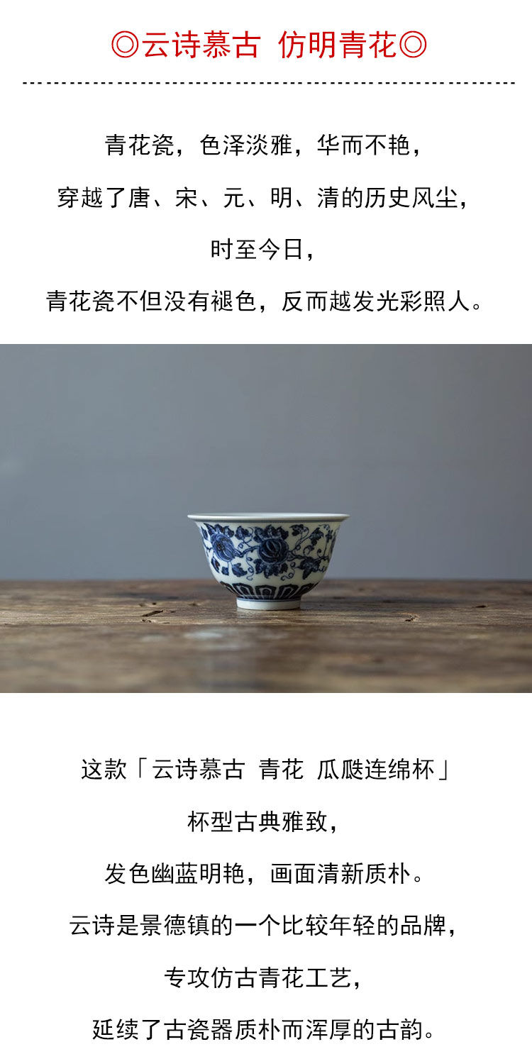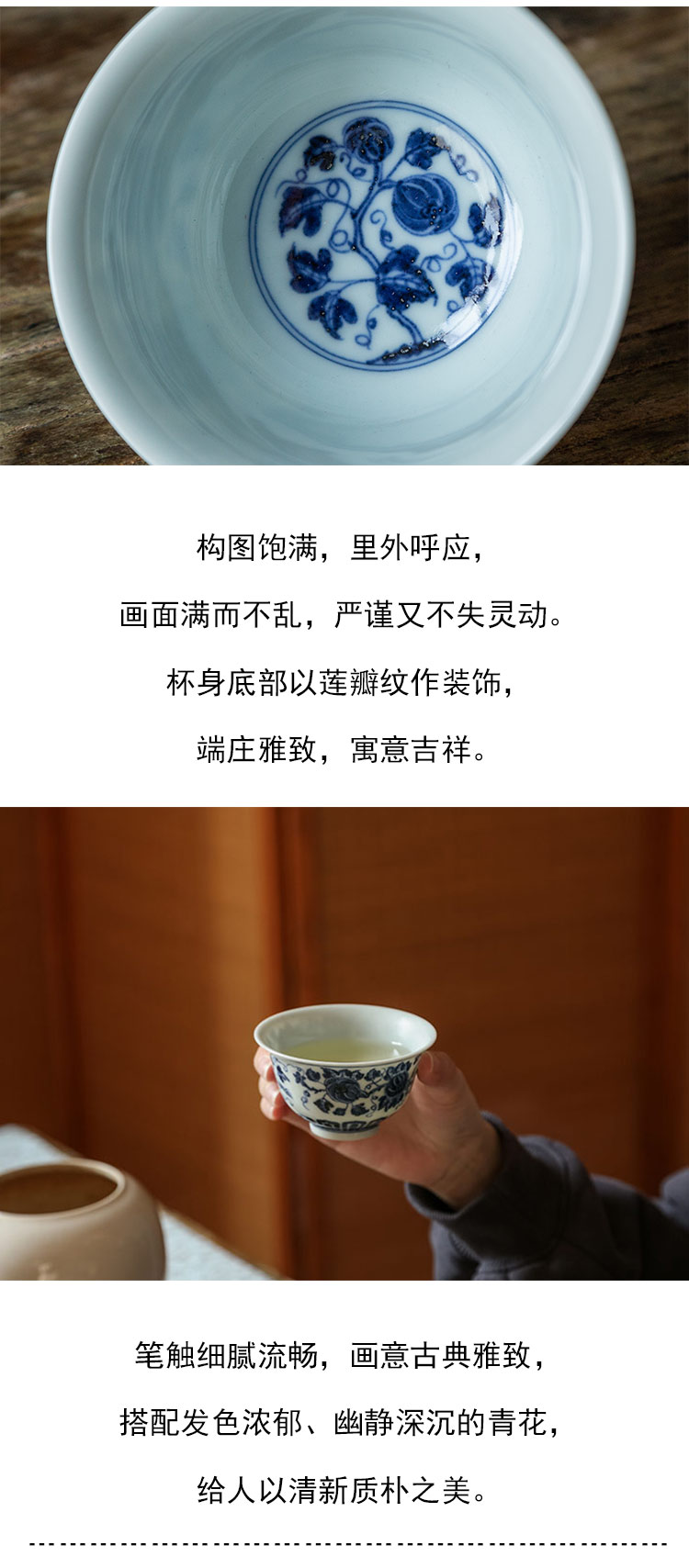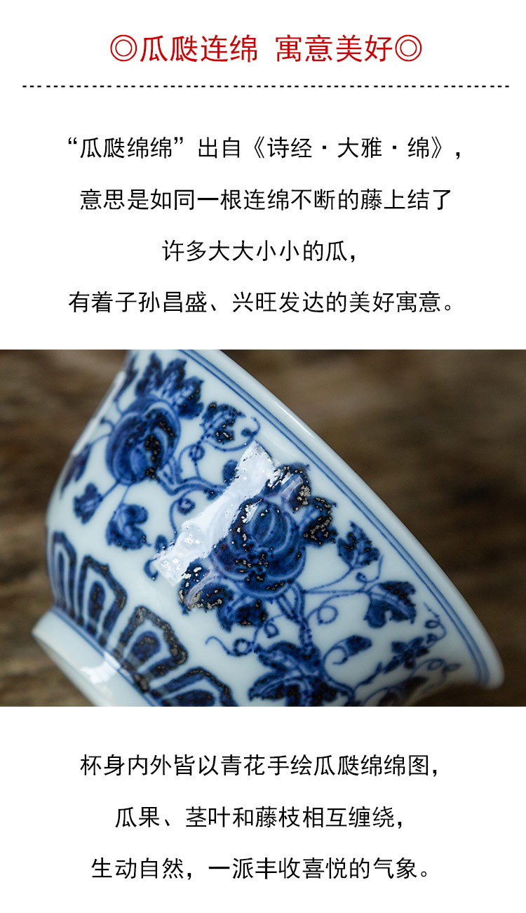 茶香记 景德镇云诗慕古青花瓜瓞连绵杯100ml茶杯陶瓷手绘主人杯