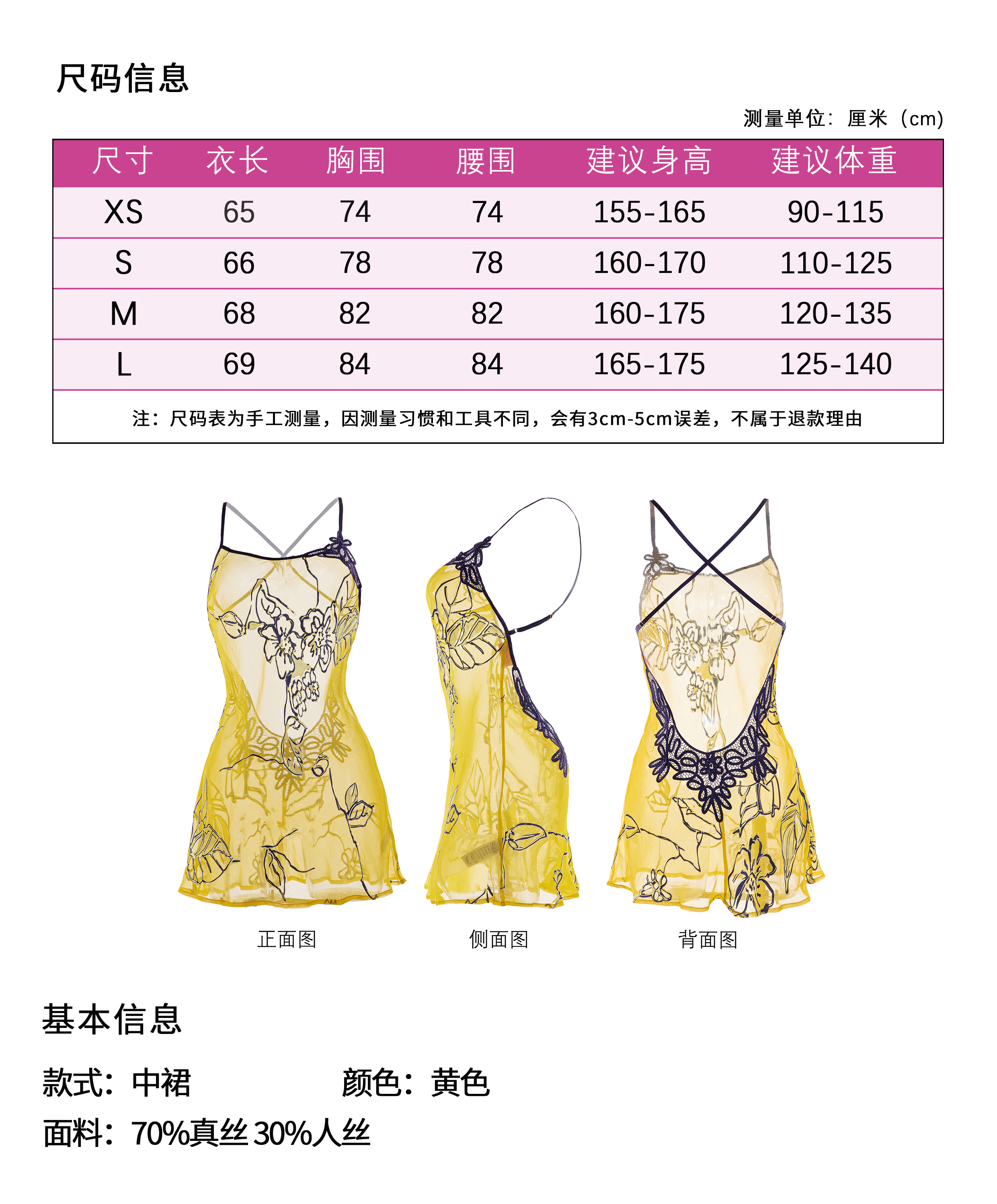 性感前开叉蕾丝胸杯真丝中裙 A250303