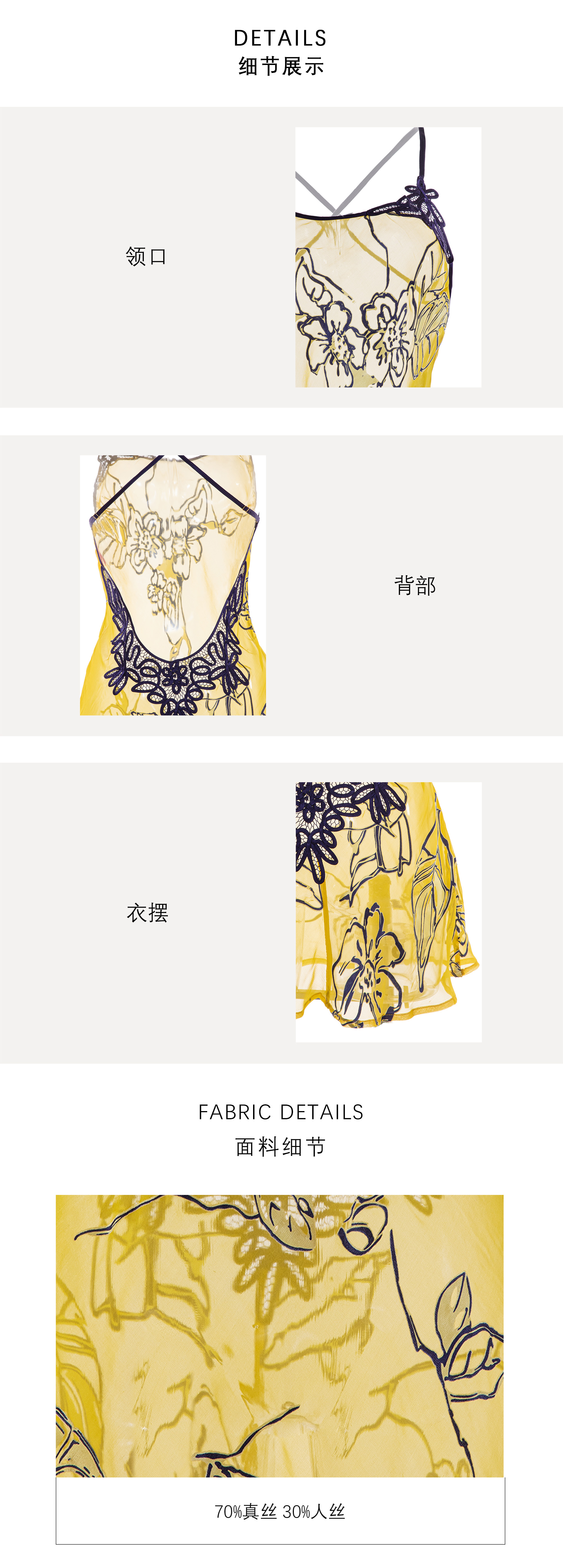 烂花绡轻盈微透露背中款真丝睡裙 DD241