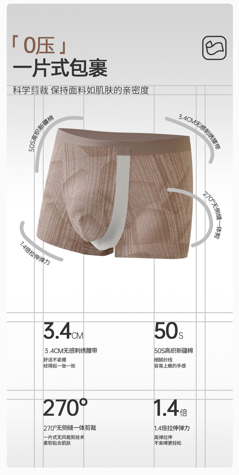 XY-1572 【1条】50支新疆长绒棉男士内裤纯棉10A级抑菌透气中腰无痕四角平角内裤