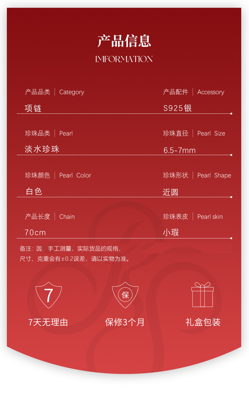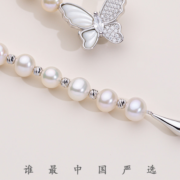 蝶恋花系列S925银 淡水珍珠项链 6.5-7mm