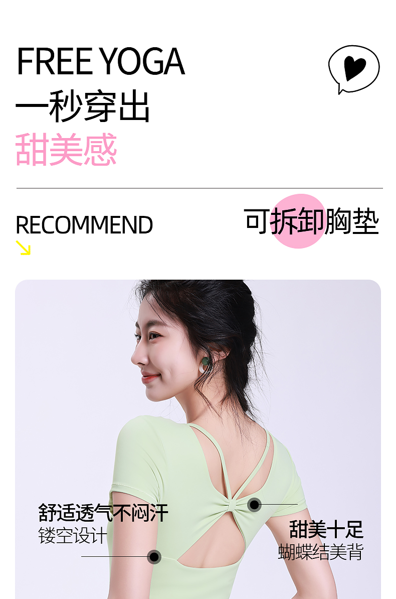 梵美人 F1255 瑜伽短袖 云糯柔感 可拆卸胸垫