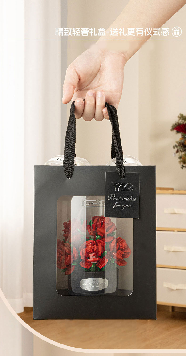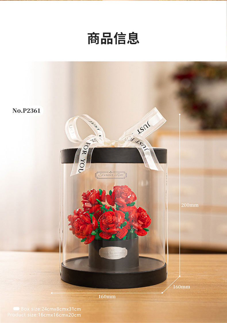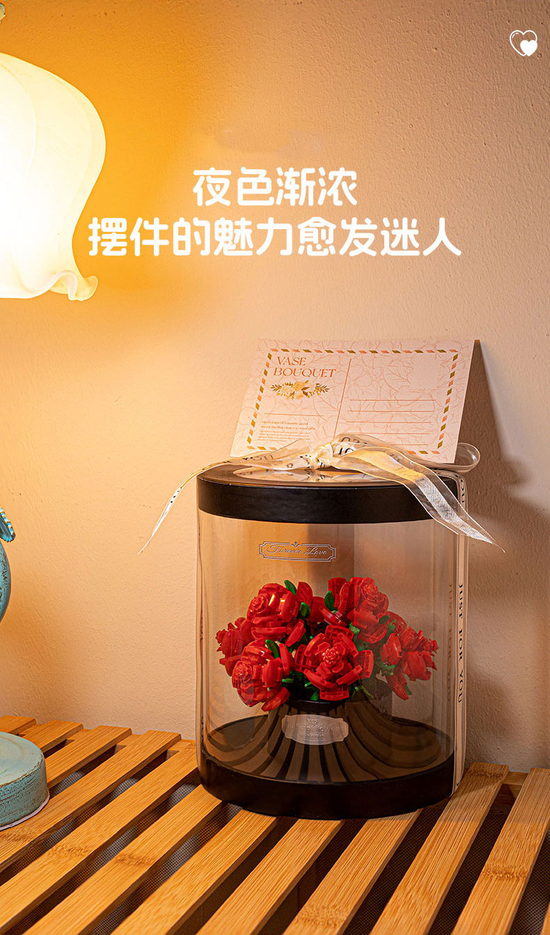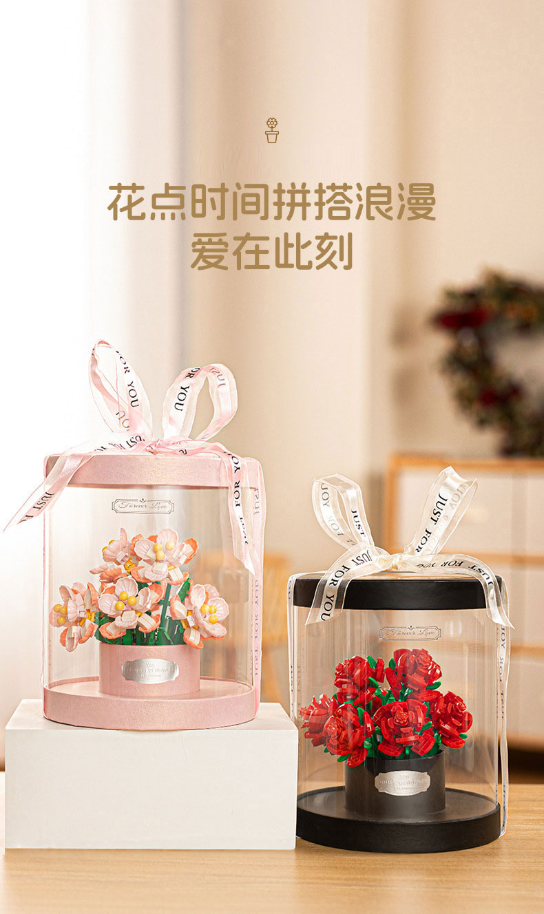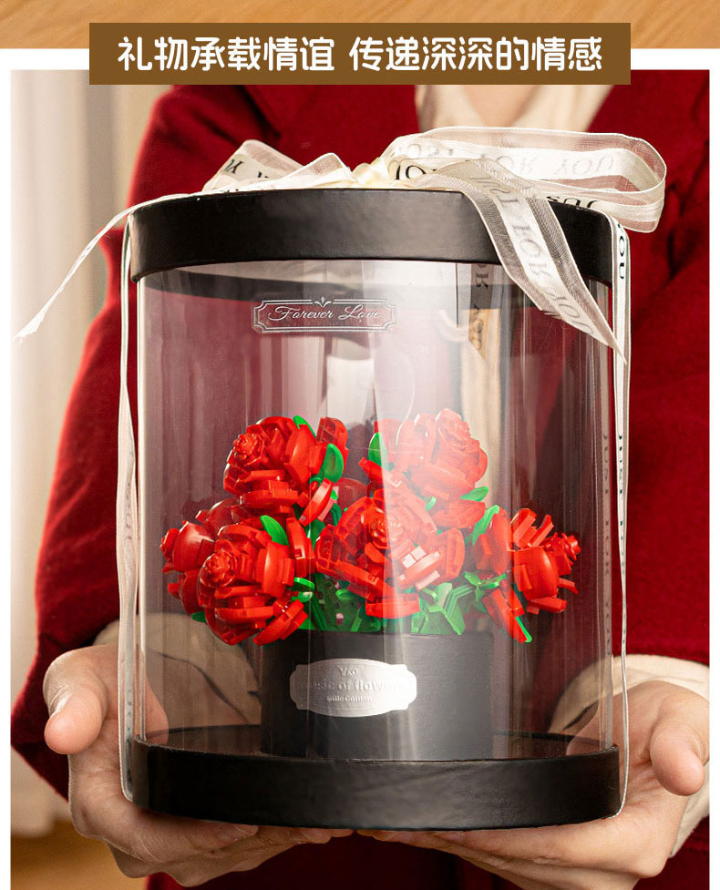 玫瑰积木花束抱抱桶积木 植物花卉摆件成人小颗粒拼装玩具女孩