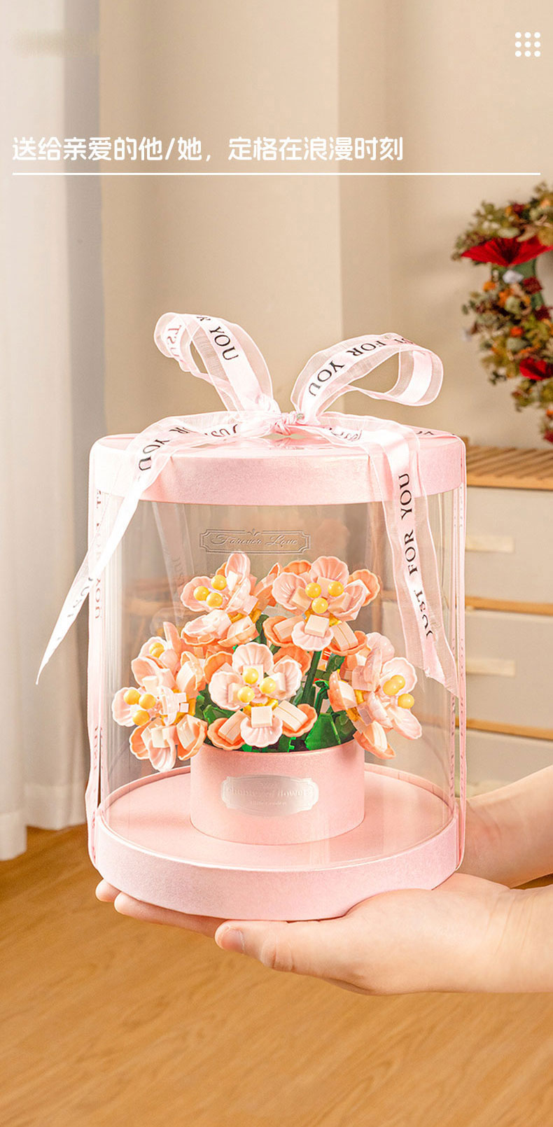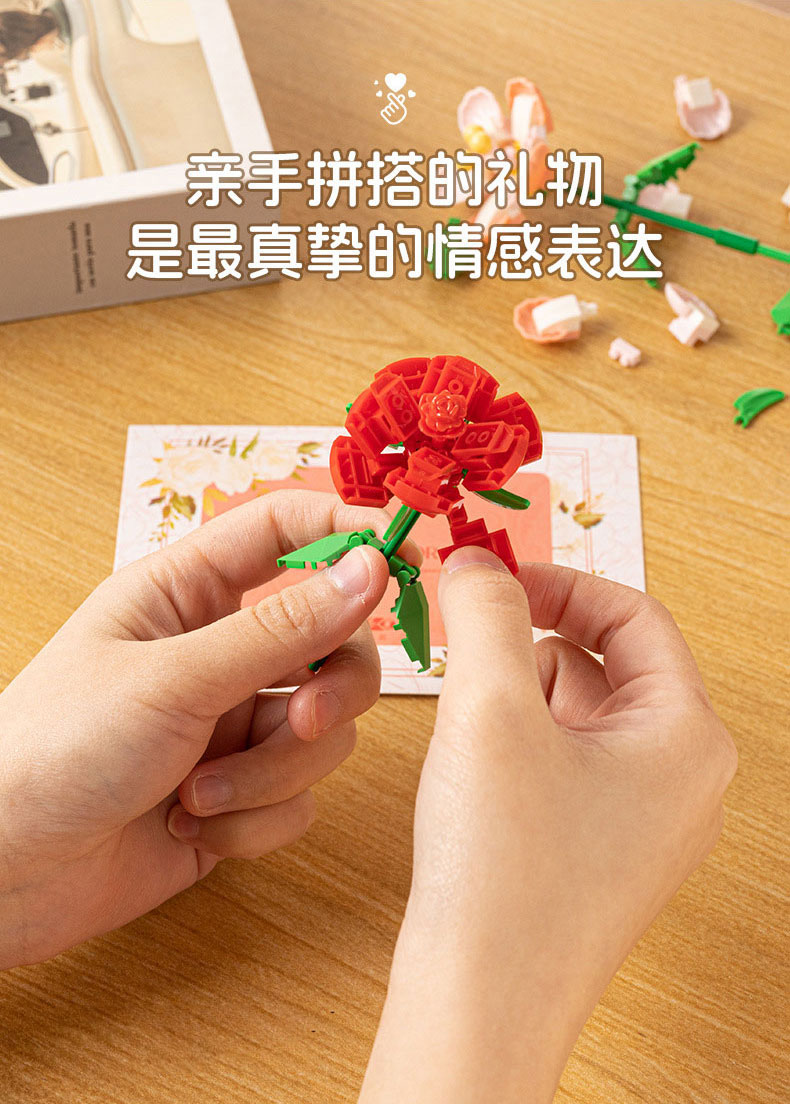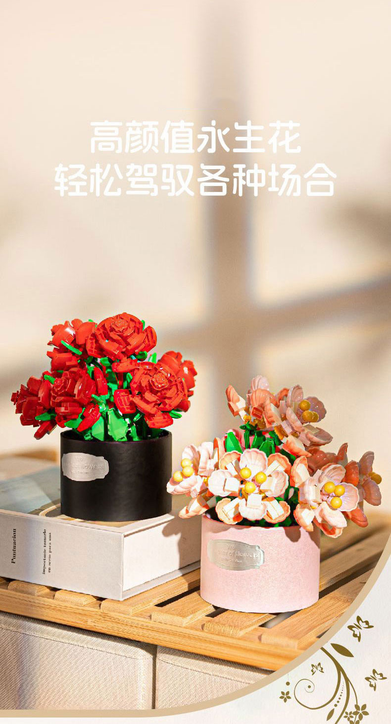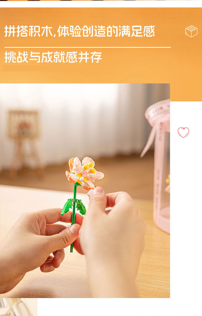 玫瑰积木花束抱抱桶积木 植物花卉摆件成人小颗粒拼装玩具女孩