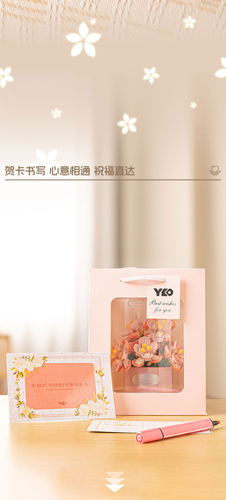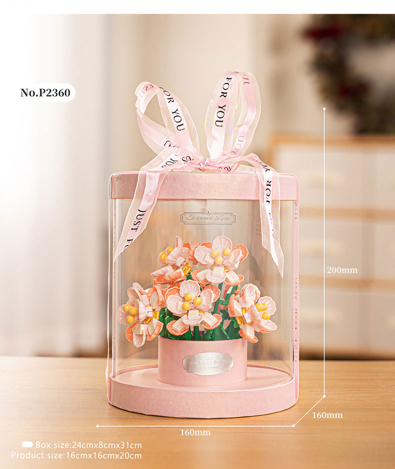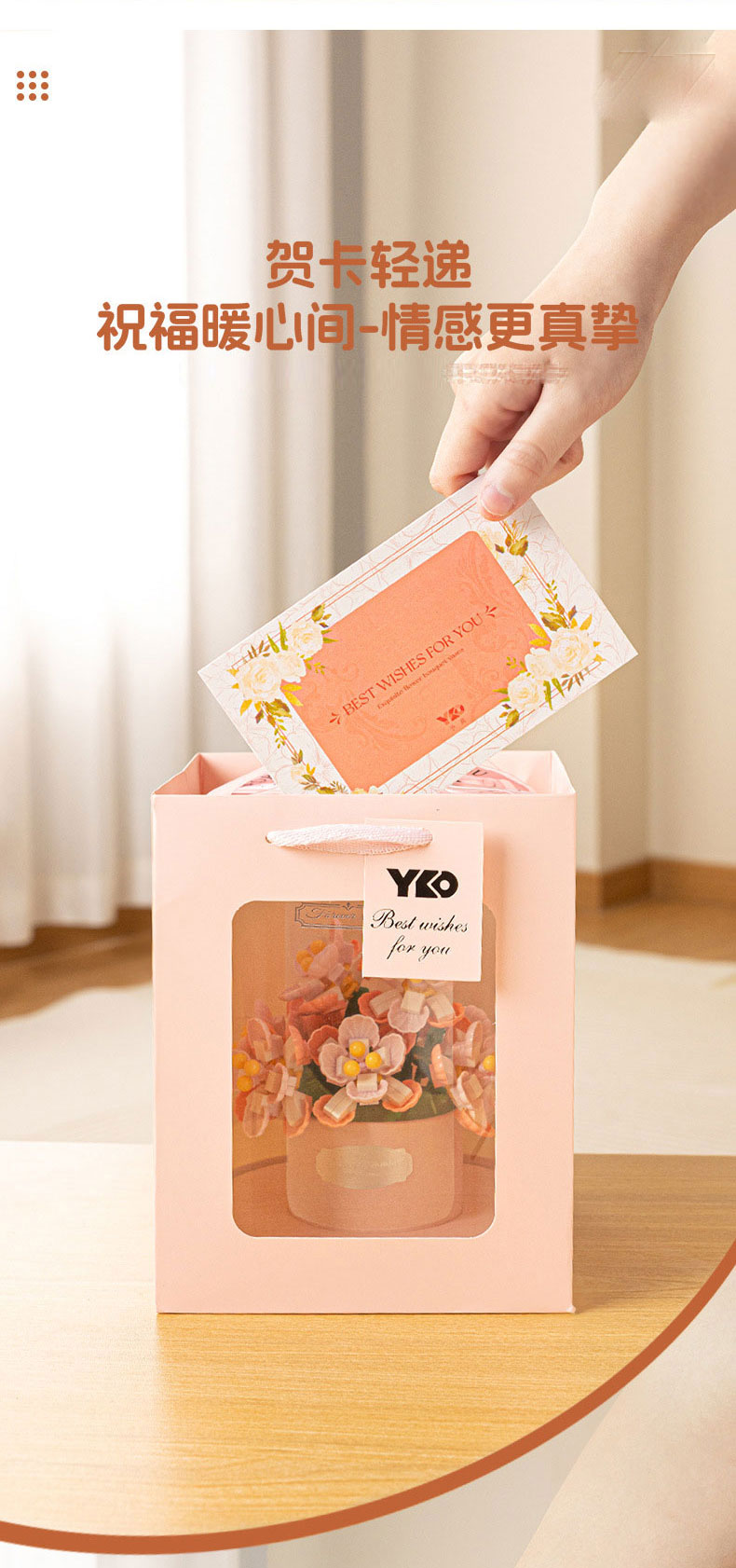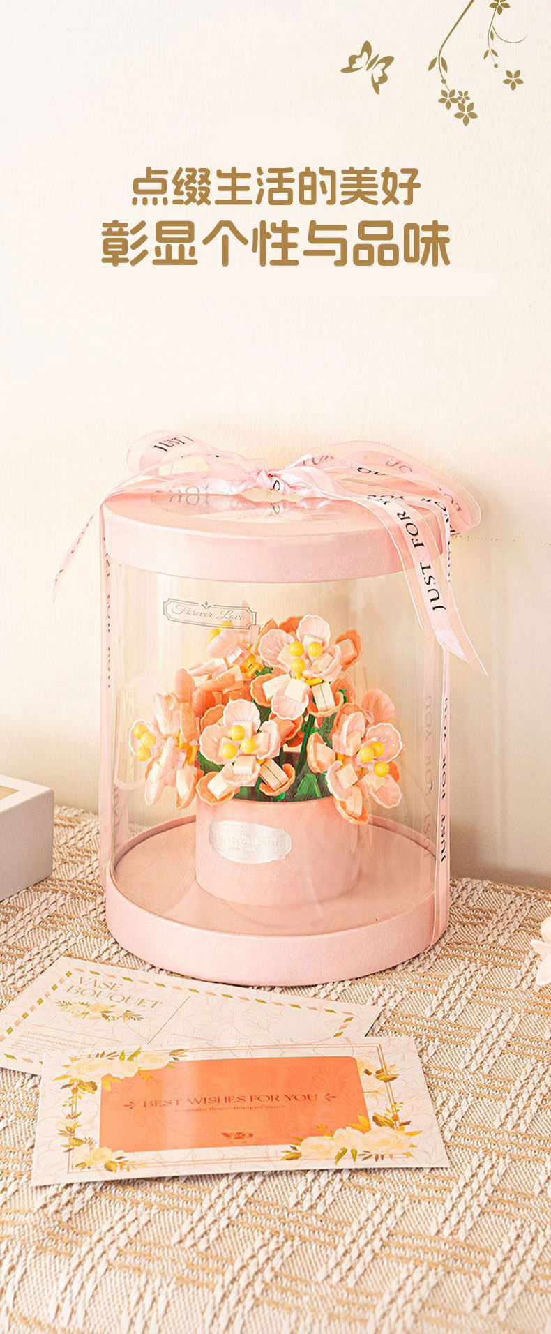玫瑰积木花束抱抱桶积木 植物花卉摆件成人小颗粒拼装玩具女孩