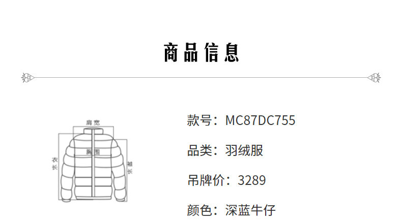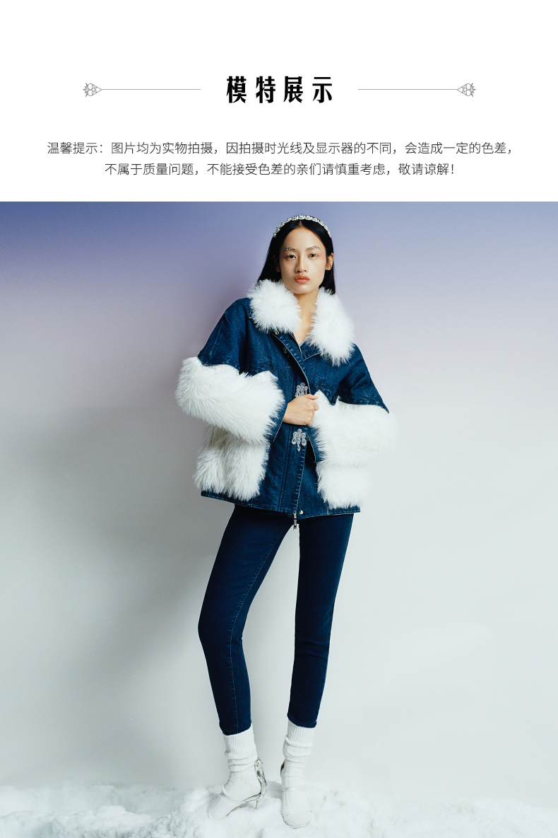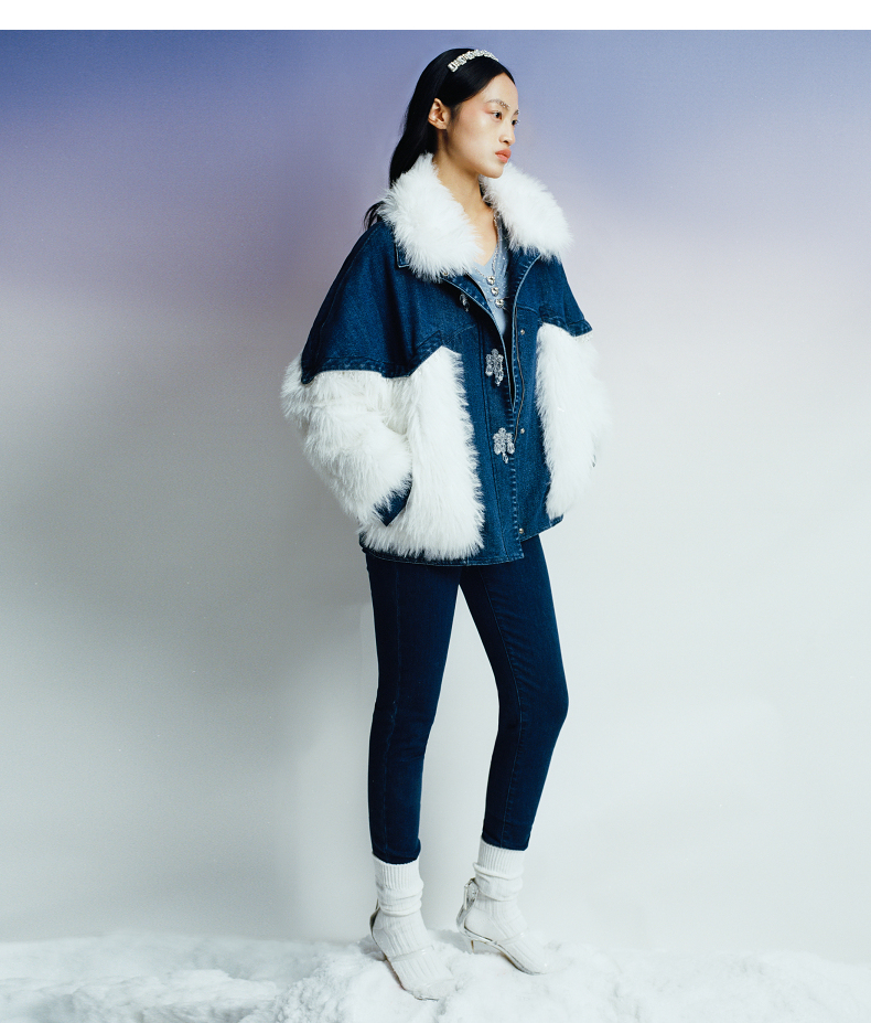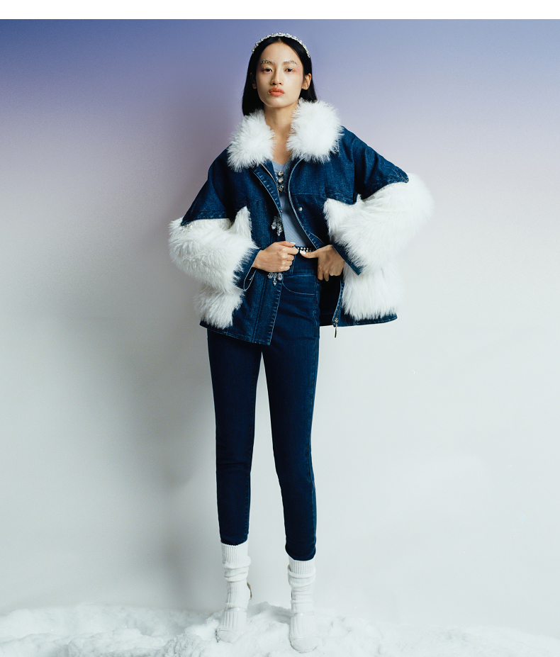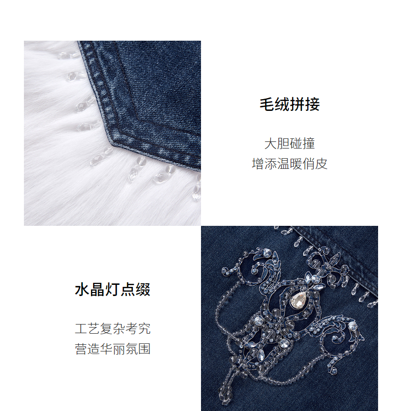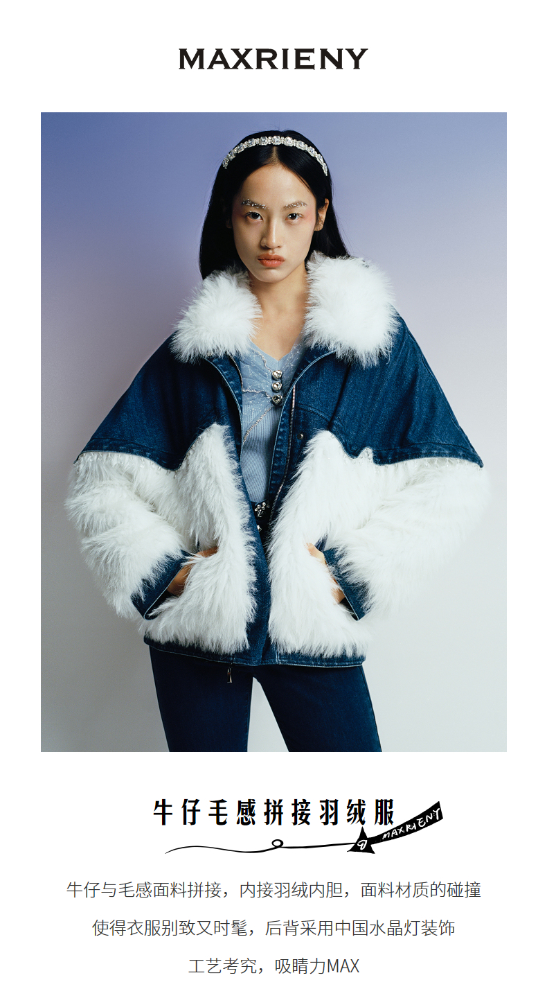 MAXRIENY牛仔毛感拼接加厚羽绒服冬季外套(货号:MC87DC755)