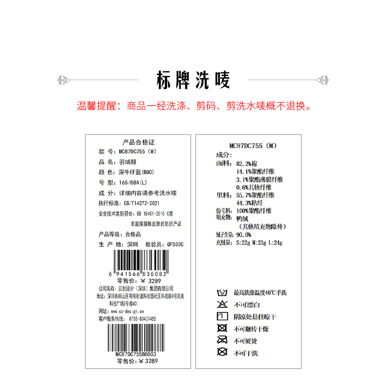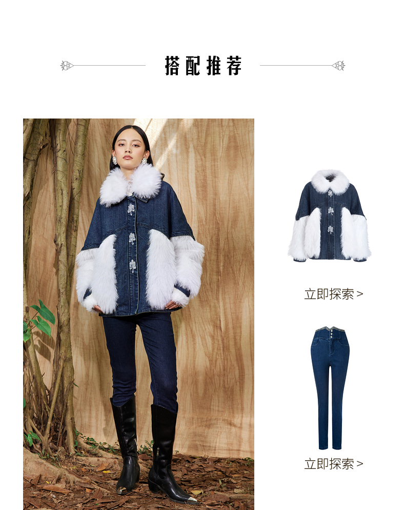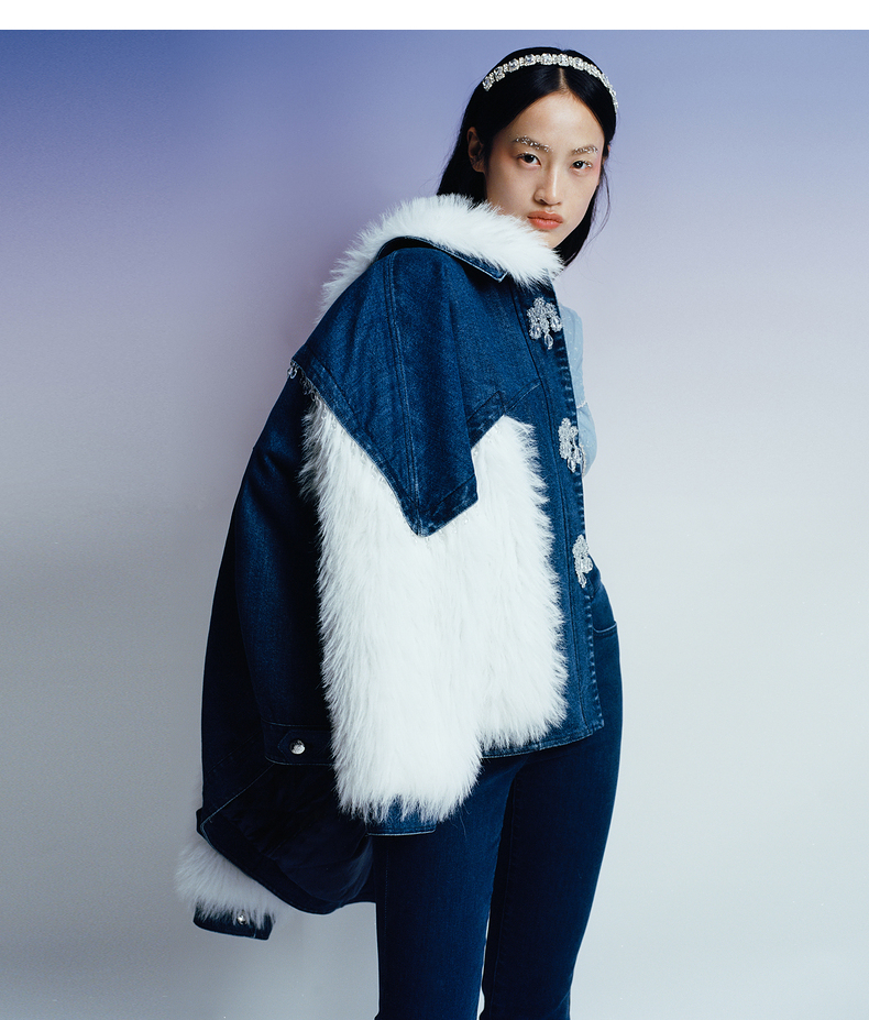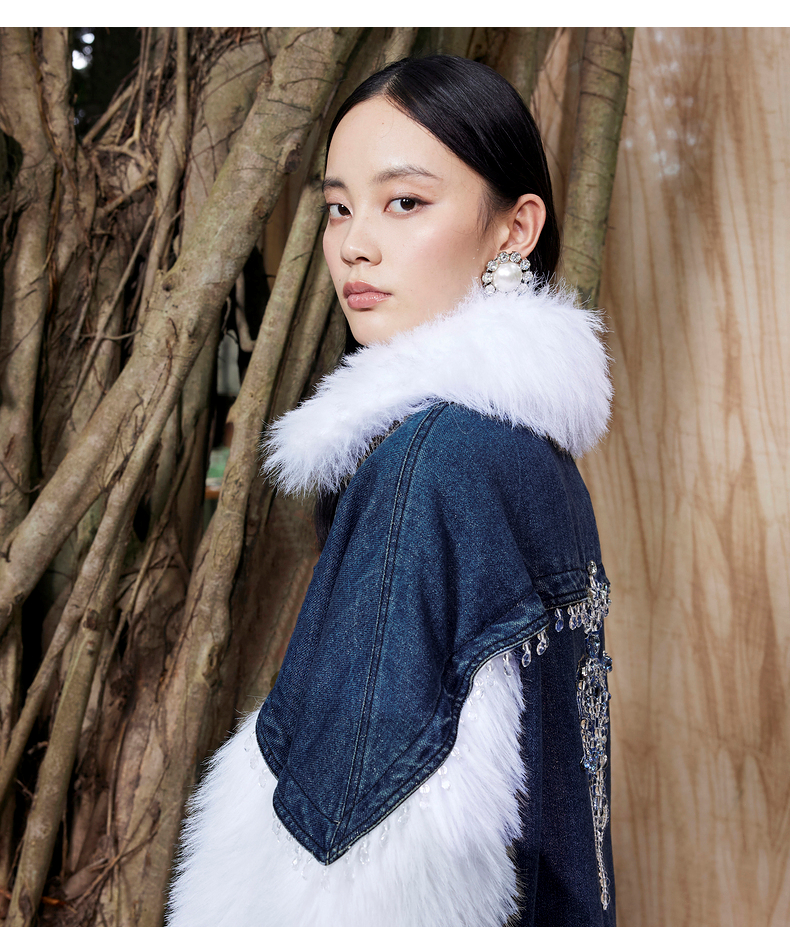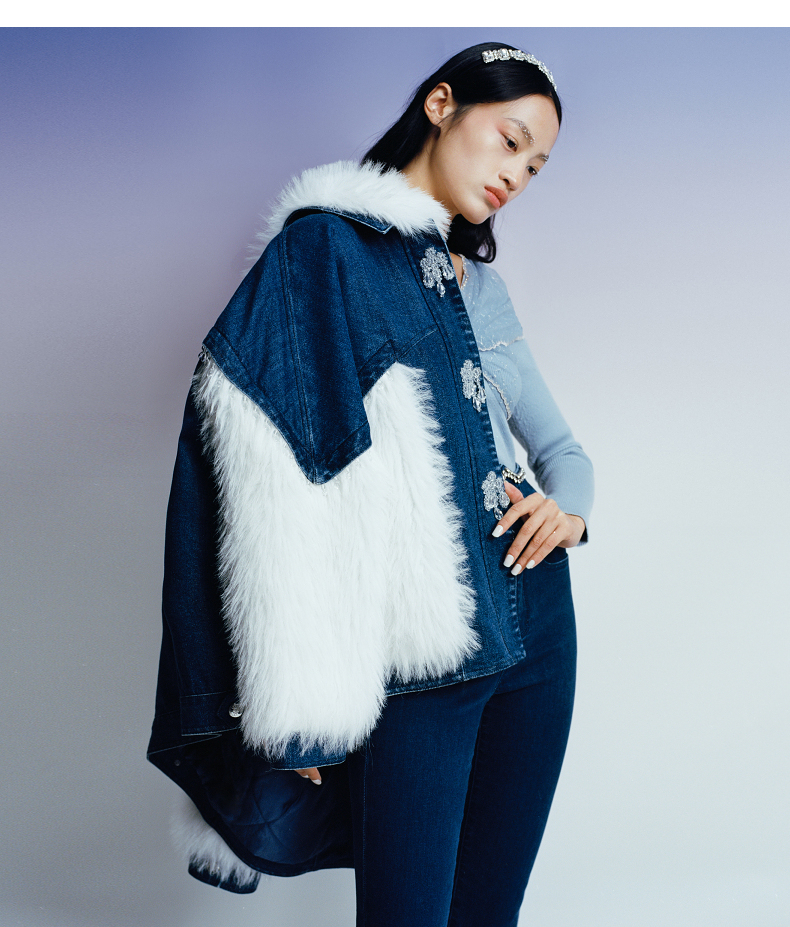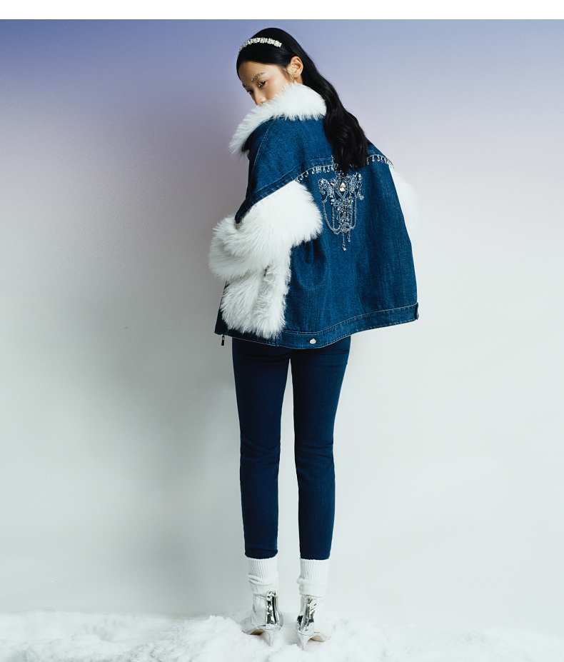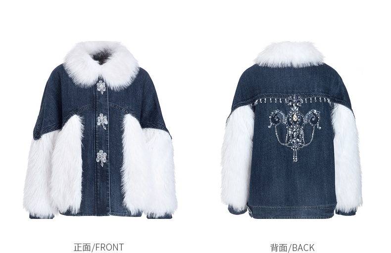 MAXRIENY牛仔毛感拼接加厚羽绒服冬季外套(货号:MC87DC755)